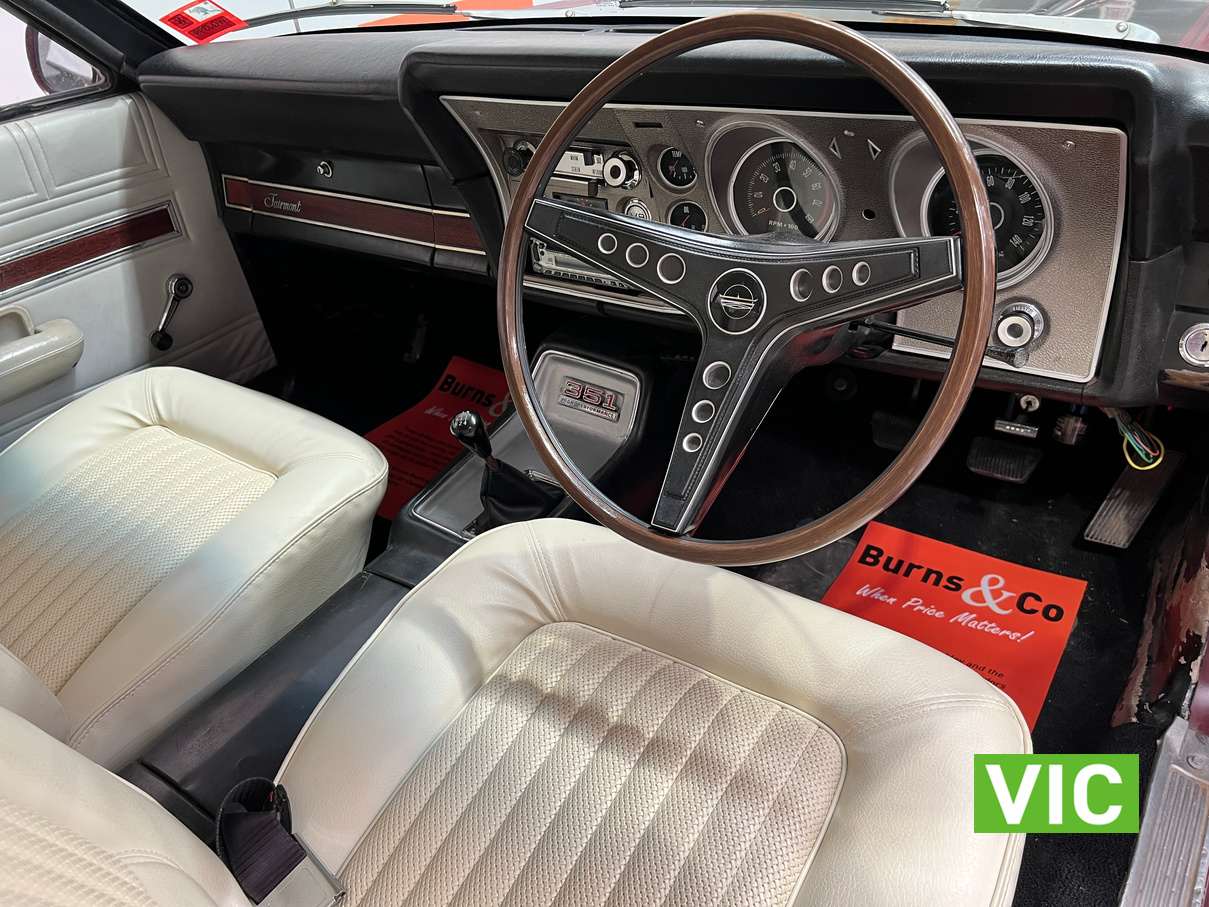Great starting point for a great car right here, 351 V8 coupled to a 4 speed manual gearbox. Finished in a desirable maroon with the classic gold GT stripes.