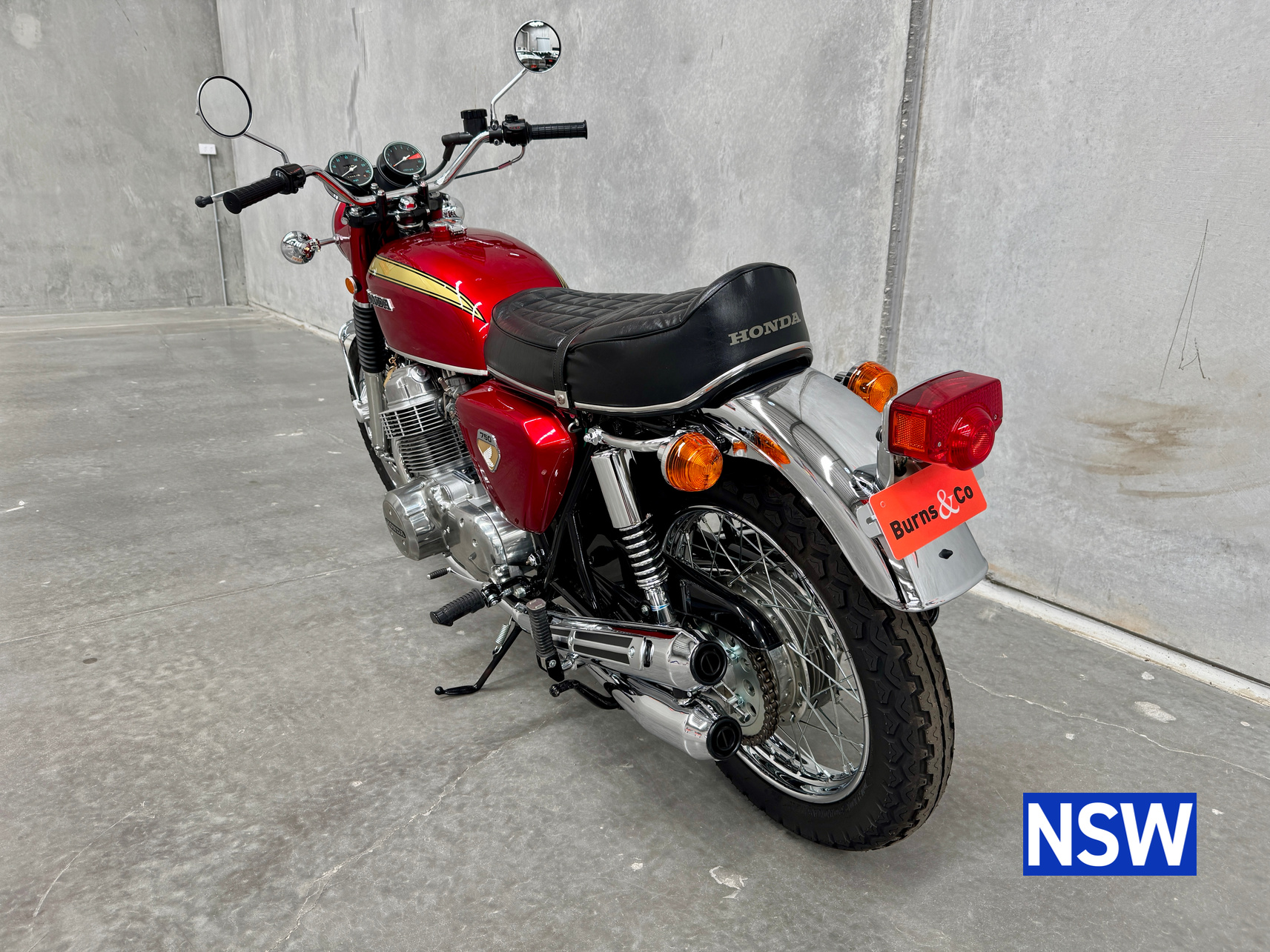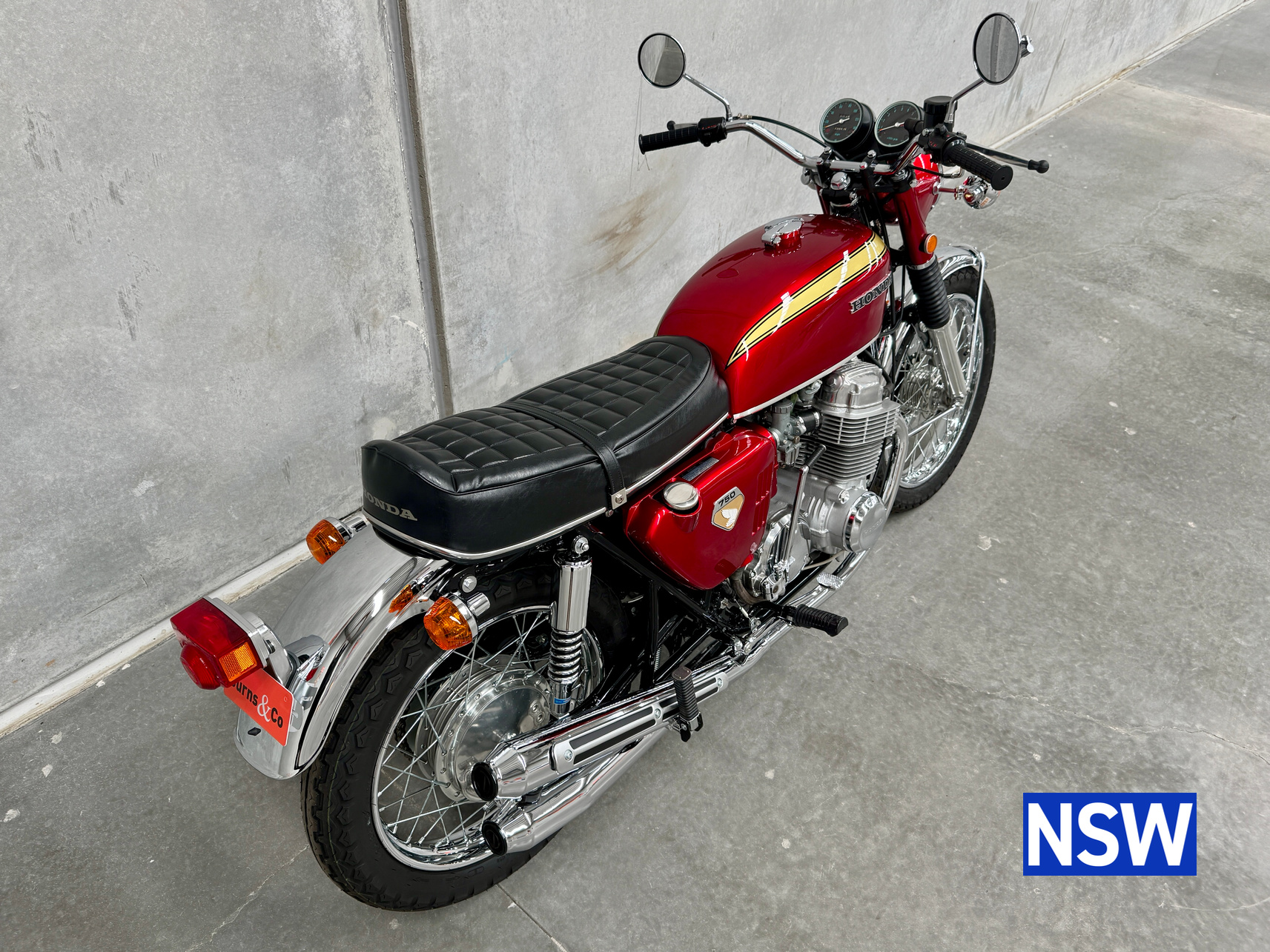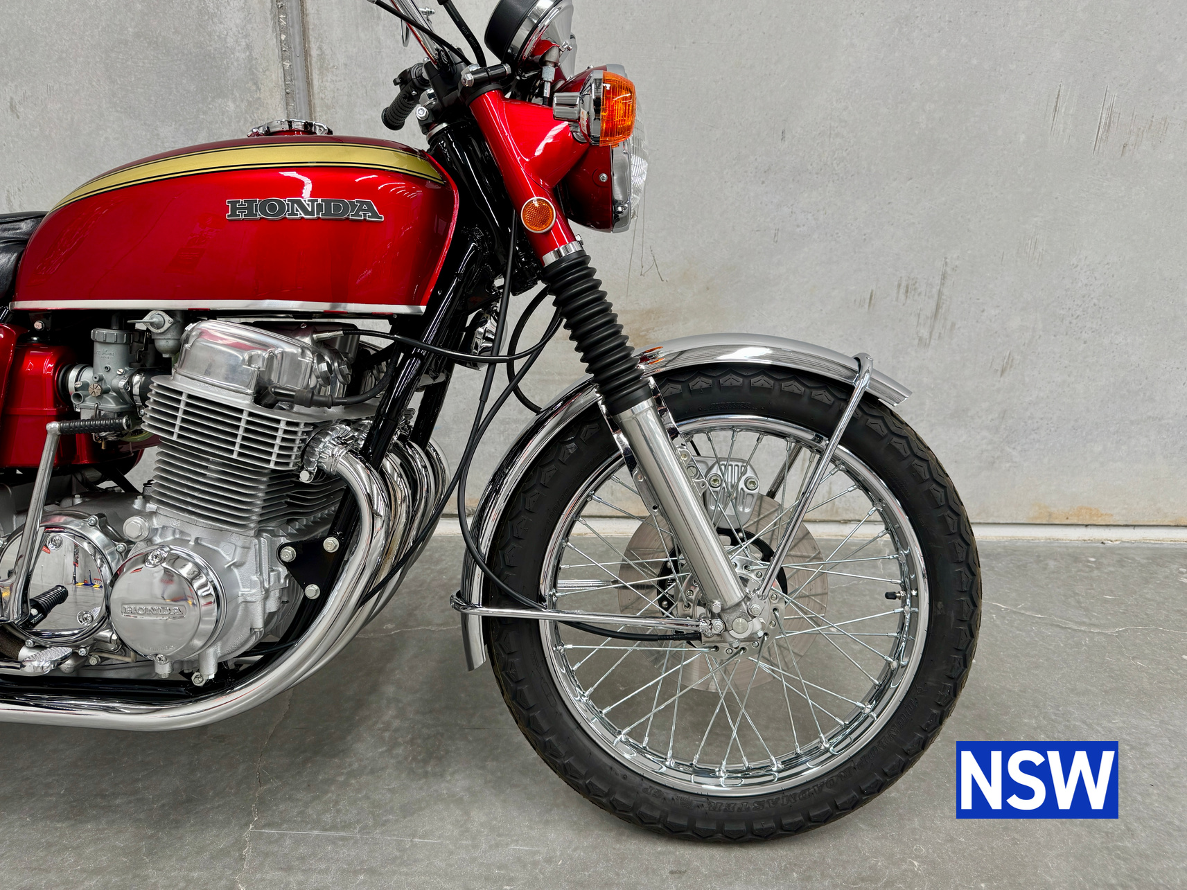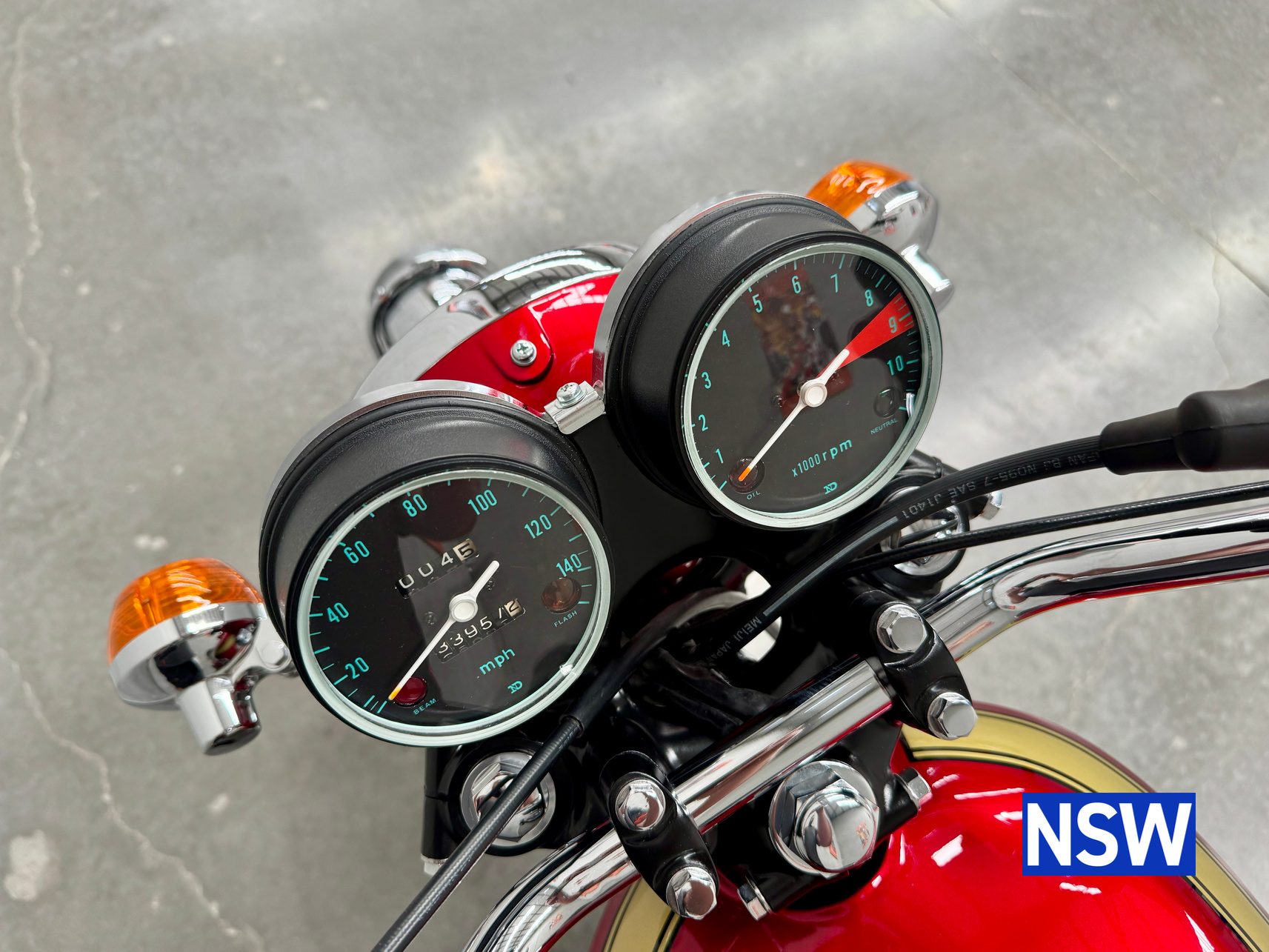 A legendary, hand built, early-production superbike, with the first featuring engine cases produced via gravity sand-casting, giving them a distinct, rougher texture. This example is a matching numbers bike and has undergone a full Nut-and-bolt restoration, completed with a strong emphasis on correctness, authenticity, and early-production detail. Matching numbers – original engine, Correct Sandcast gauge gear drives, Correct rolled rear rim restored, “wrinkle” fuel tank, Rare recessed ignition, Correct double-cut front fender restored, properly restored Lotus Roots exhaust system and numerous correct early-production castings and fittings throughout. These details clearly distinguish this machine from later CB750 variants and highlight both the significance of the example and the quality of the restoration. Importantly, the motorcycle retains its original matching-numbers engine and is in running condition, making it both a serious collector piece and a functioning historical machine. Bearing the frame number #976 this motorcycle is within approximately the first 1,000 units manufactured. These early CB750s represent the birth of the modern superbike and remain among the most significant and collectible Japanese motorcycles ever produced.