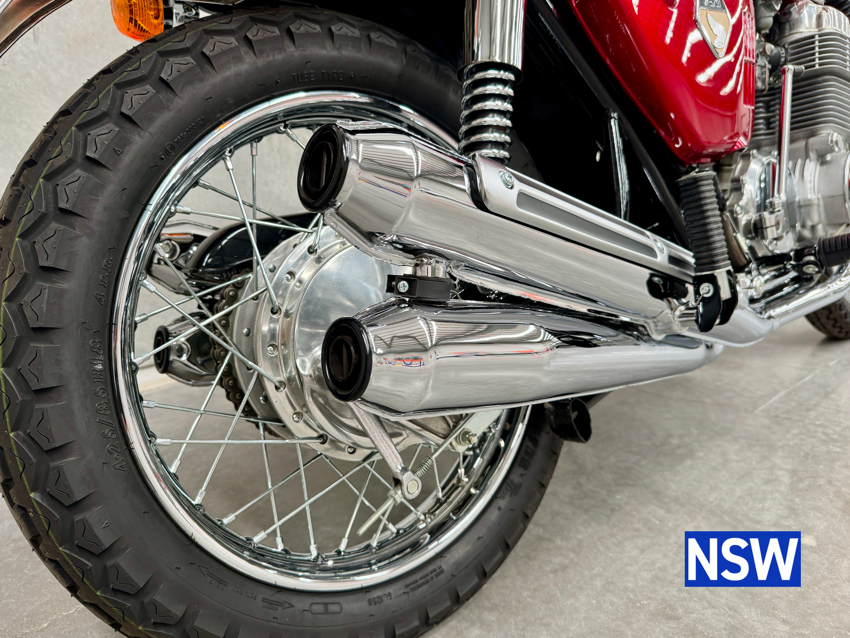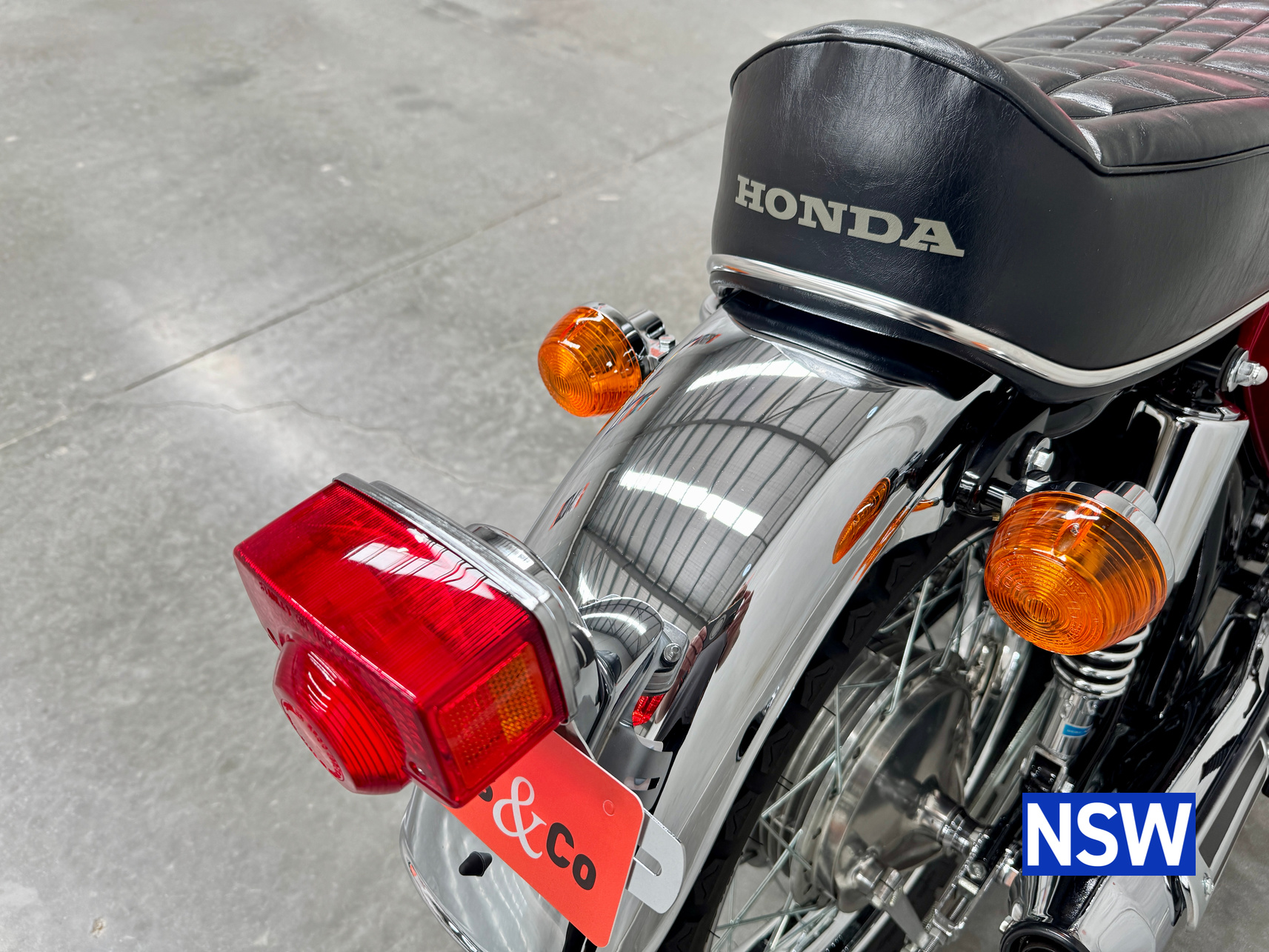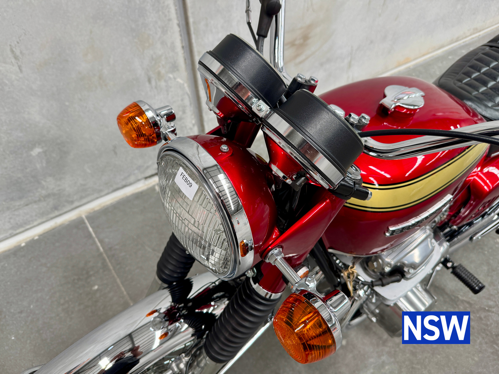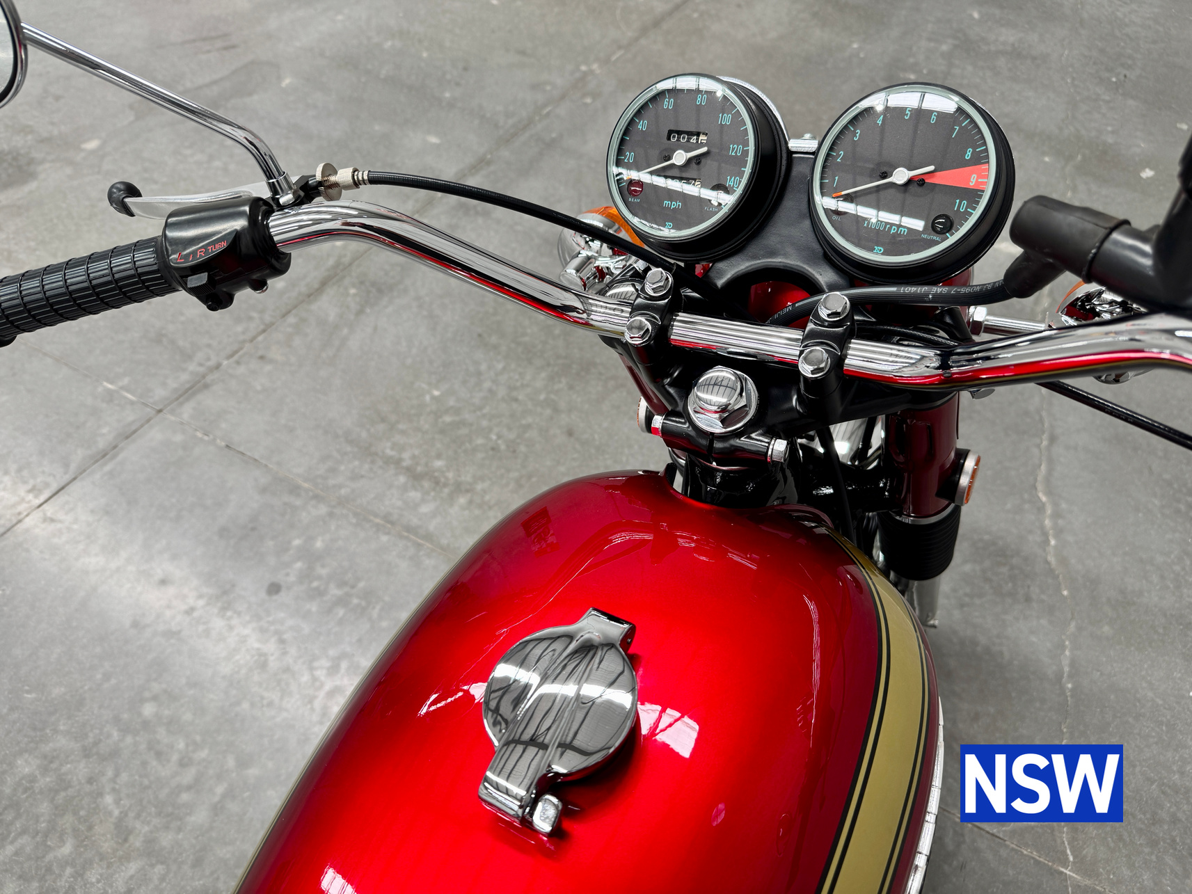 A legendary, hand built, early-production superbike, with the first featuring engine cases produced via gravity sand-casting, giving them a distinct, rougher texture. This example is a matching numbers bike and has undergone a full Nut-and-bolt restoration, completed with a strong emphasis on correctness, authenticity, and early-production detail. Matching numbers – original engine, Correct Sandcast gauge gear drives, Correct rolled rear rim restored, “wrinkle” fuel tank, Rare recessed ignition, Correct double-cut front fender restored, properly restored Lotus Roots exhaust system and numerous correct early-production castings and fittings throughout. These details clearly distinguish this machine from later CB750 variants and highlight both the significance of the example and the quality of the restoration. Importantly, the motorcycle retains its original matching-numbers engine and is in running condition, making it both a serious collector piece and a functioning historical machine. Bearing the frame number #976 this motorcycle is within approximately the first 1,000 units manufactured. These early CB750s represent the birth of the modern superbike and remain among the most significant and collectible Japanese motorcycles ever produced.
