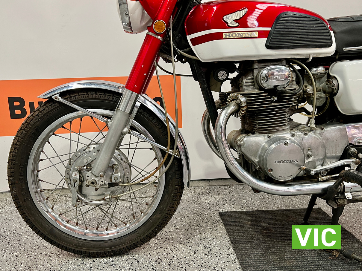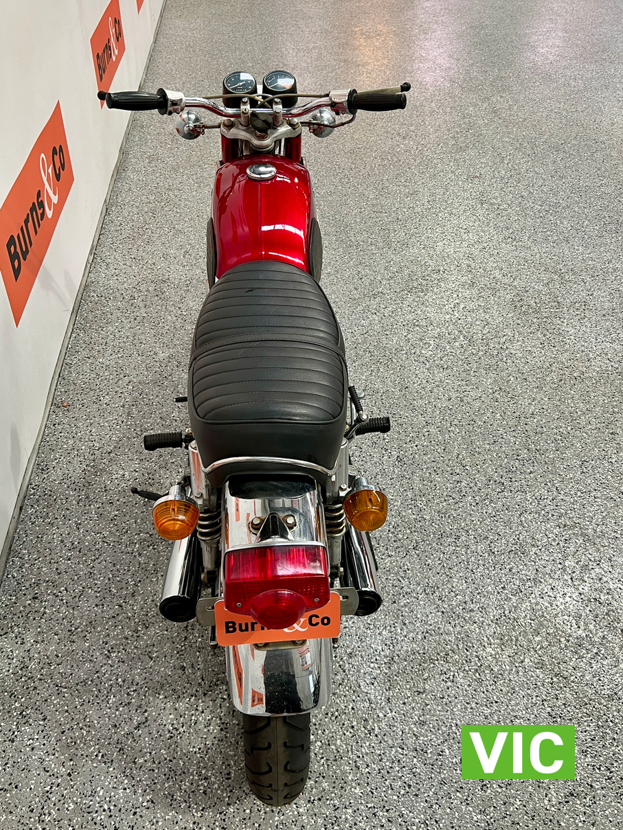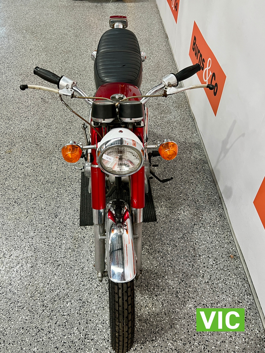 First model. Appears to be in excellent running and riding condition and presentation is spot on. A very attractive bike. Recent work includes: new battery, new seat cover, new tyres and new mufflers. Comes with key. Hard to go wrong with these early Japanese bikes.