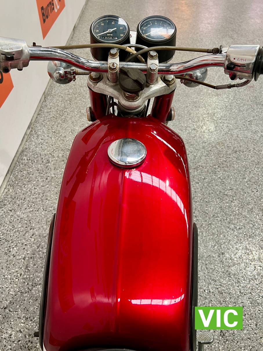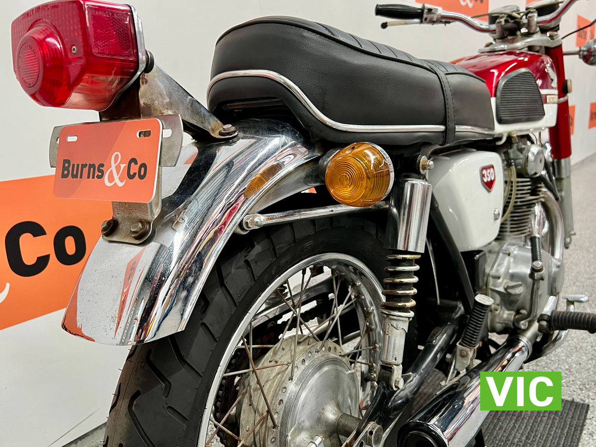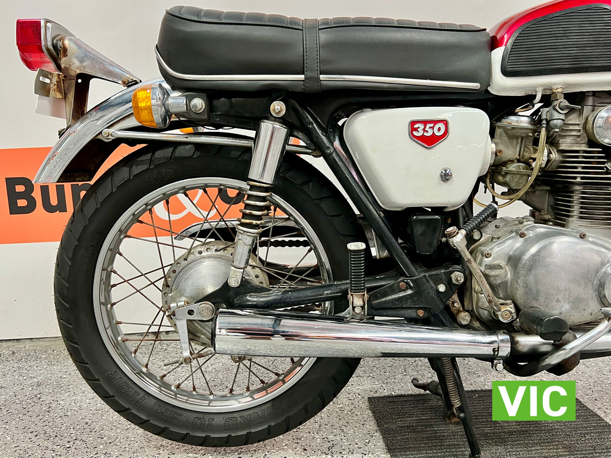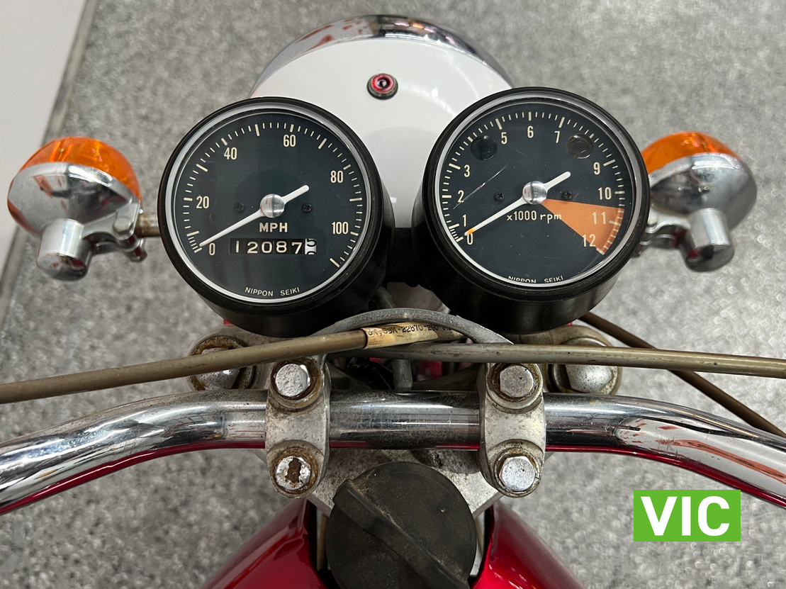 First model. Appears to be in excellent running and riding condition and presentation is spot on. A very attractive bike. Recent work includes: new battery, new seat cover, new tyres and new mufflers. Comes with key. Hard to go wrong with these early Japanese bikes.