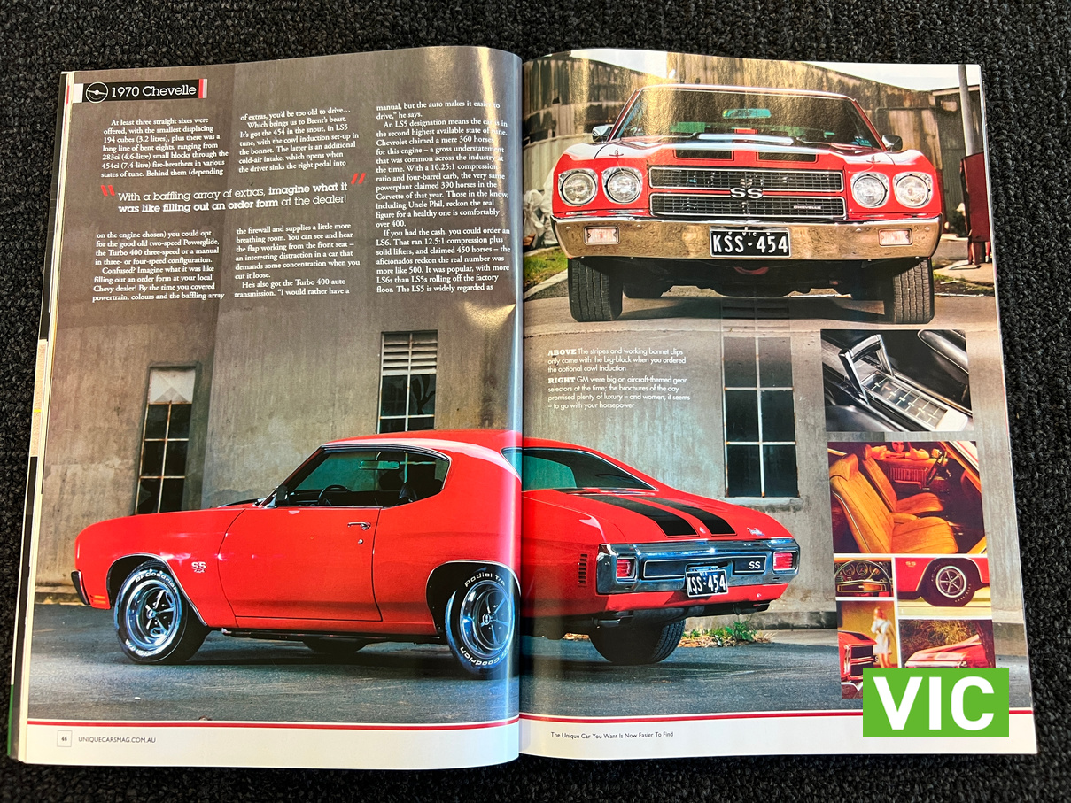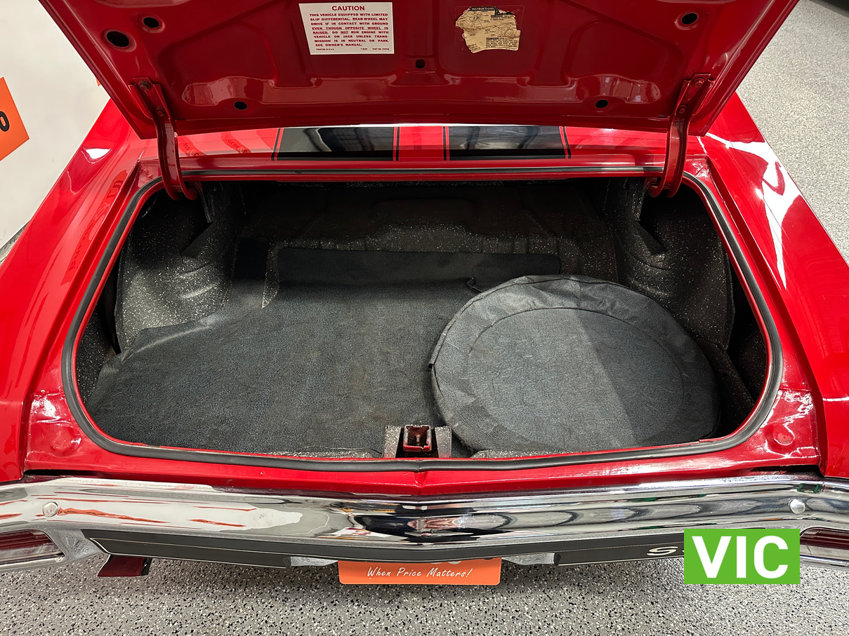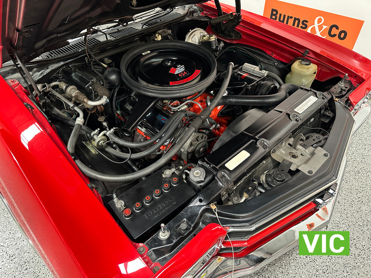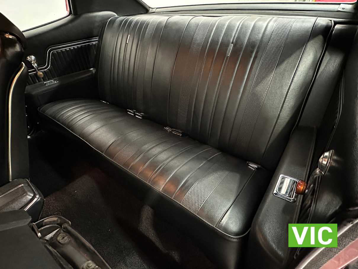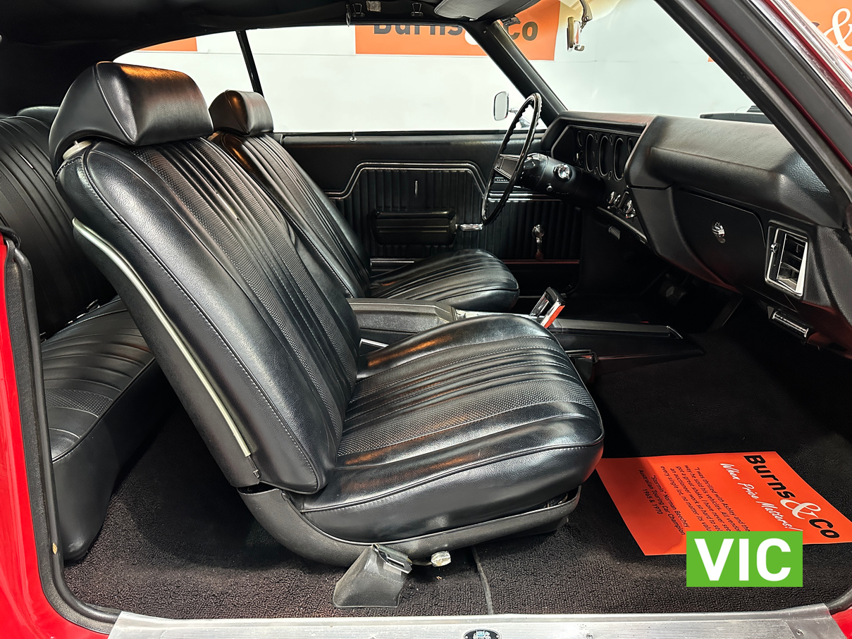 This genuine 1970 Chevelle SS 454 is in tip top condition. This one ticks all the boxes. Matching numbers, 454 LS5, 12 bolt rear with 3.31 code ratio, factory cranberry red paint and black interior, factory black hood and deck stripes, Z15 454 SS package, ZL2 special duct hood (cowl induction), F41 special performance suspension, power brakes with disc front end, Goodyear polyglas F70x14 tyres, windscreen antenna, Strato bucket seats, centre console, power steering, air-conditioning, push button radio and with 49xxx miles on the clock.