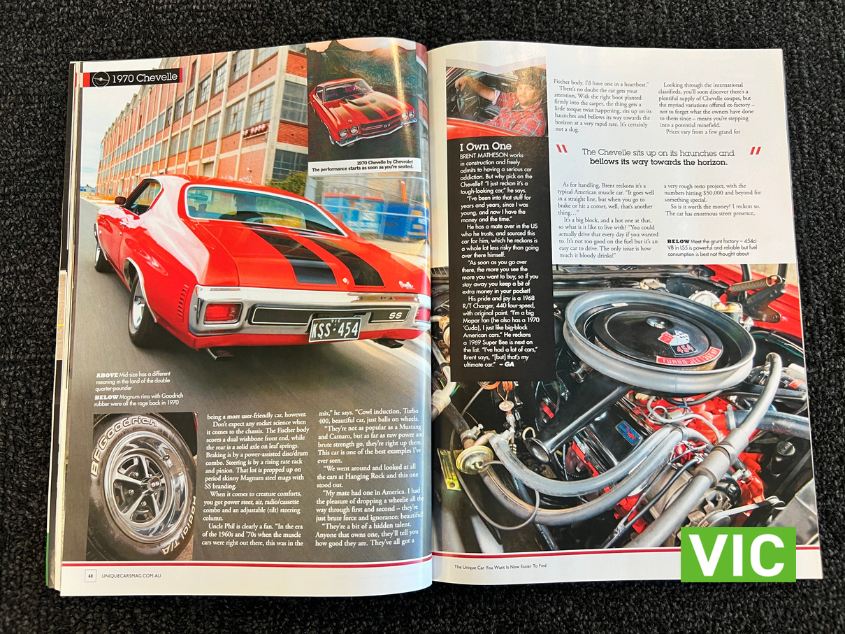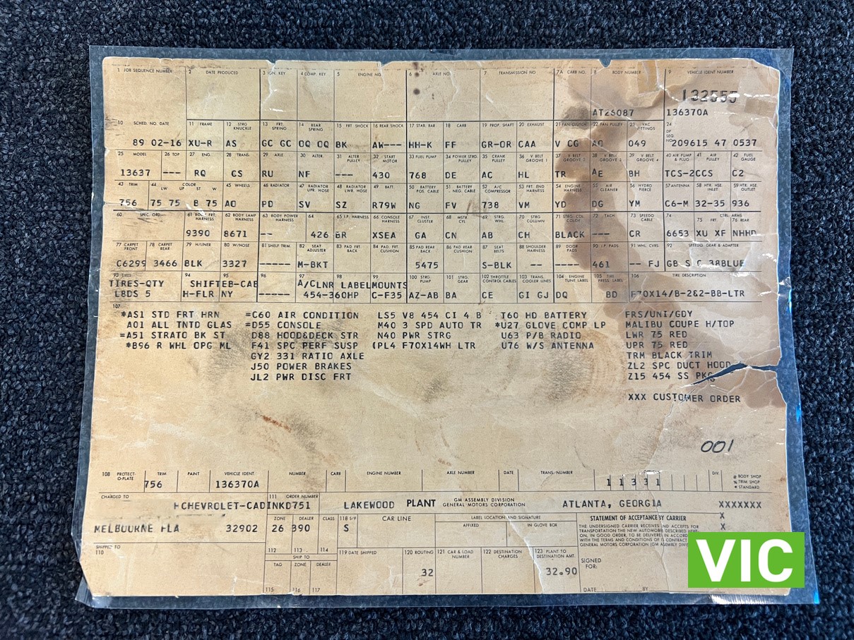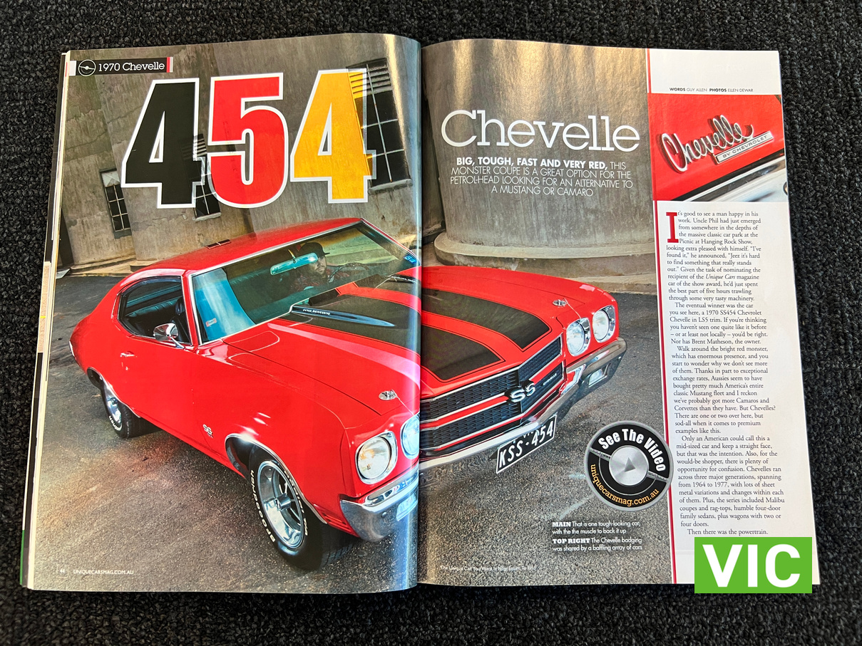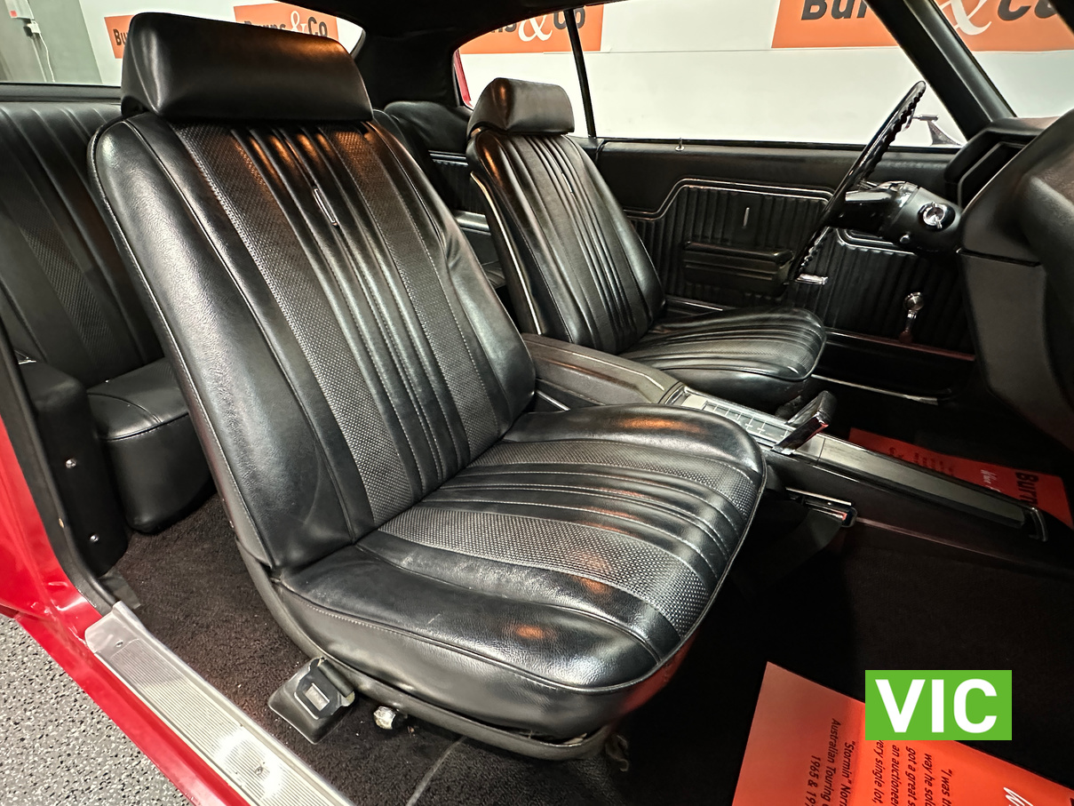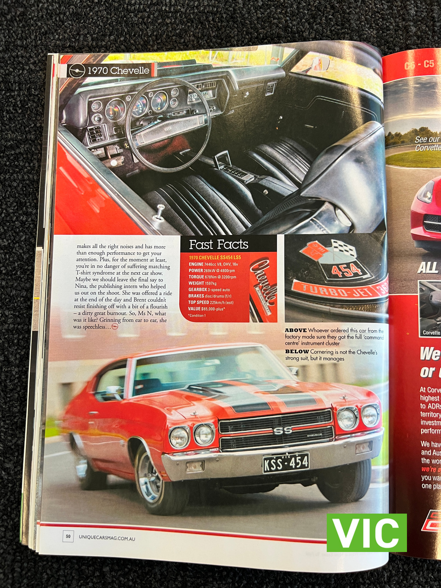 This genuine 1970 Chevelle SS 454 is in tip top condition. This one ticks all the boxes. Matching numbers, 454 LS5, 12 bolt rear with 3.31 code ratio, factory cranberry red paint and black interior, factory black hood and deck stripes, Z15 454 SS package, ZL2 special duct hood (cowl induction), F41 special performance suspension, power brakes with disc front end, Goodyear polyglas F70x14 tyres, windscreen antenna, Strato bucket seats, centre console, power steering, air-conditioning, push button radio and with 49xxx miles on the clock.