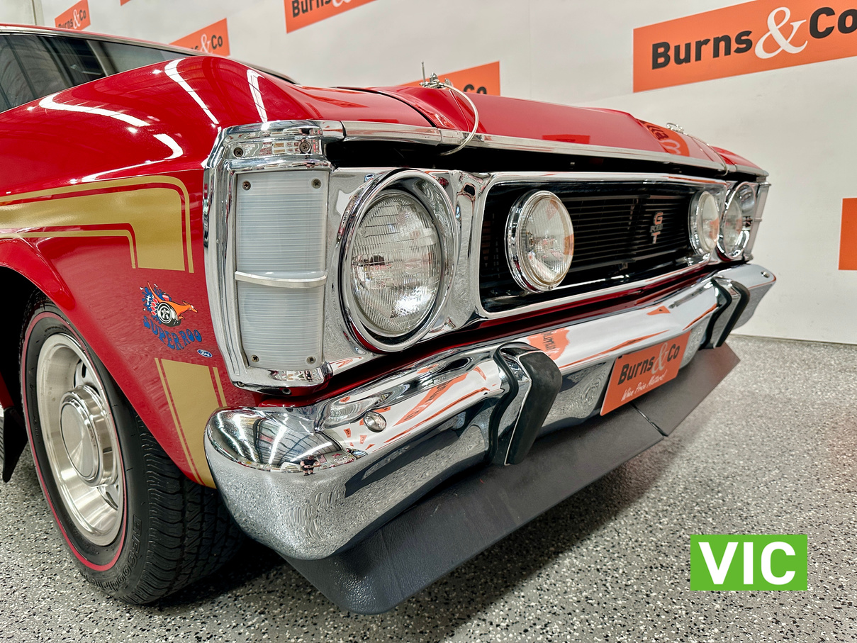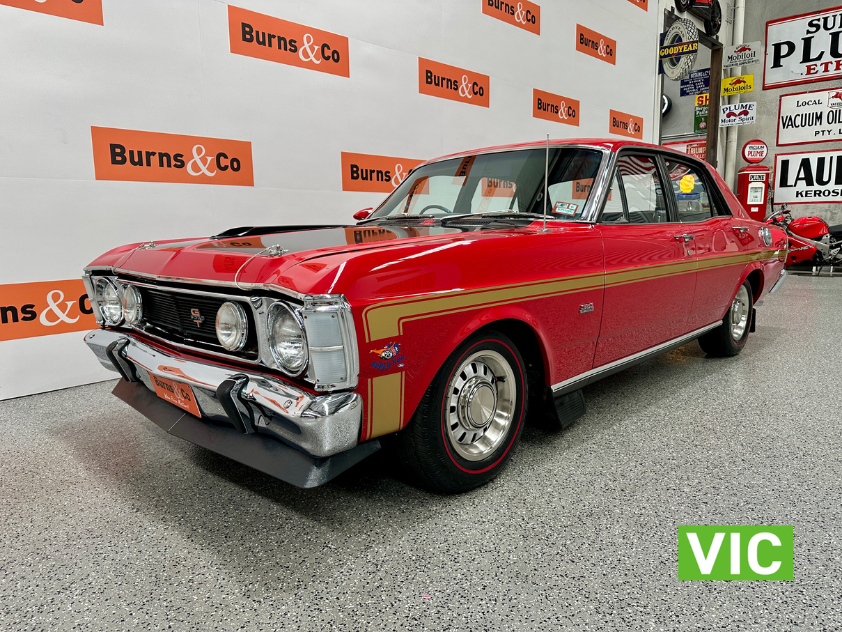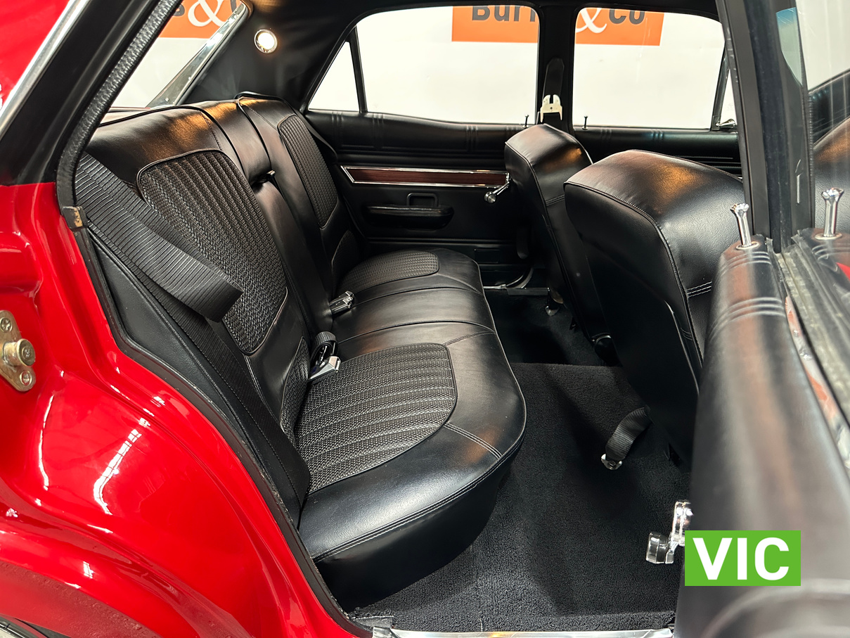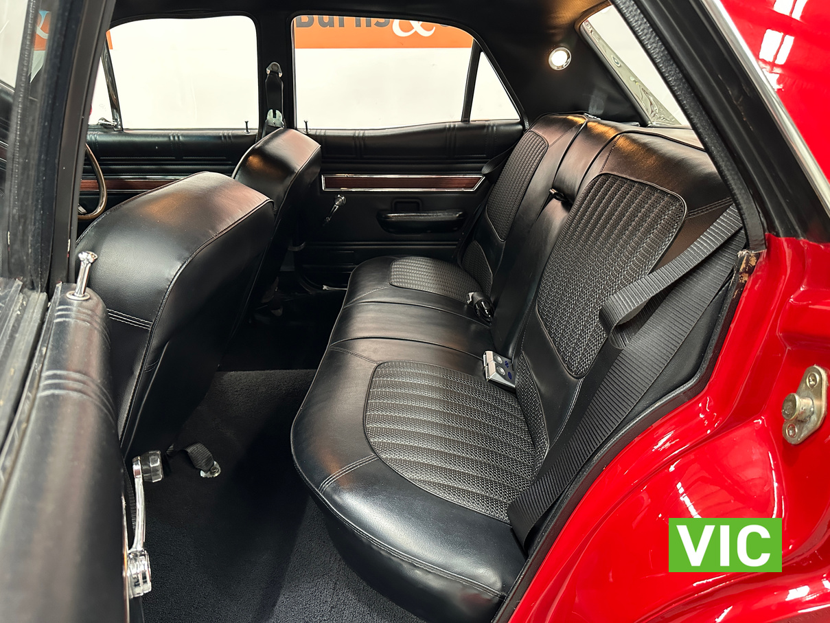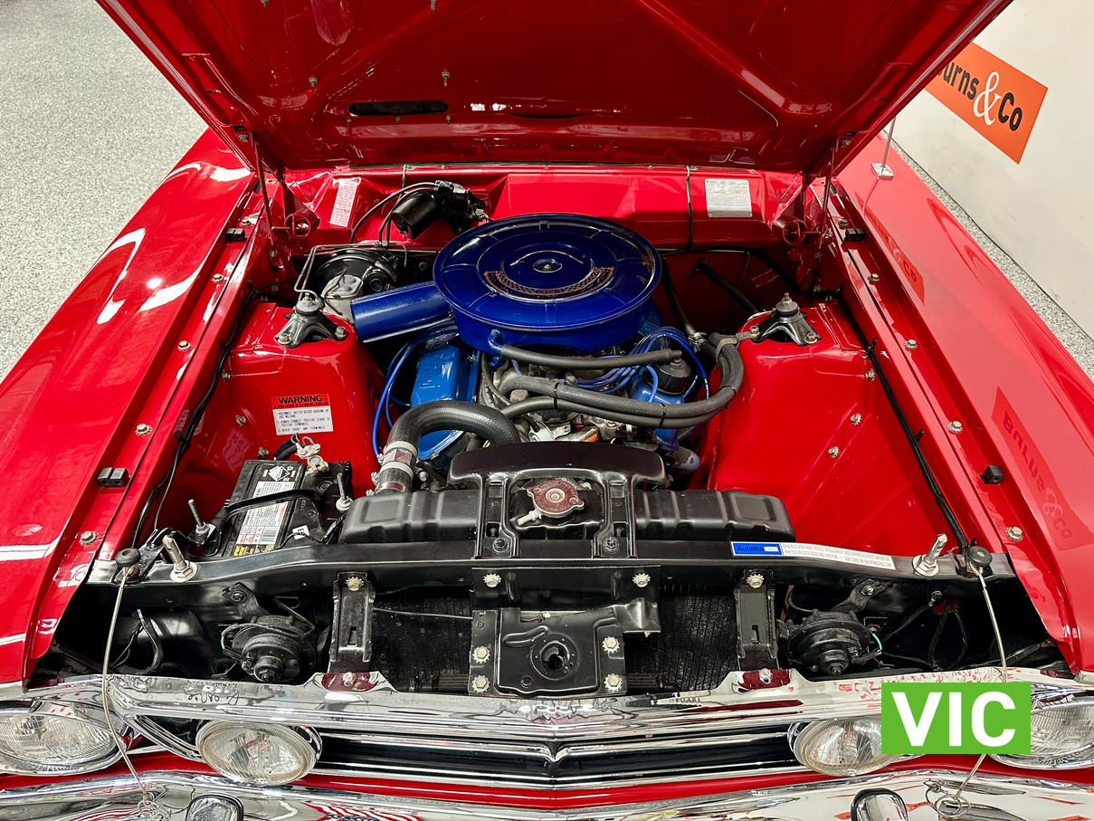 Bought new by the vendor’s father in June 1970 from New Oakleigh Motors Ford as a Vintage Burgundy, Dark Saddle, 302W, C4 V8 Fairmont. A full and complete nut and bolt ground up restoration was completed by the following: Engine by Stuart from Cavehill Engines, bodywork by Luke Kinsmore of Luke’s Custom Fabrications in Seville, paint by Troy Kinsmore in Lilydale, and electrical and project management by Scott Green of S G Auto Electrics in Lilydale. It now presents as a GT in Candy Apple Red, with a black interior, 351W, FMX, 9”, 12 slots with red walls. An extensive photo record of the project is available to the purchaser. The vendor advises that the vehicle has travelled a mere 1000 miles since its rebuild and advises that it has full documented history from day one.