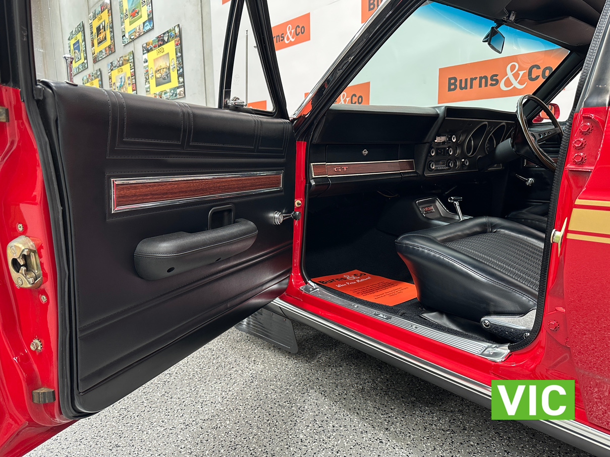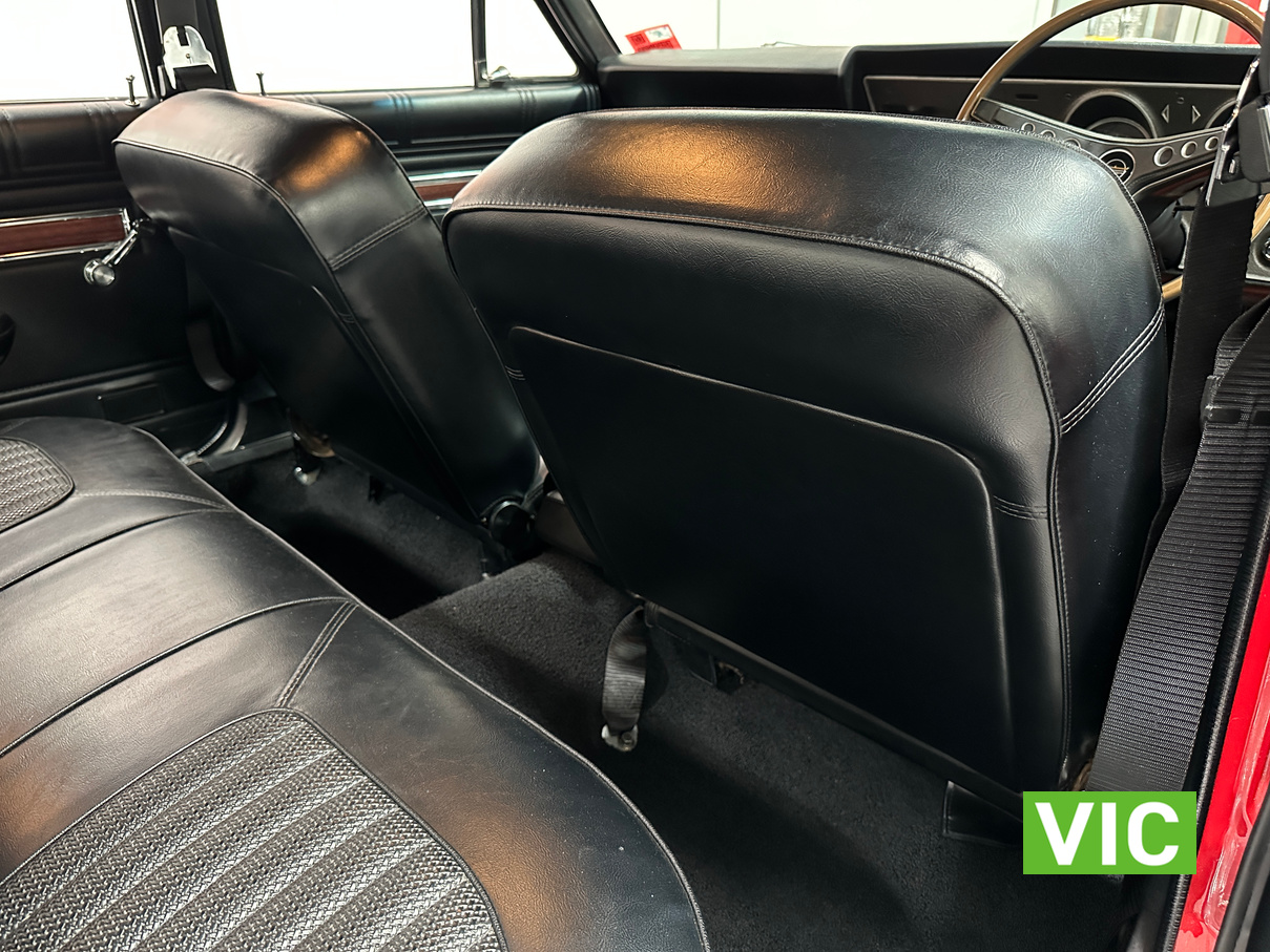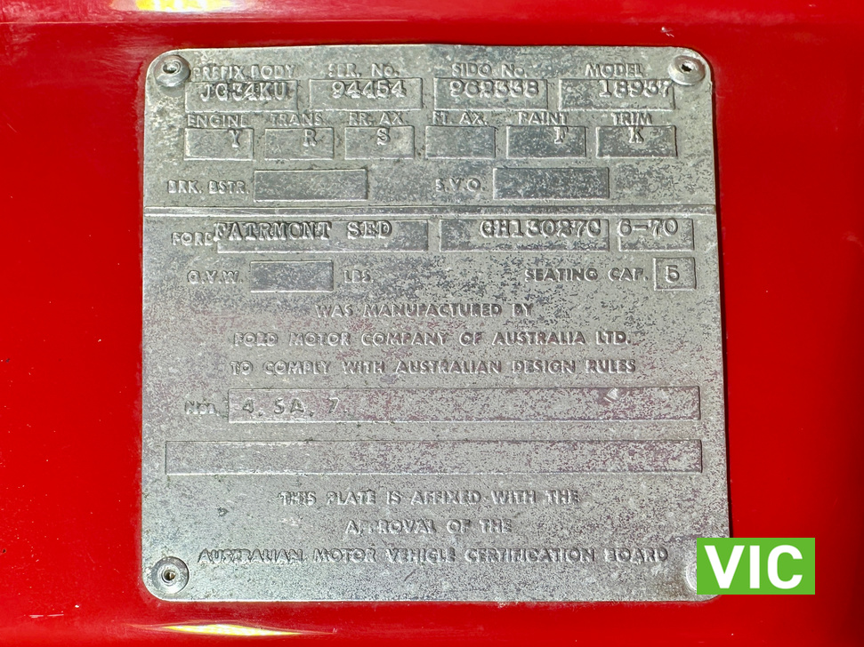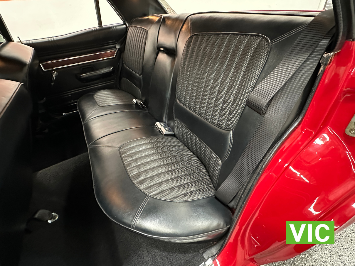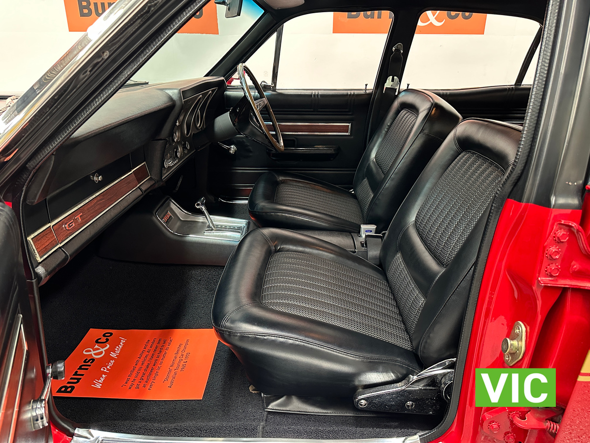 Bought new by the vendor’s father in June 1970 from New Oakleigh Motors Ford as a Vintage Burgundy, Dark Saddle, 302W, C4 V8 Fairmont. A full and complete nut and bolt ground up restoration was completed by the following: Engine by Stuart from Cavehill Engines, bodywork by Luke Kinsmore of Luke’s Custom Fabrications in Seville, paint by Troy Kinsmore in Lilydale, and electrical and project management by Scott Green of S G Auto Electrics in Lilydale. It now presents as a GT in Candy Apple Red, with a black interior, 351W, FMX, 9”, 12 slots with red walls. An extensive photo record of the project is available to the purchaser. The vendor advises that the vehicle has travelled a mere 1000 miles since its rebuild and advises that it has full documented history from day one.