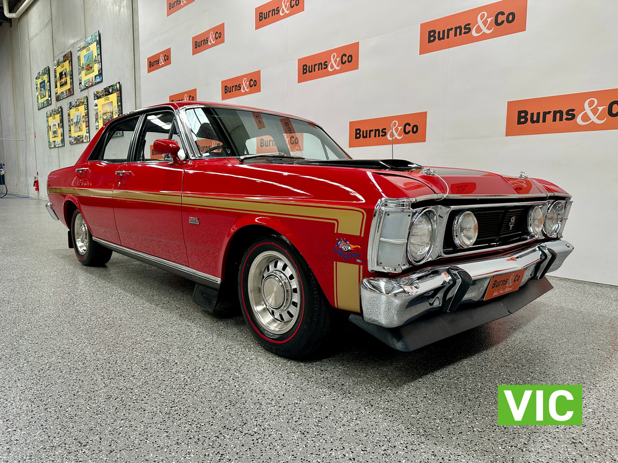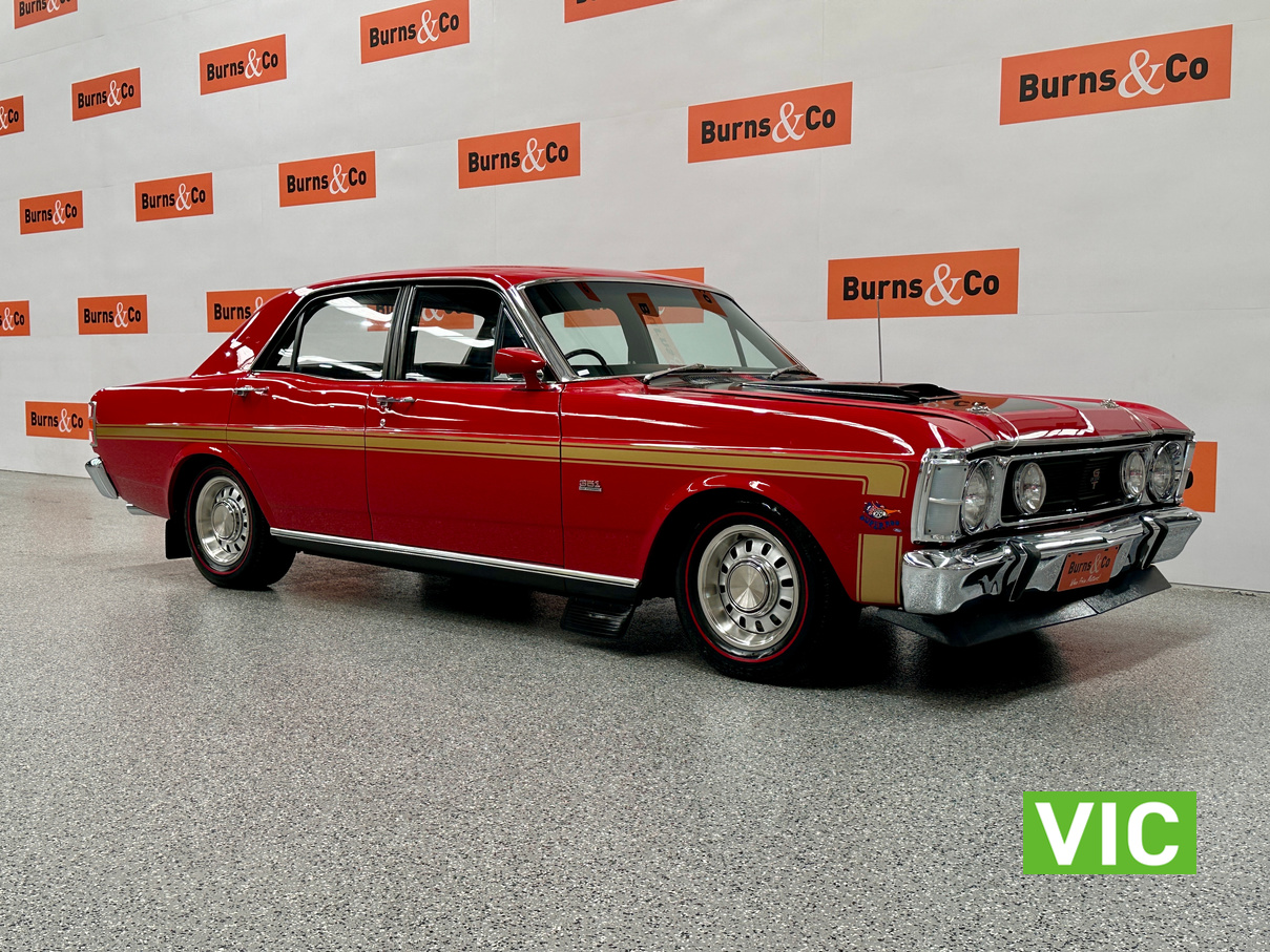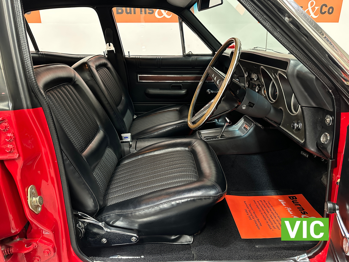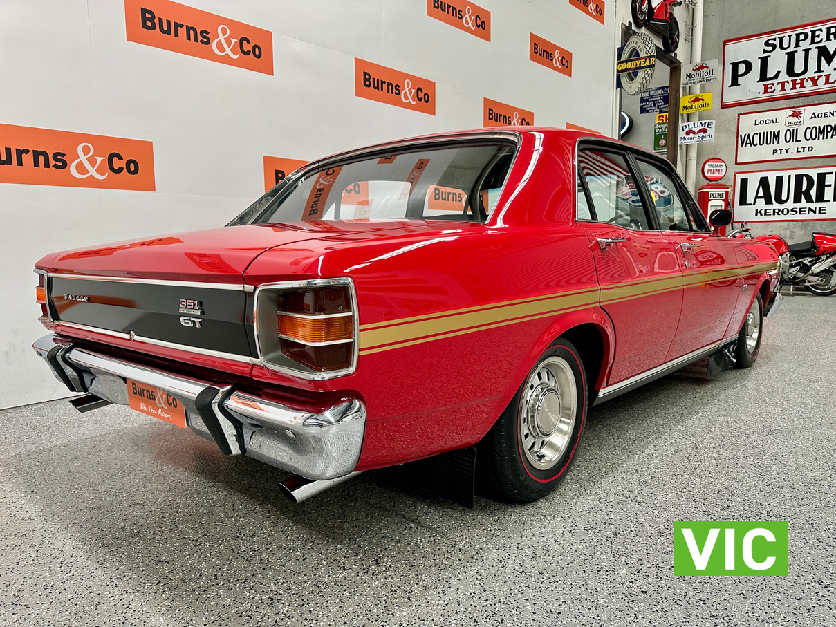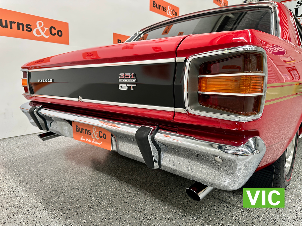 Bought new by the vendor’s father in June 1970 from New Oakleigh Motors Ford as a Vintage Burgundy, Dark Saddle, 302W, C4 V8 Fairmont. A full and complete nut and bolt ground up restoration was completed by the following: Engine by Stuart from Cavehill Engines, bodywork by Luke Kinsmore of Luke’s Custom Fabrications in Seville, paint by Troy Kinsmore in Lilydale, and electrical and project management by Scott Green of S G Auto Electrics in Lilydale. It now presents as a GT in Candy Apple Red, with a black interior, 351W, FMX, 9”, 12 slots with red walls. An extensive photo record of the project is available to the purchaser. The vendor advises that the vehicle has travelled a mere 1000 miles since its rebuild and advises that it has full documented history from day one.