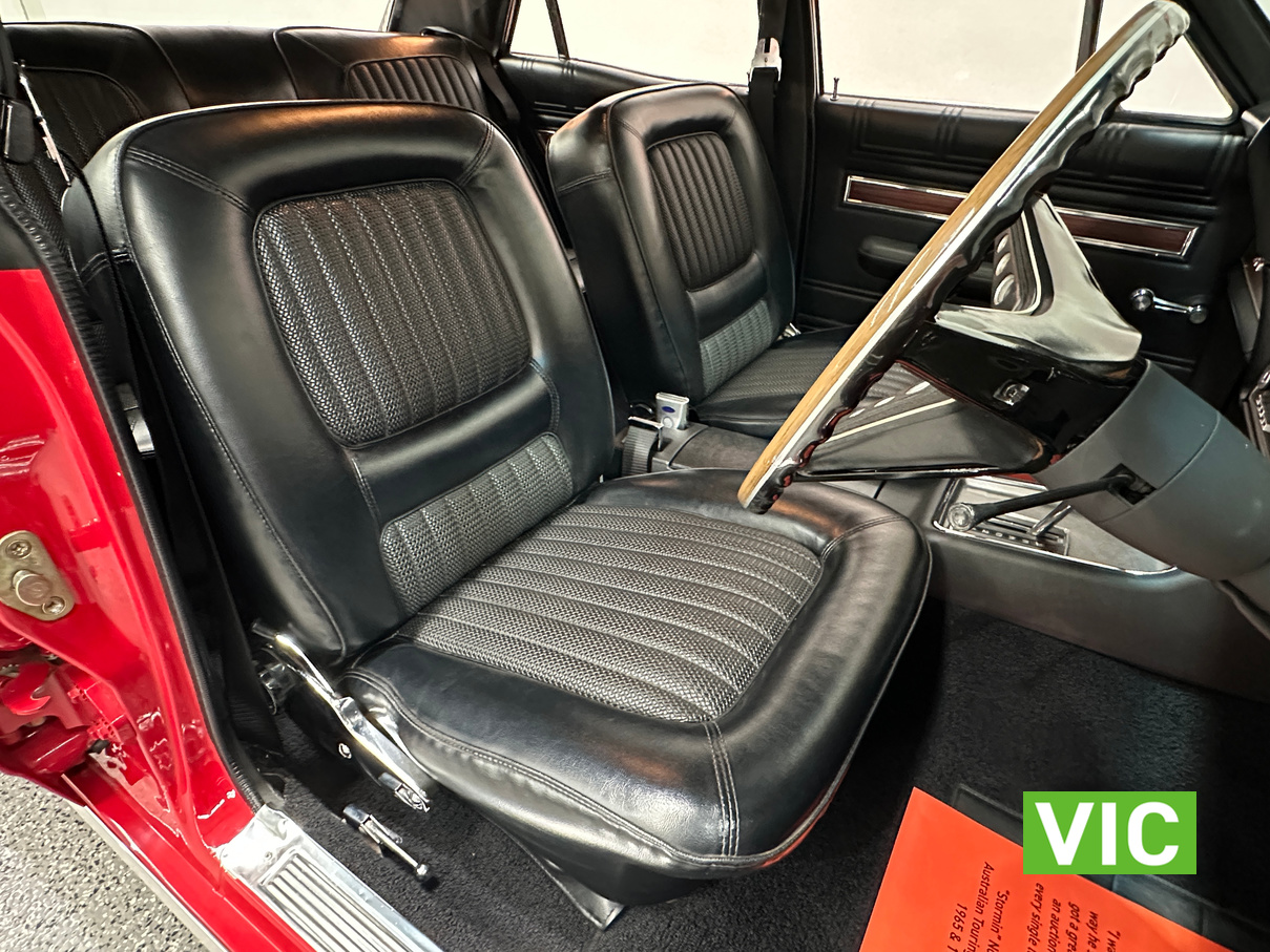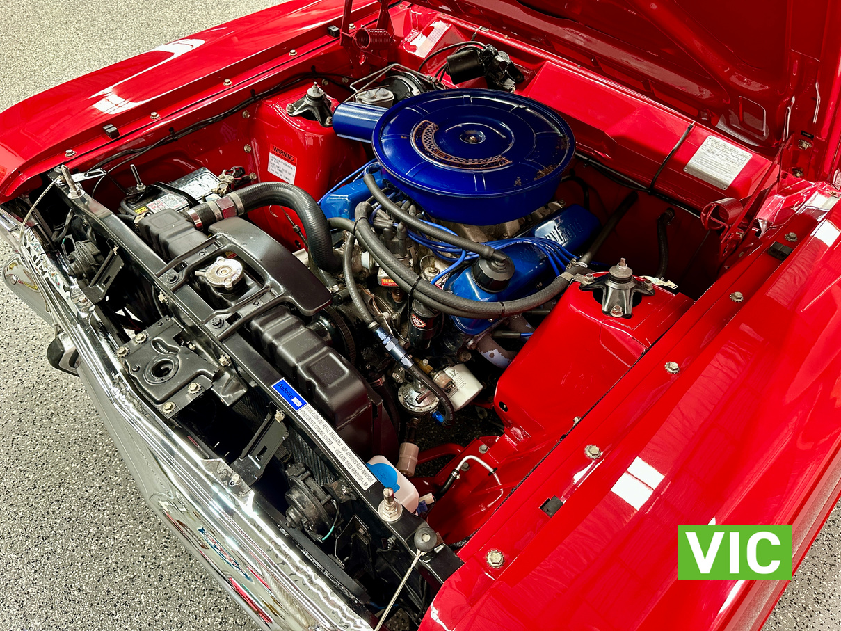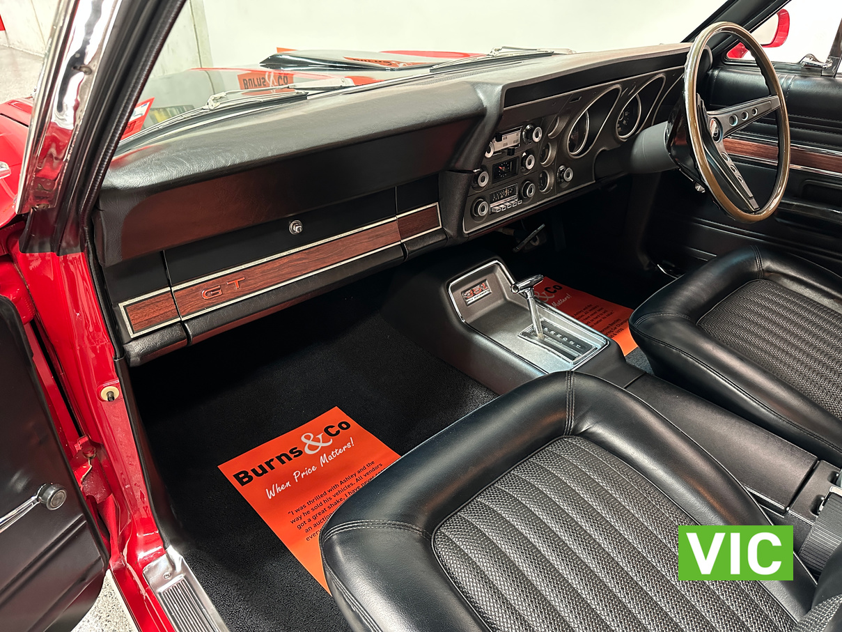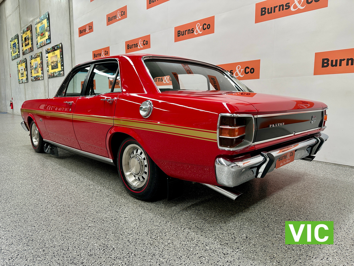 Bought new by the vendor’s father in June 1970 from New Oakleigh Motors Ford as a Vintage Burgundy, Dark Saddle, 302W, C4 V8 Fairmont. A full and complete nut and bolt ground up restoration was completed by the following: Engine by Stuart from Cavehill Engines, bodywork by Luke Kinsmore of Luke’s Custom Fabrications in Seville, paint by Troy Kinsmore in Lilydale, and electrical and project management by Scott Green of S G Auto Electrics in Lilydale. It now presents as a GT in Candy Apple Red, with a black interior, 351W, FMX, 9”, 12 slots with red walls. An extensive photo record of the project is available to the purchaser. The vendor advises that the vehicle has travelled a mere 1000 miles since its rebuild and advises that it has full documented history from day one.