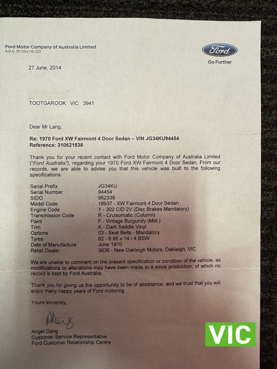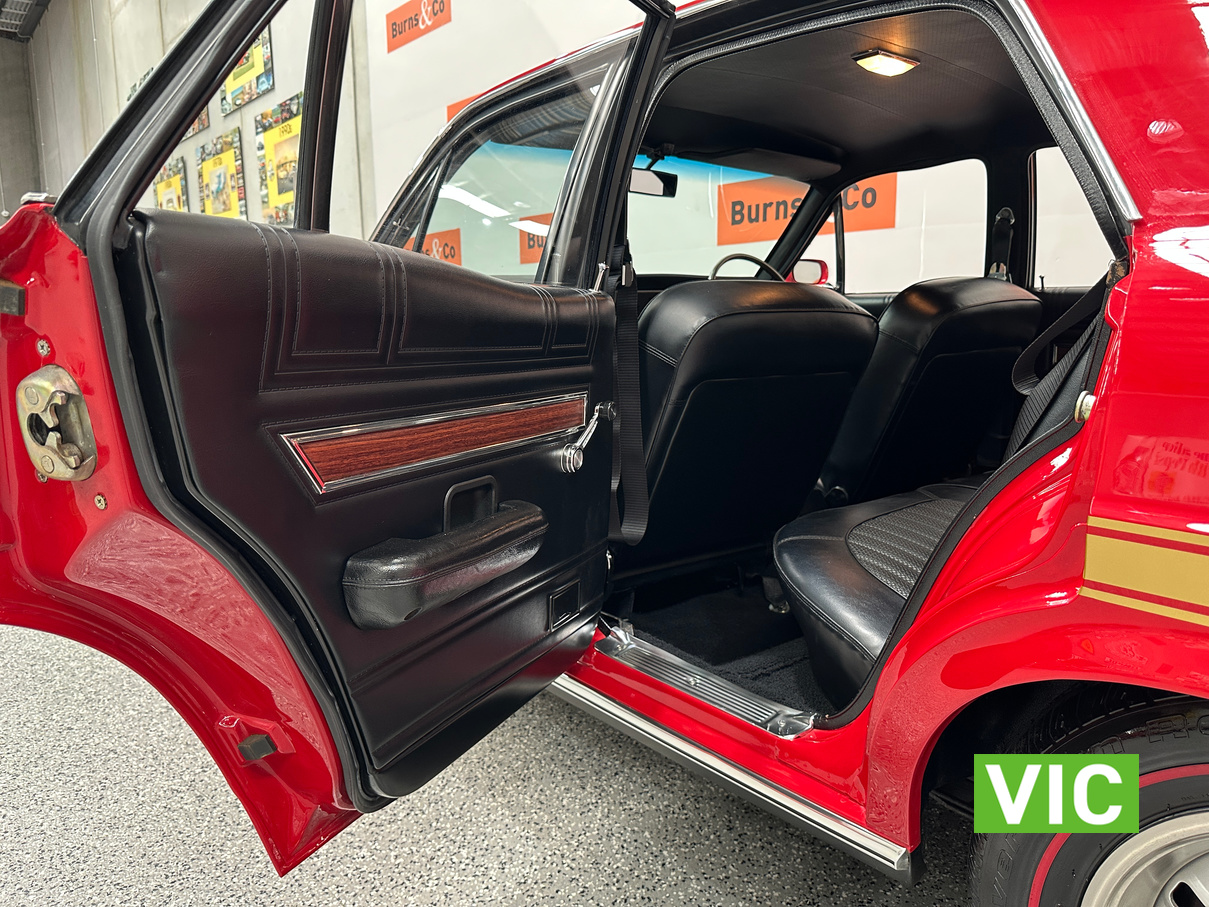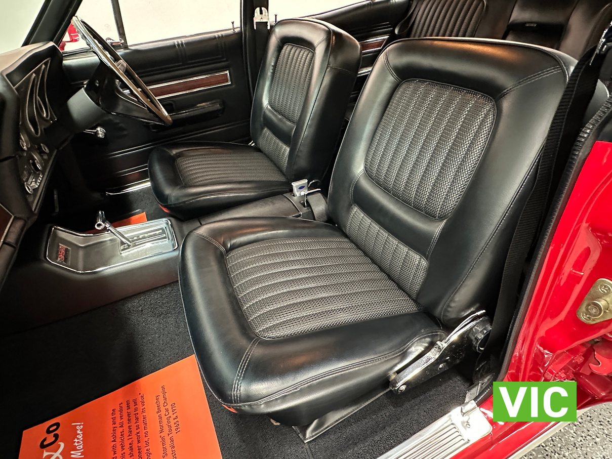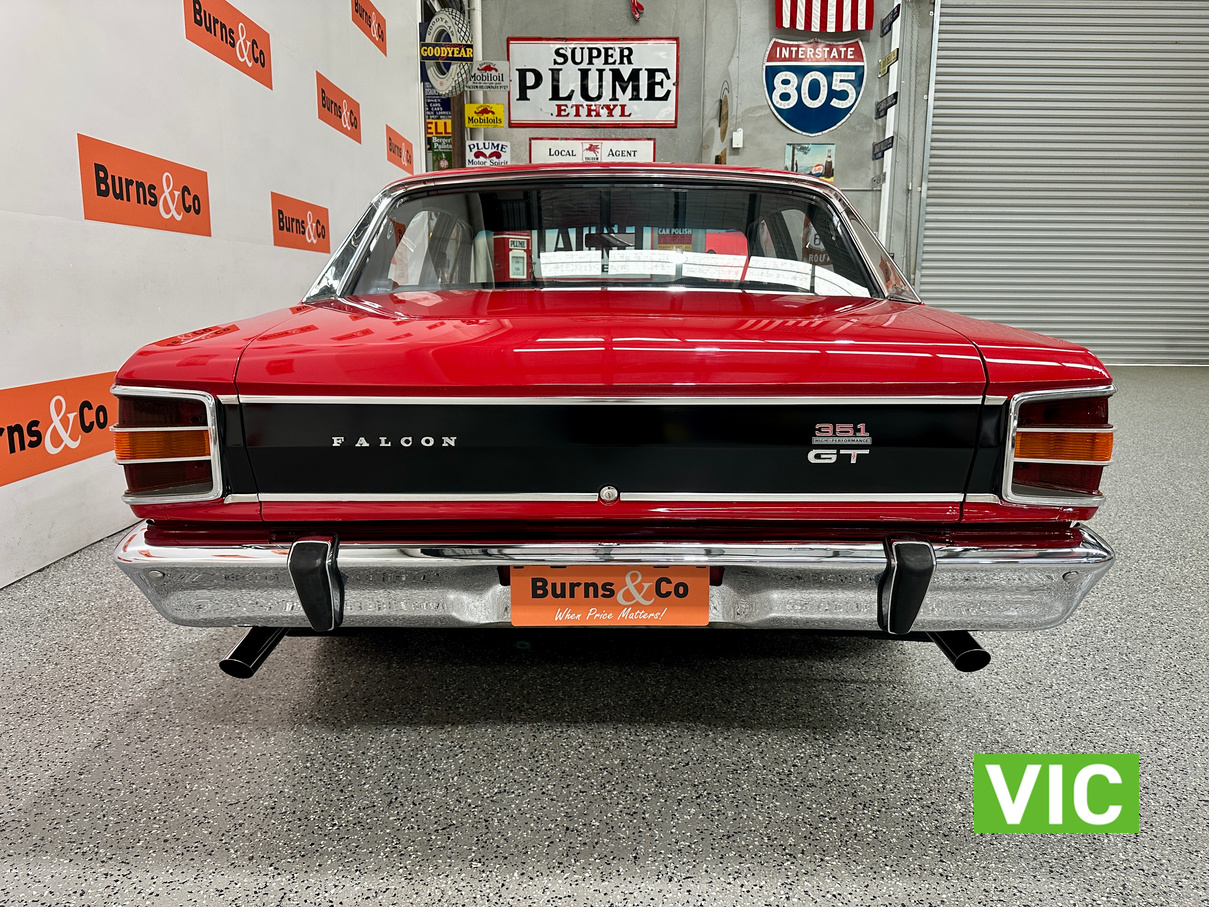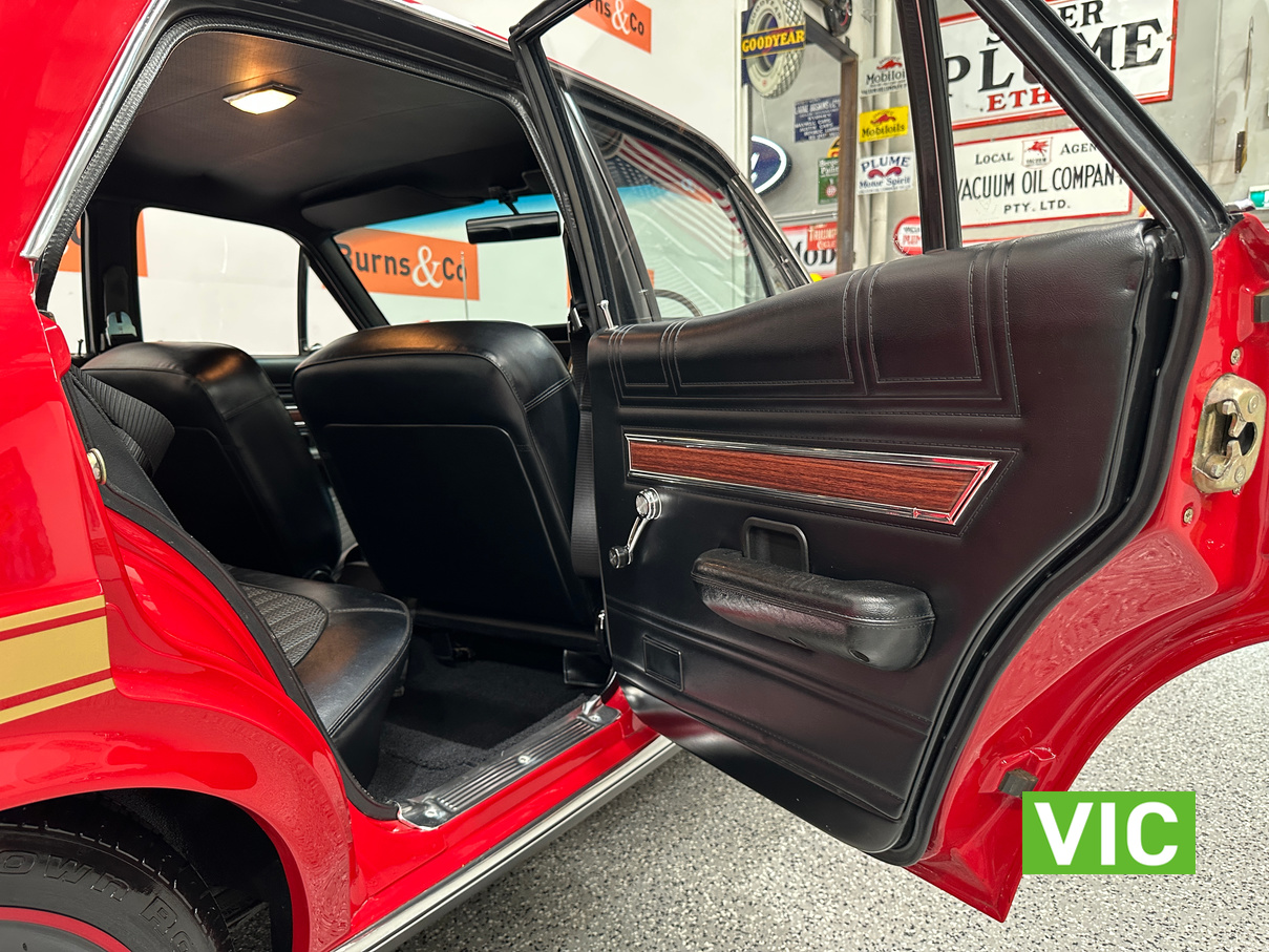 Bought new by the vendor’s father in June 1970 from New Oakleigh Motors Ford as a Vintage Burgundy, Dark Saddle, 302W, C4 V8 Fairmont. A full and complete nut and bolt ground up restoration was completed by the following: Engine by Stuart from Cavehill Engines, bodywork by Luke Kinsmore of Luke’s Custom Fabrications in Seville, paint by Troy Kinsmore in Lilydale, and electrical and project management by Scott Green of S G Auto Electrics in Lilydale. It now presents as a GT in Candy Apple Red, with a black interior, 351W, FMX, 9”, 12 slots with red walls. An extensive photo record of the project is available to the purchaser. The vendor advises that the vehicle has travelled a mere 1000 miles since its rebuild and advises that it has full documented history from day one.