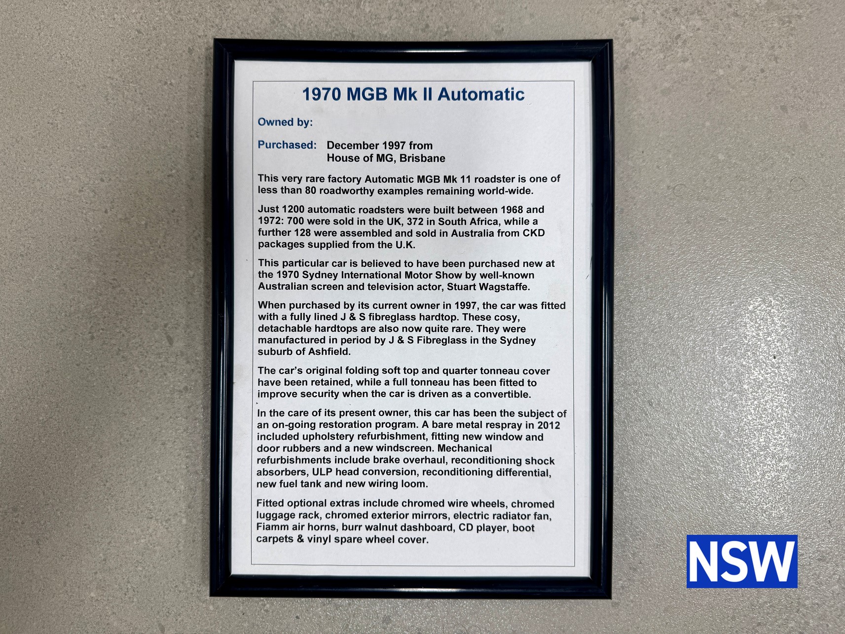 With a rare factory Automatic 1200 were produced worldwide and only 128 assembled in Australia, this one is believed to have been purchased from the 1970 Sydney International Motor show new by Australian TV Actor Stuart Wagstaffe. Comes with rare J&S hardtop, custom soft top, stylish 2 tone custom leather interior, 5 point harness & mounting system, service history and receipts. Pure classic car, fun driving experience and classy good looks makes this car a popular choice.