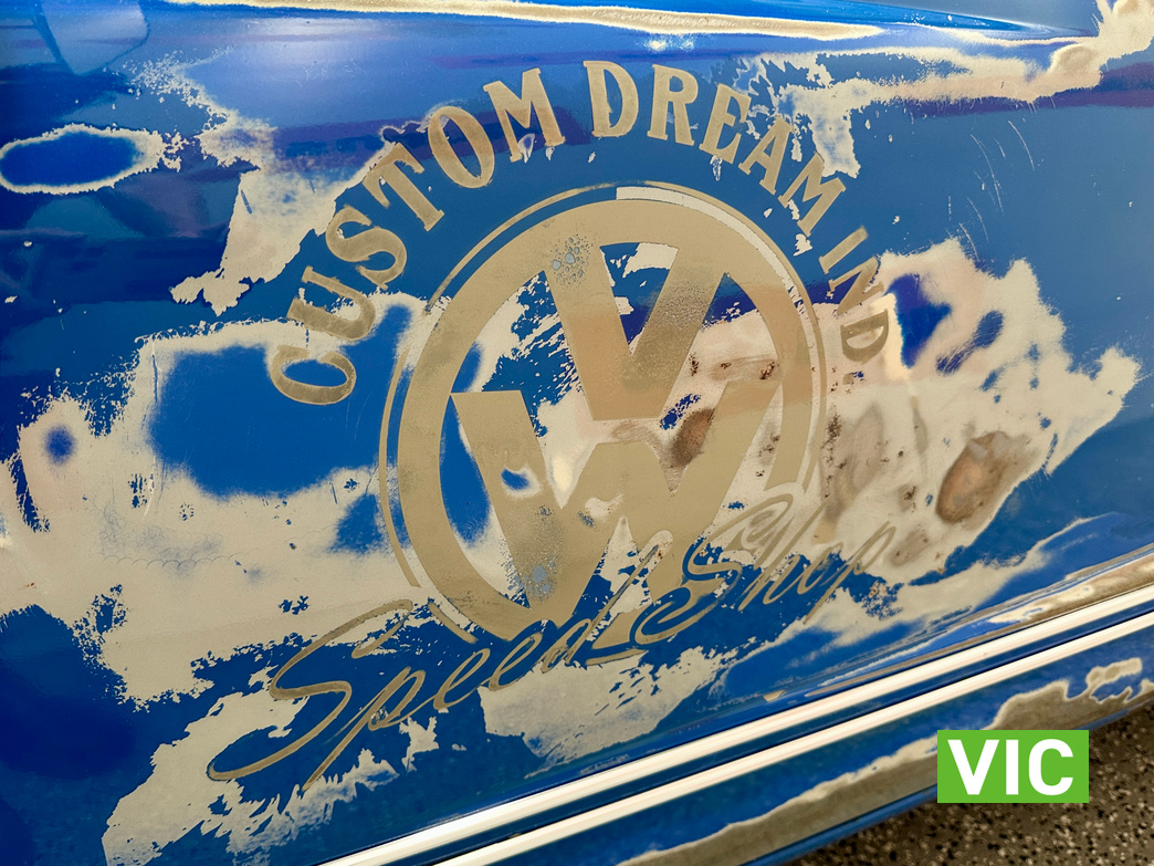 Vendor notes: car has had a complete ground up rebuild. Custom paint and graphics set this car apart with it’s tasteful patina look and then cleared over. Full custom interior, rebuilt 2.0Lt flat cylinder engine, dual Webber cabs, 4 speed manual gearbox, 4 wheel disc brakes, lowered suspension, projector headlight, custom exhaust, 15 inch steel wheels with original hub caps, every part of this car is updated and ready to cruise.