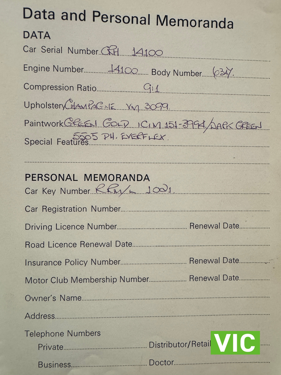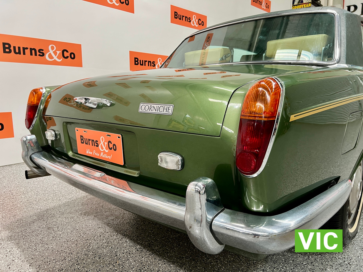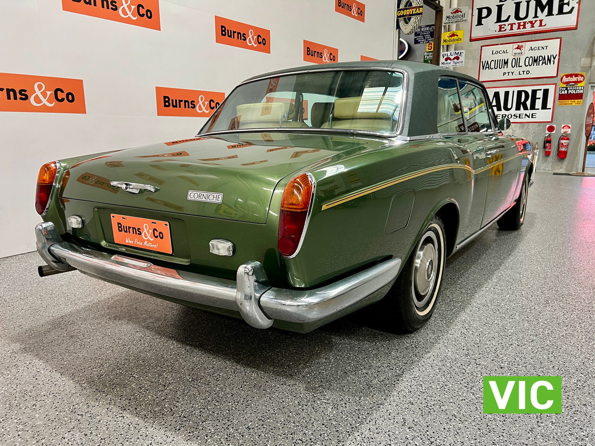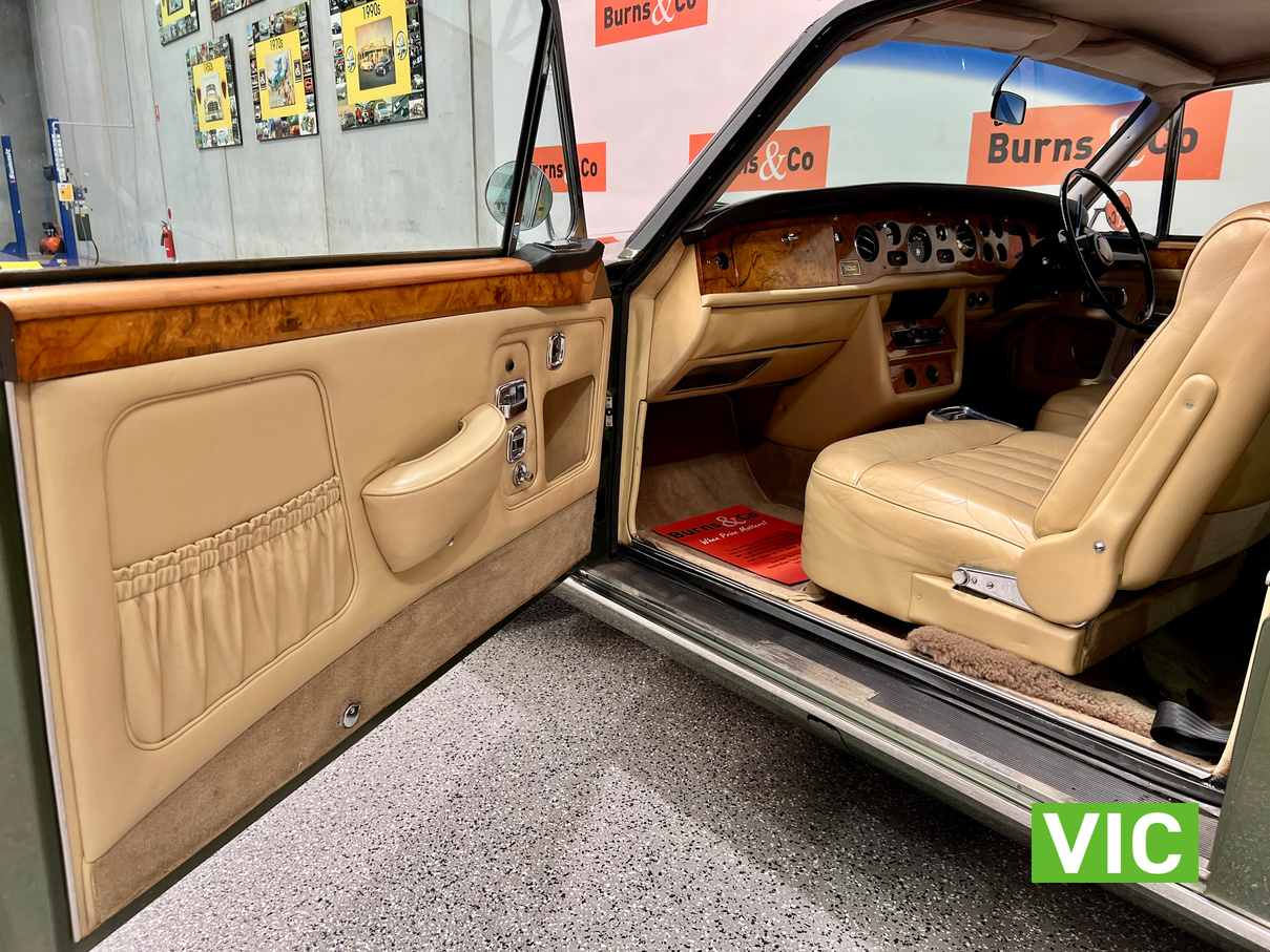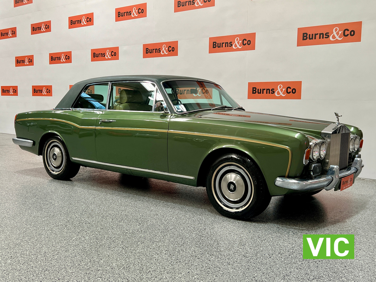 1972 Rolls Royce Corniche coupe, bill of sale dated 11/12/1972 supplied with car which indicates the car was first registered in 1973. Well loved, maintained and finished in elegant metallic green contrasting to a supple cream leather interior. Owned by the vendor since 1981 that’s 45 years of single ownership! The vendor was after a Corniche coupe locally and had no luck in securing one, he was then advised of this vehicle that was for sale in England, he flew over to sight the car and purchased it on the spot. The Rolls then made its way to Melbourne by boat and arrived safely. An excellent opportunity to own such a desirable and sought after Rolls Royce and in such great shape. Vinyl roof is in very good order as is the paintwork. Mechanically it ticks over as you’d expect. Supplied with the original owner’s manual and service book. Great example all round with fantastic provenance.