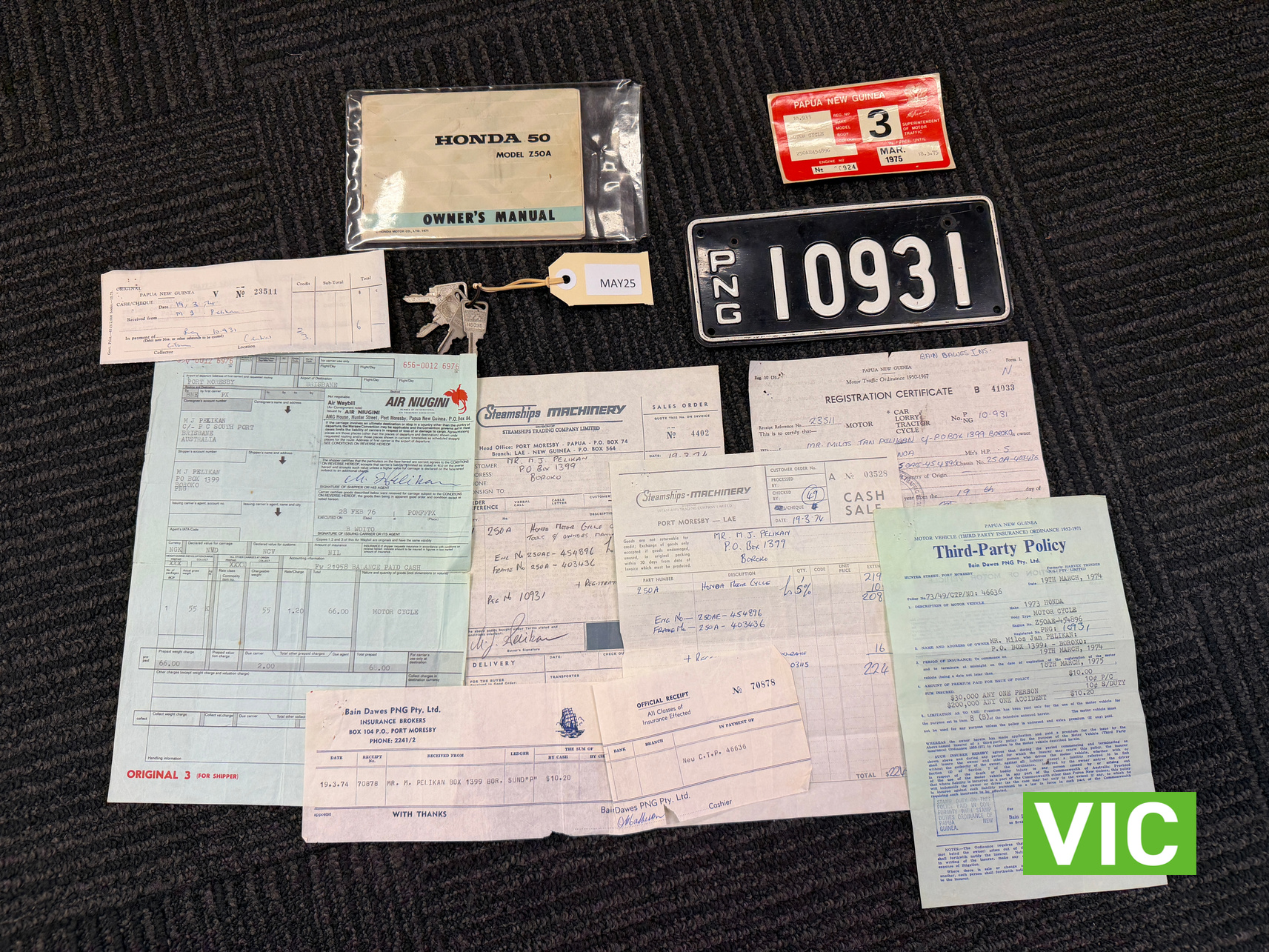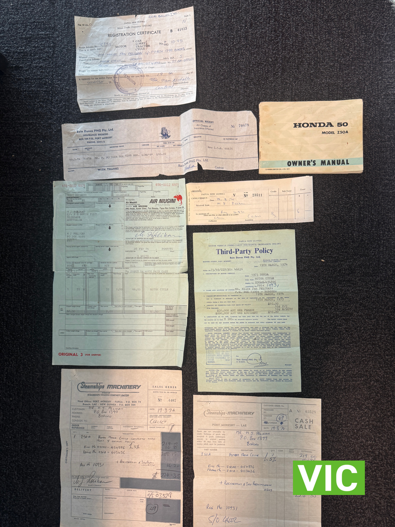If pedigree and provenance is important to you, then hold tight and have a read! The Original Owner’s background Milos Jan Pelikan (1926-2024) – Born Prague, Czechoslovakia came to Australia in 1950 as a student refugee from Czechoslovakia studying Agriculture. He was one of many persecuted by the regime, his father (Rudolf Pelikan) was a General (& Surgeon) , one of 16 who contributed to forming of nation Czechoslovakia in WW1. His father was recruited by the first President, T.G. Masaryk. He was Military Medical Commander of the military school after WW1. Upon Milos’ arrival in Melbourne, he worked on wharves in Port Melbourne for about 10yrs. Following that he got a job with the Australian Government in Papua New Guinea(then Territory of Papua New Guinea) in 1963 as a Land Surveyor for Dept Lands, Surveys & Mines located in Konedobu, Port Moresby, PNG. This was Administration HQ for Australian Government. He worked his way up the ranks and became Principal Land Development Officer for PNG. 1972 PNG was granted Self-Government status and was asked by Chief Minister Michael Somare to stay on in his Government ( within Lands Dept) and assist PNG on the road to Independence in 1975. This was an honour as it was a time when positions were being transferred to local PNG people. Michael Somare became first Prime Minister and Milos headed the Land Settlement Division but also worked with Natural Resources Dept. Milos and his family left PNG in 1976.