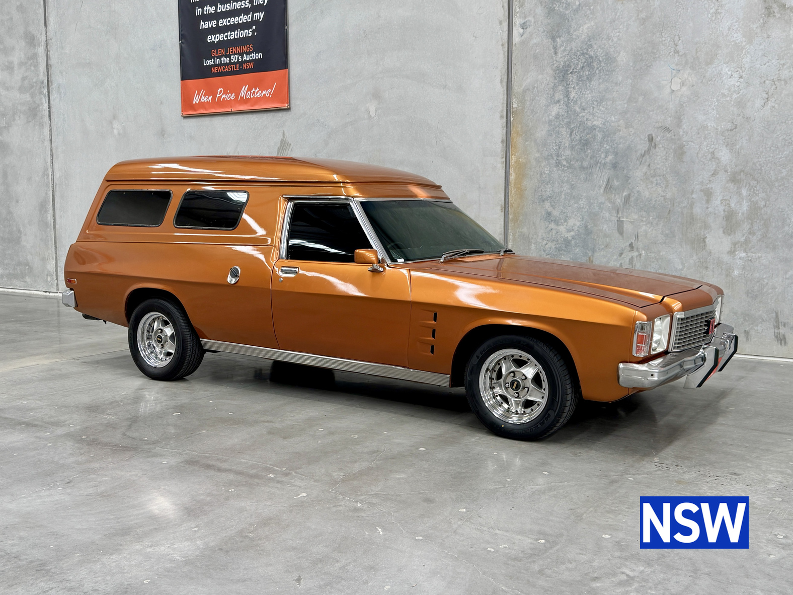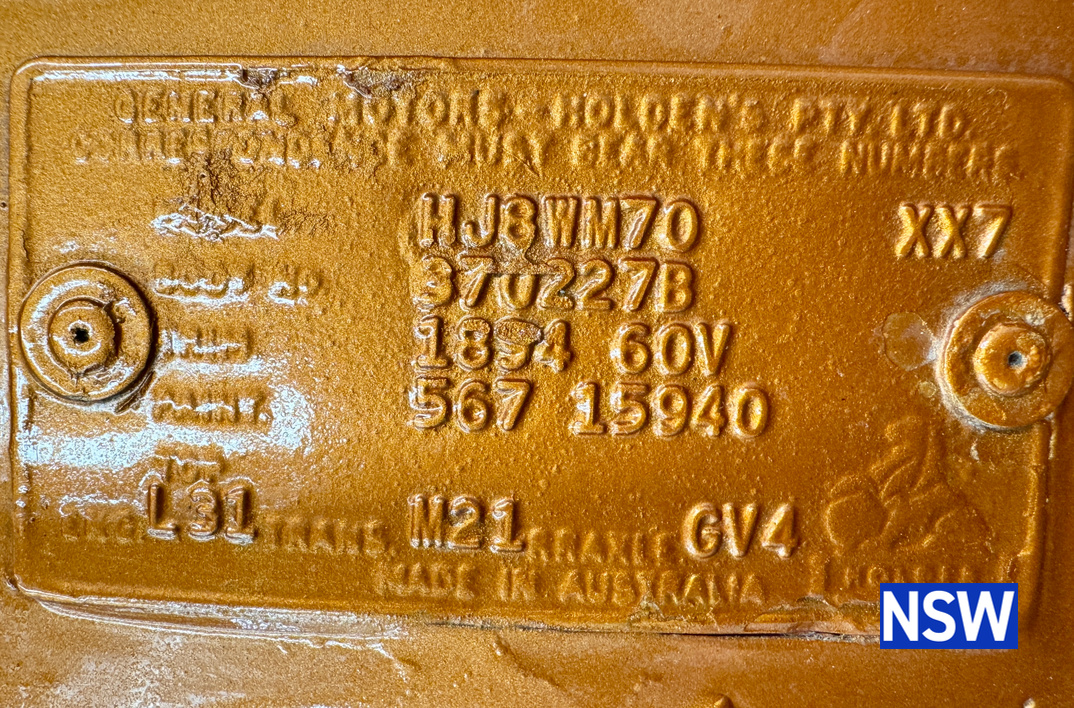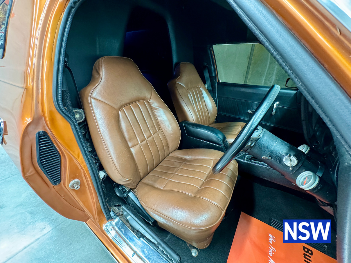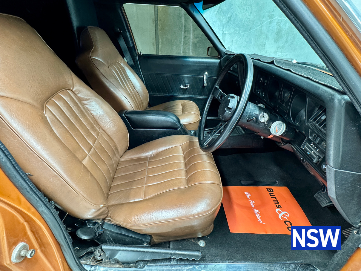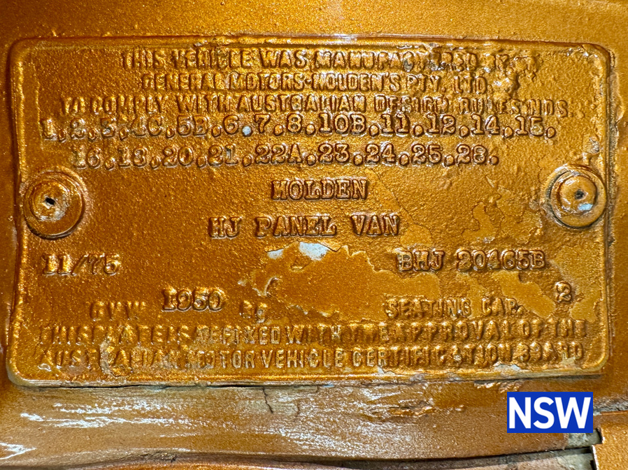 11/1975 HJ panel van, fitted with GTS dash, T Bar auto coupled to a 5.0 Litre 308 which has been stroked out to a 336 and balanced with Hemi rods by Lees performance of Brisbane. For ease of driving it is also equipped with power steering and a 2.78 Salisbury LSD diff. Finished in the striking colour of tiger mica. Underneath, there are a few areas of corrosion (see photos).