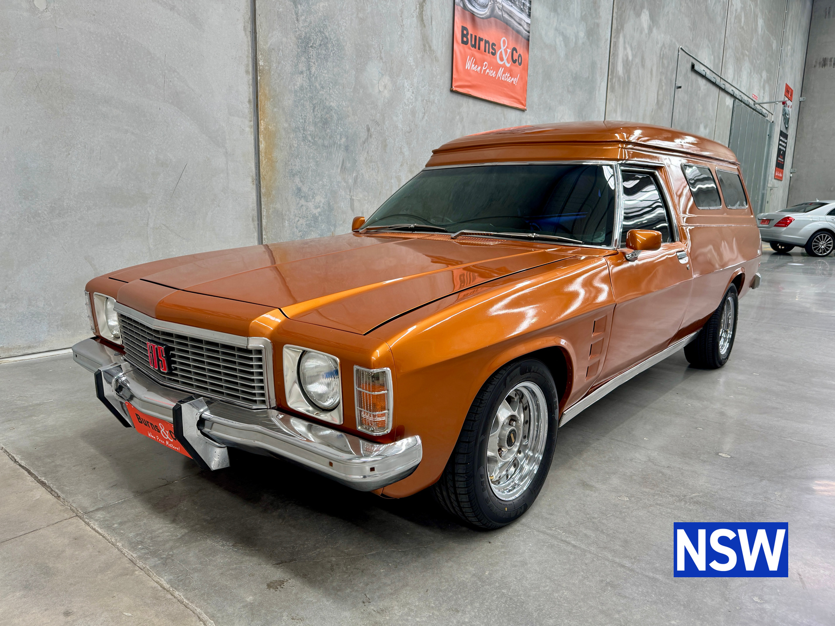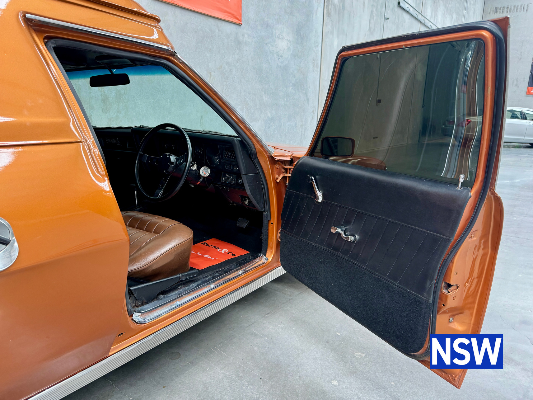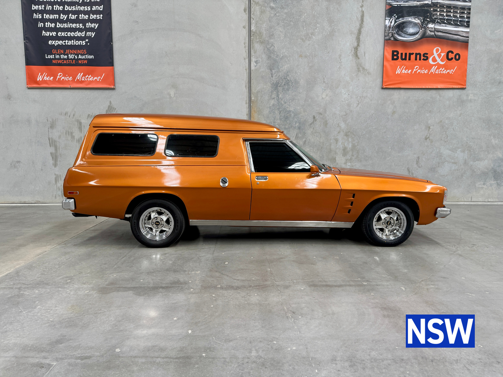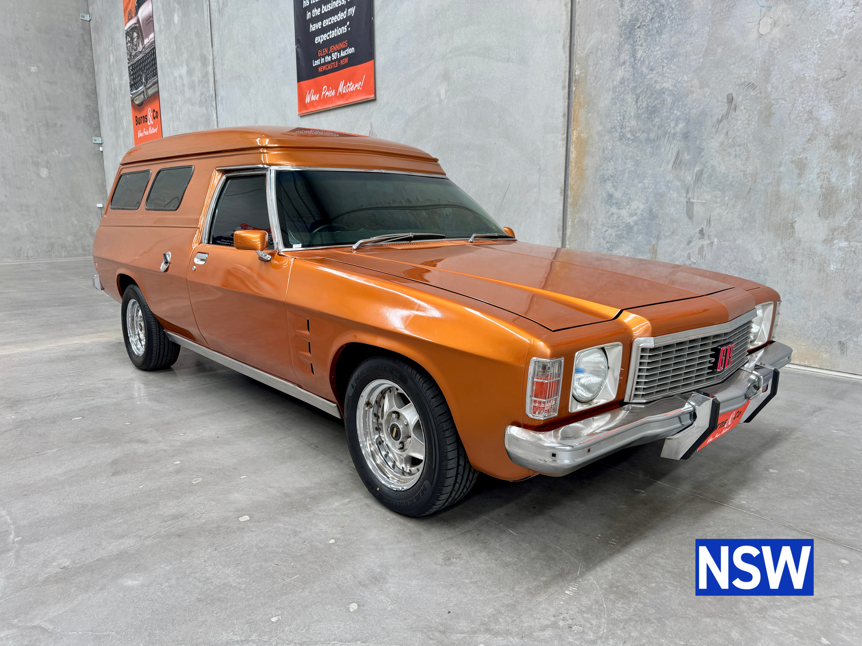11/1975 HJ panel van, fitted with GTS dash, T Bar auto coupled to a 5.0 Litre 308 which has been stroked out to a 336 and balanced with Hemi rods by Lees performance of Brisbane. For ease of driving it is also equipped with power steering and a 2.78 Salisbury LSD diff. Finished in the striking colour of tiger mica. Underneath, there are a few areas of corrosion (see photos).