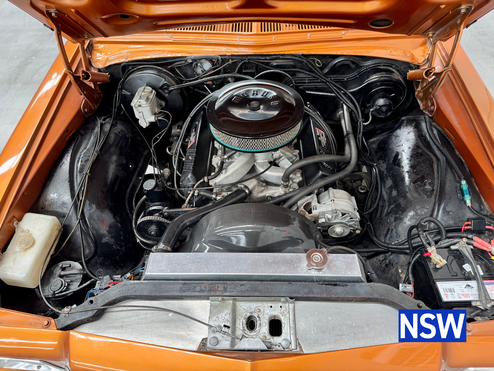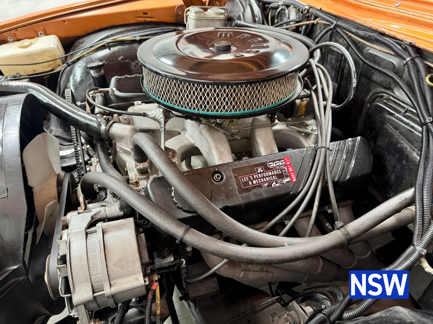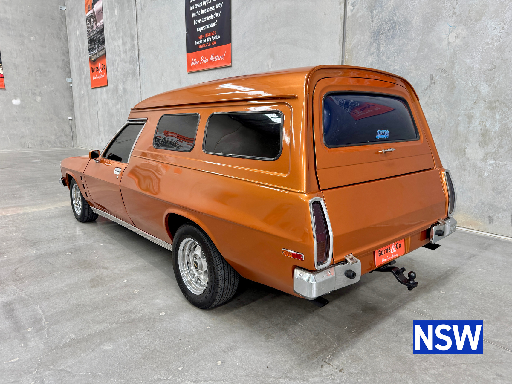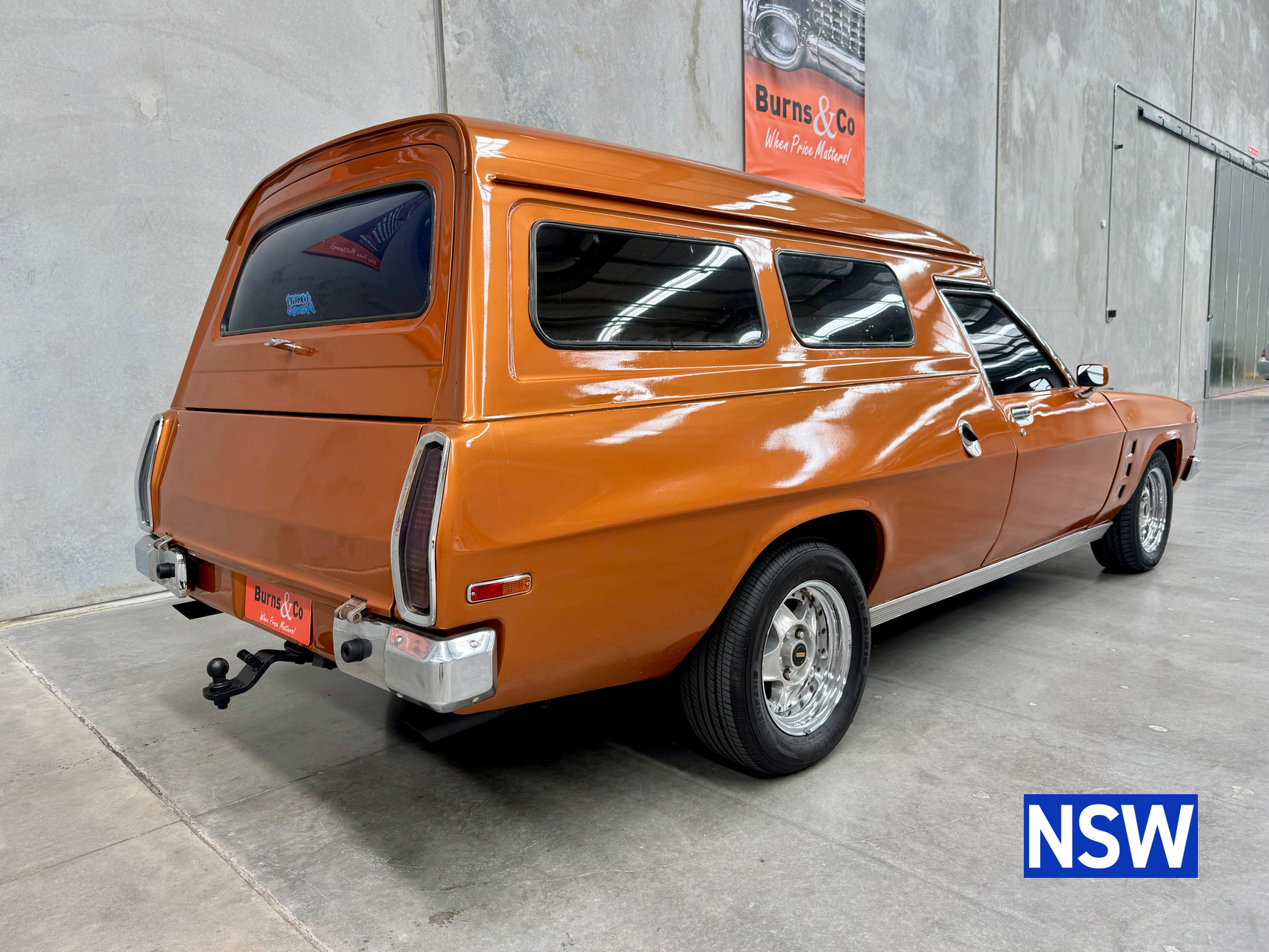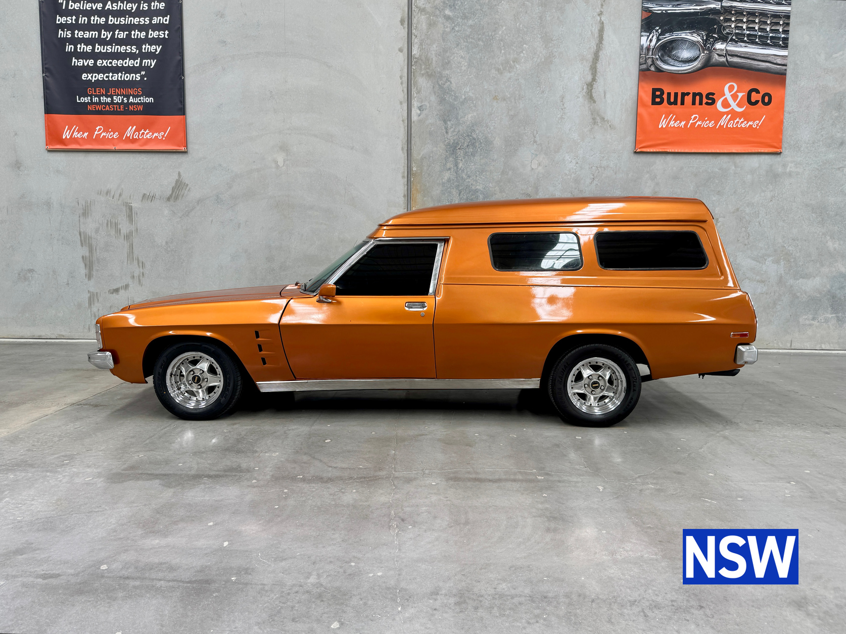 11/1975 HJ panel van, fitted with GTS dash, T Bar auto coupled to a 5.0 Litre 308 which has been stroked out to a 336 and balanced with Hemi rods by Lees performance of Brisbane. For ease of driving it is also equipped with power steering and a 2.78 Salisbury LSD diff. Finished in the striking colour of tiger mica. Underneath, there are a few areas of corrosion (see photos).