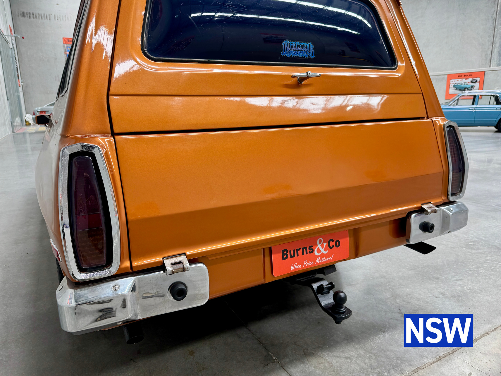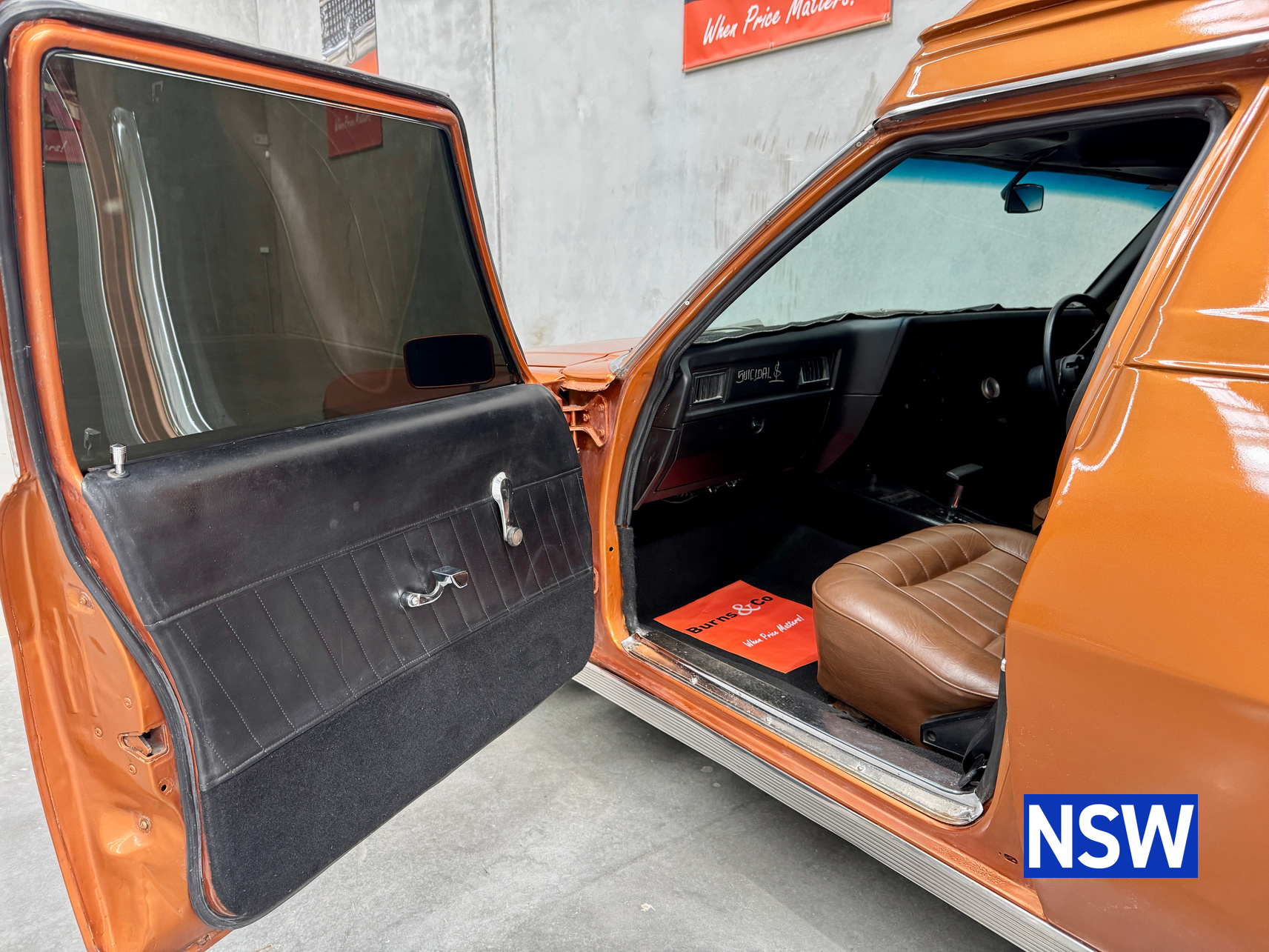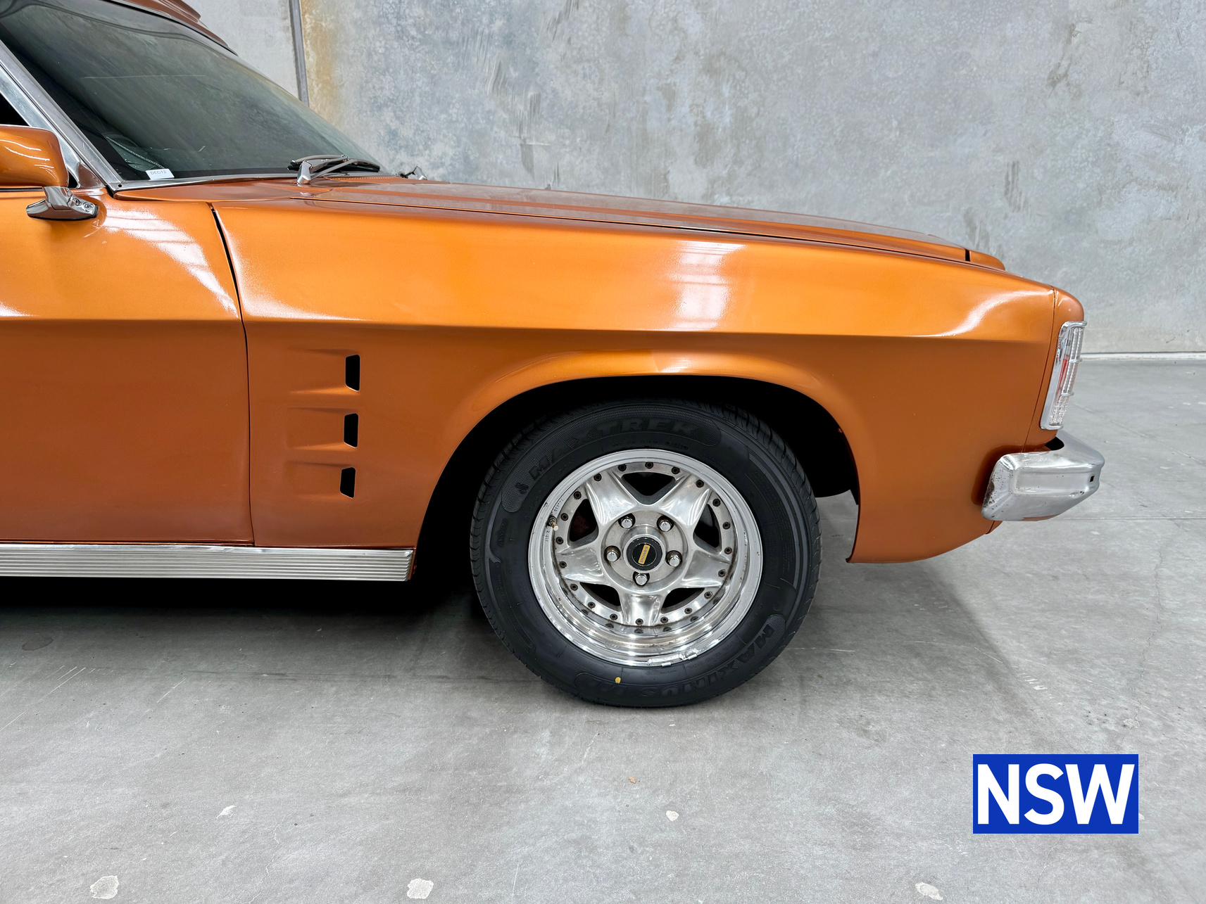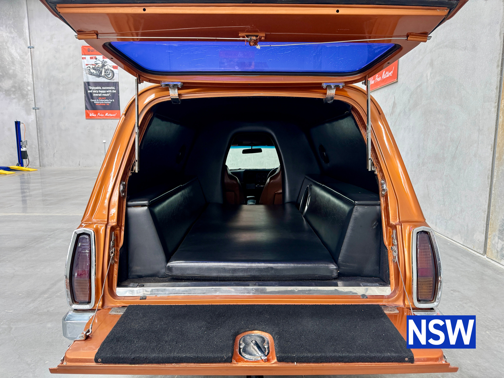 11/1975 HJ panel van, fitted with GTS dash, T Bar auto coupled to a 5.0 Litre 308 which has been stroked out to a 336 and balanced with Hemi rods by Lees performance of Brisbane. For ease of driving it is also equipped with power steering and a 2.78 Salisbury LSD diff. Finished in the striking colour of tiger mica. Underneath, there are a few areas of corrosion (see photos).