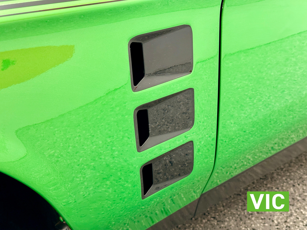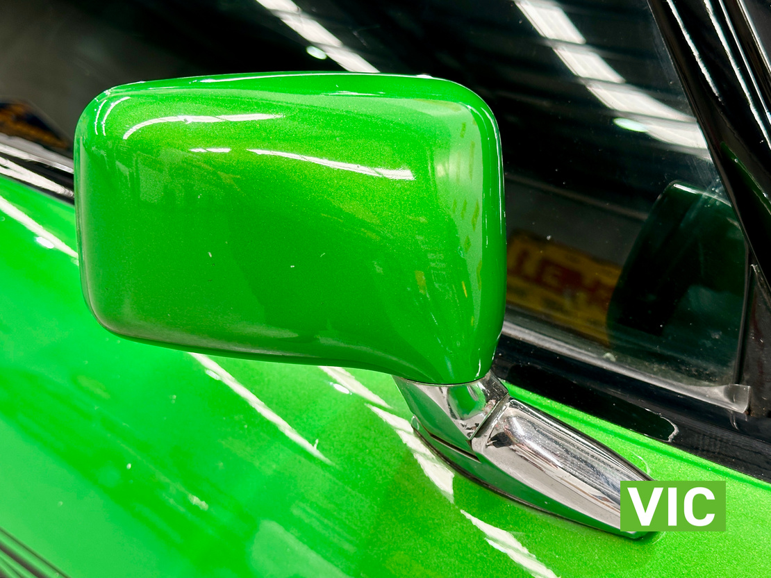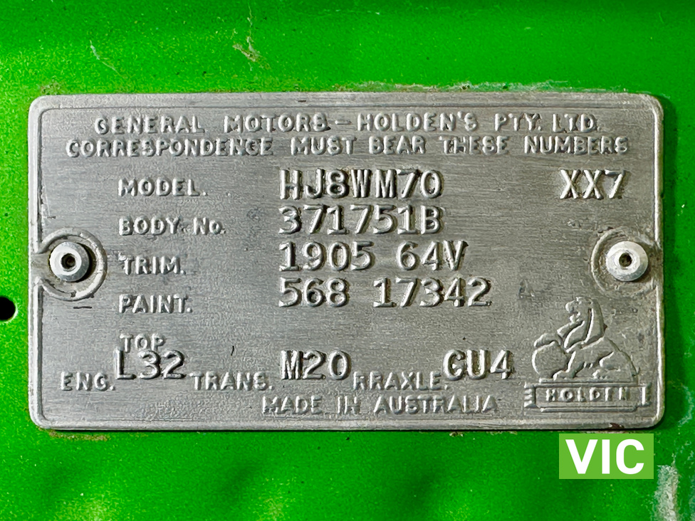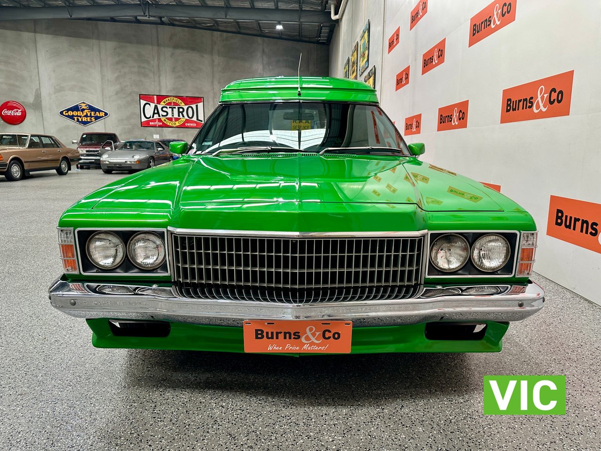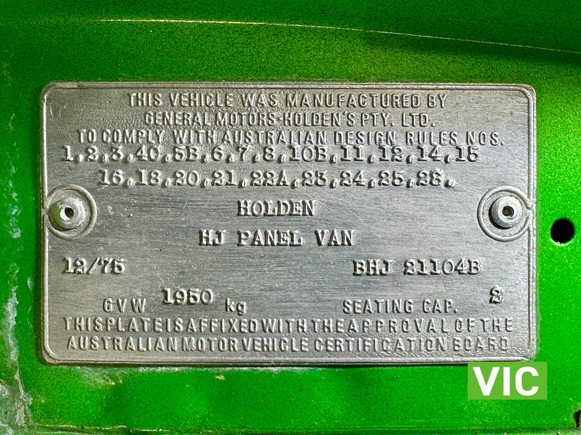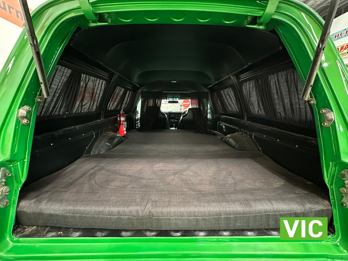 Genuine HJ Sandman Panel Van! Built at Brisbane’s Acacia Ridge plant on December 5, 1975. Sold new by Dustings of Burwood Holden VIC. This is a factory Jamaica Lime with Gazelle trim 253 4.2L V8 four-speed manual car. It is a genuine XX7 plated example confirming it is a Sandman. Fitted with a 3.08 Salisbury diff, Dual-headlight front end and Sandman GTS wheels (widened rear). The body has been fully refinished in a vibrant metallic green, offering a modern interpretation of its original colour scheme.