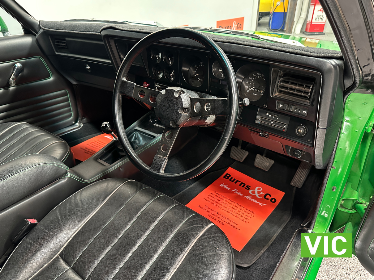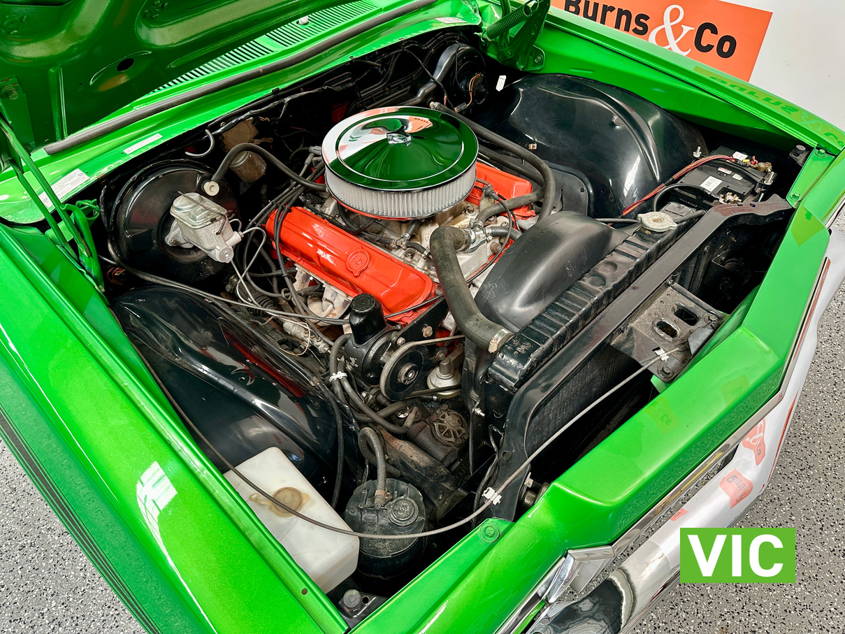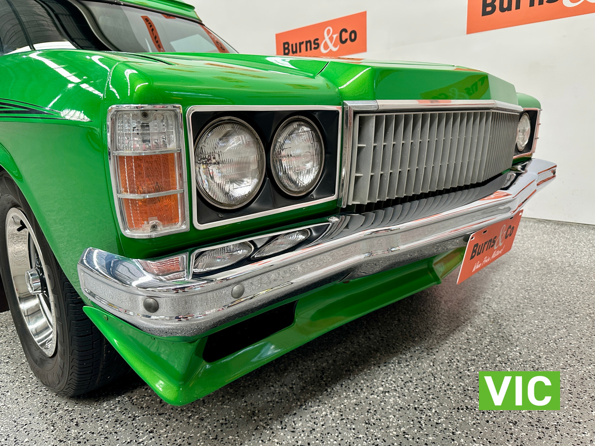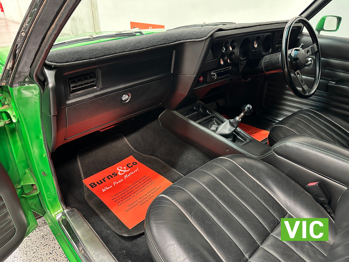 The interior has been retrimmed in black with green stitching with the front bucket seats featuring embroidered Sandman logos with Holden logos on the headrests. Also fitted with the original GTS spec dash and console while being fitted with power steering to make the drive more enjoyable. Under the bonnet sits the 253 V8 that has been upgraded with a mild camshaft, Holley carburettor, and MSD ignition system. The engine is paired with a four-speed manual transmission, now fitted with a new selector and clutch actuator. All suspension components have been replaced including new springs, shock absorbers, and an upgraded sway bar, while all the brakes have been replaced. This is a quality build that is sure to impress.