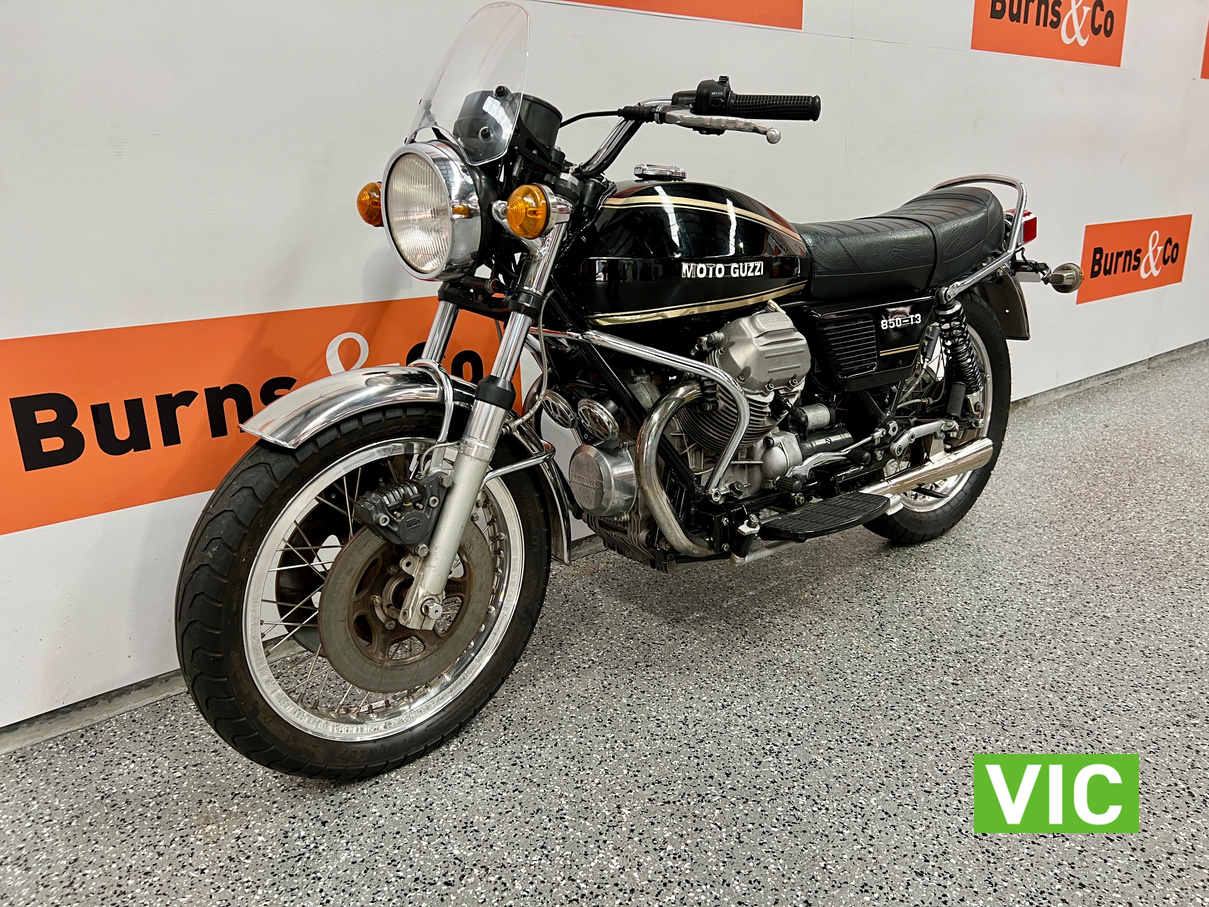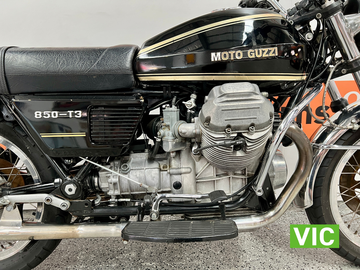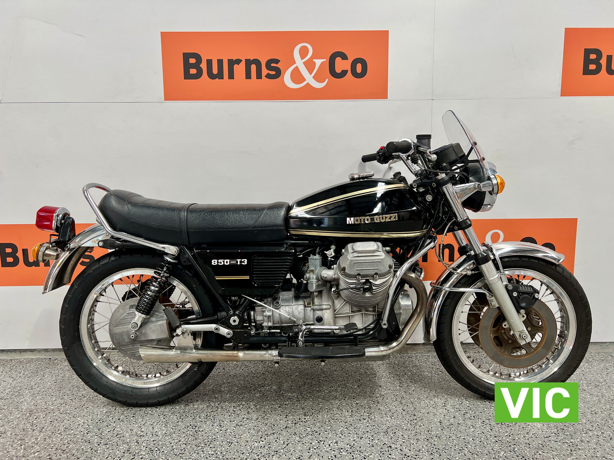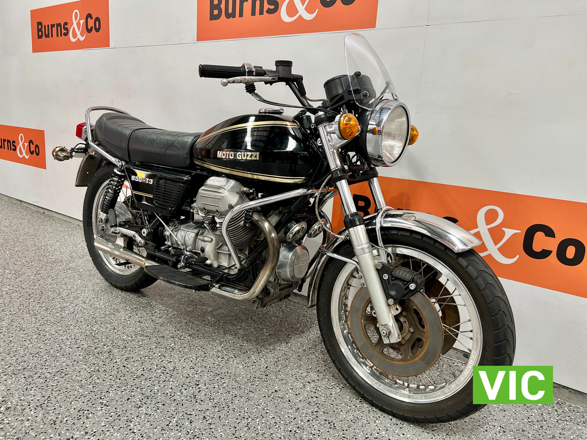 The new Moto Guzzi 850T caused quite a stir in some quarters when it turned up unheralded and unannounced at Melbourne’s Exhibition Building early in September 1975. It was flown from Italy just in time for the Second International Motorcycle Show, and just in time to send ripples scudding over the calm surface of the otherwise almost stagnant motorcycle scene.
