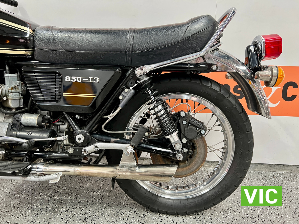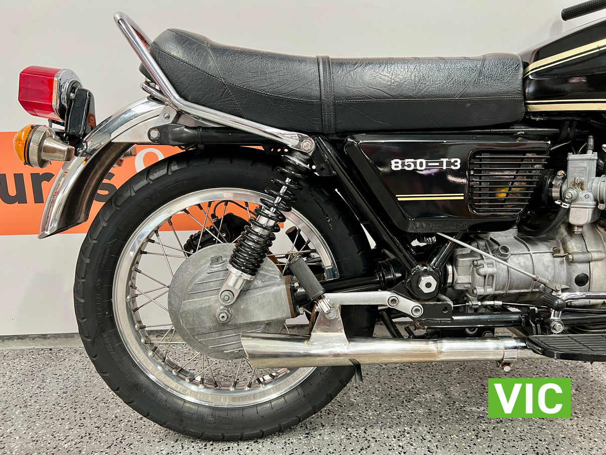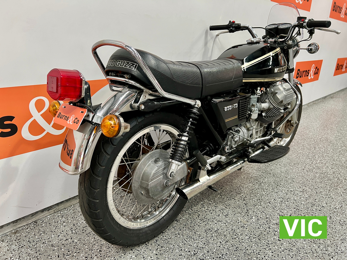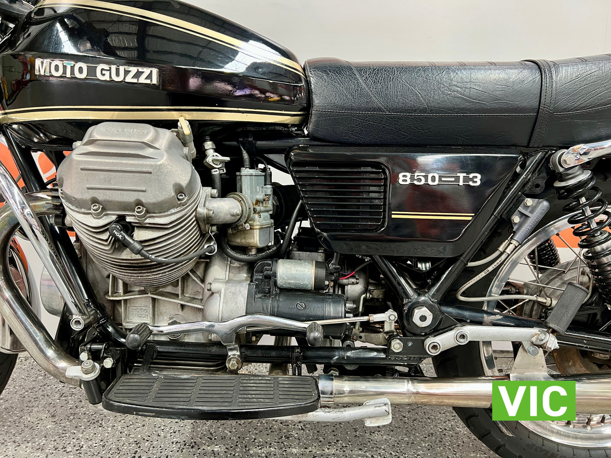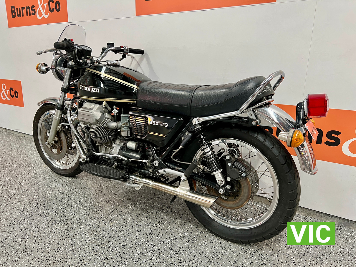 The new Moto Guzzi 850T caused quite a stir in some quarters when it turned up unheralded and unannounced at Melbourne’s Exhibition Building early in September 1975. It was flown from Italy just in time for the Second International Motorcycle Show, and just in time to send ripples scudding over the calm surface of the otherwise almost stagnant motorcycle scene.
