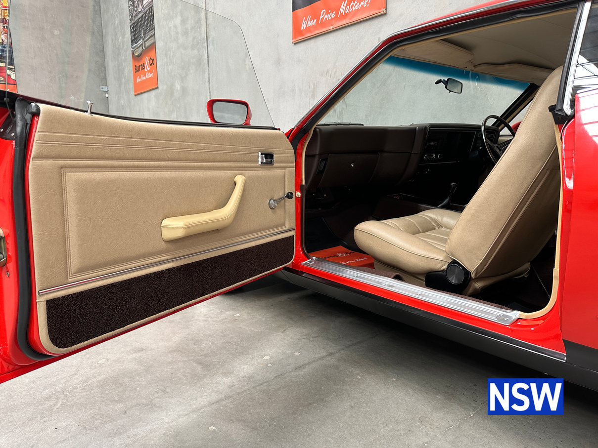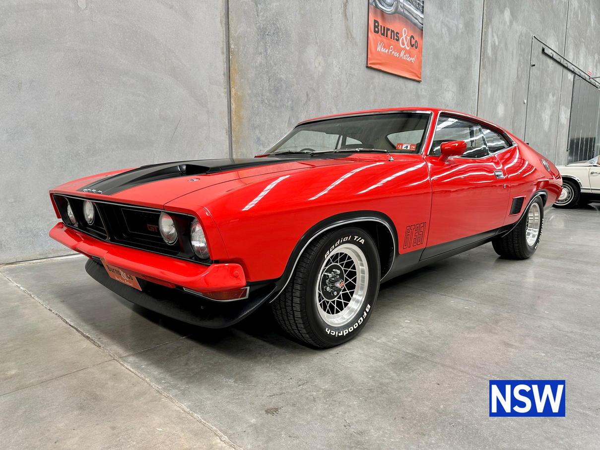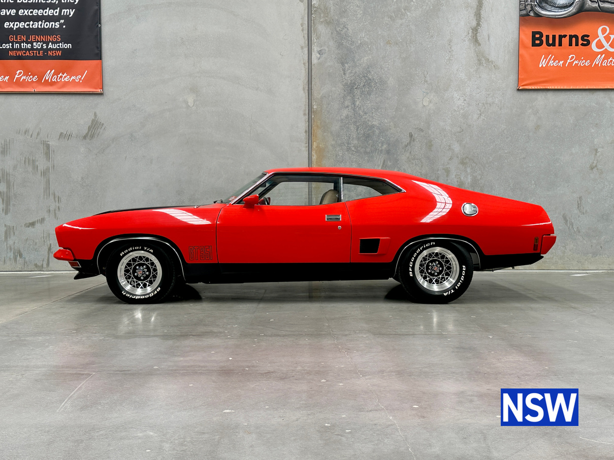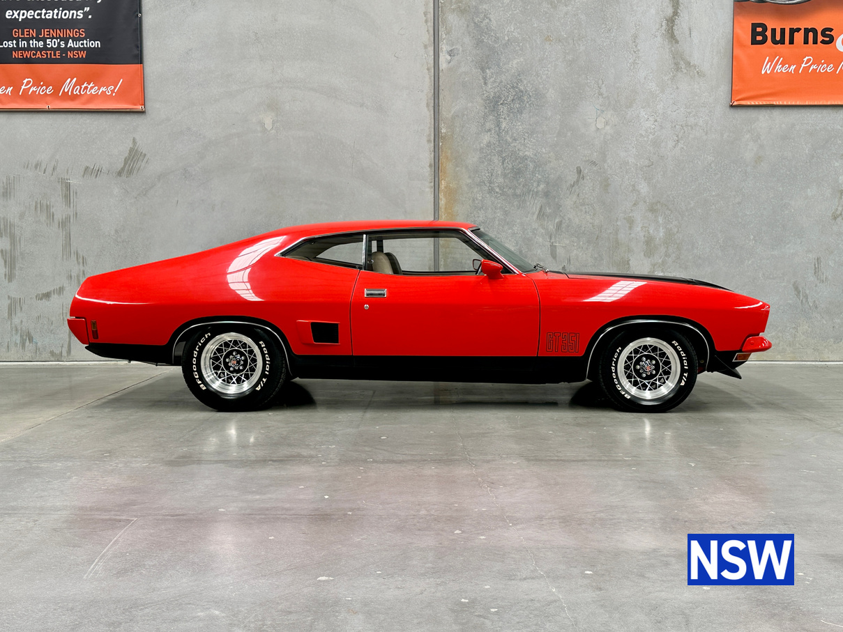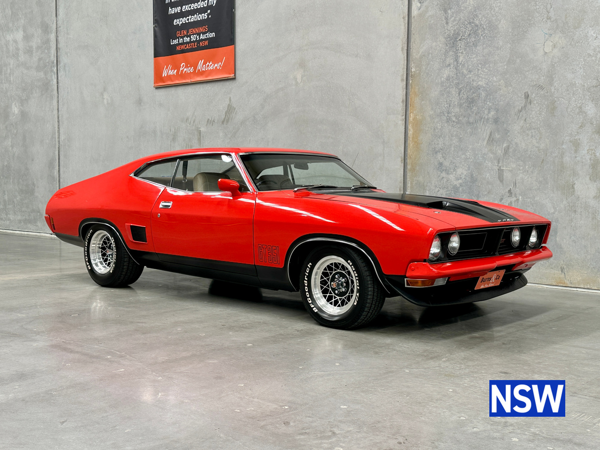 If our last Burns and Co Classic and Collectable car auction was anything to go by, Ford XB GT coupes are more popular than ever! This one is nothing short of immaculate, factory 4/1976 351 4 speed manual, red pepper with Chamois interior. Complete with ACCHS report, it confirms that it was sold new by Carey Ford of Chinchilla Queensland. Original owner is known and has advised the vendor that he owned the car for 4 years before trading it back to the original dealership as they could not get a baby in the back seat easily. The vendor has 4 photographs of the car, taken by the original owner in 1976 showing the original rego plates that have been remade as personalised plates. All up, around 30 years of history is known, first 4 and last 26yrs. Personalised plates in original combination can be transferred to a Qld buyer.