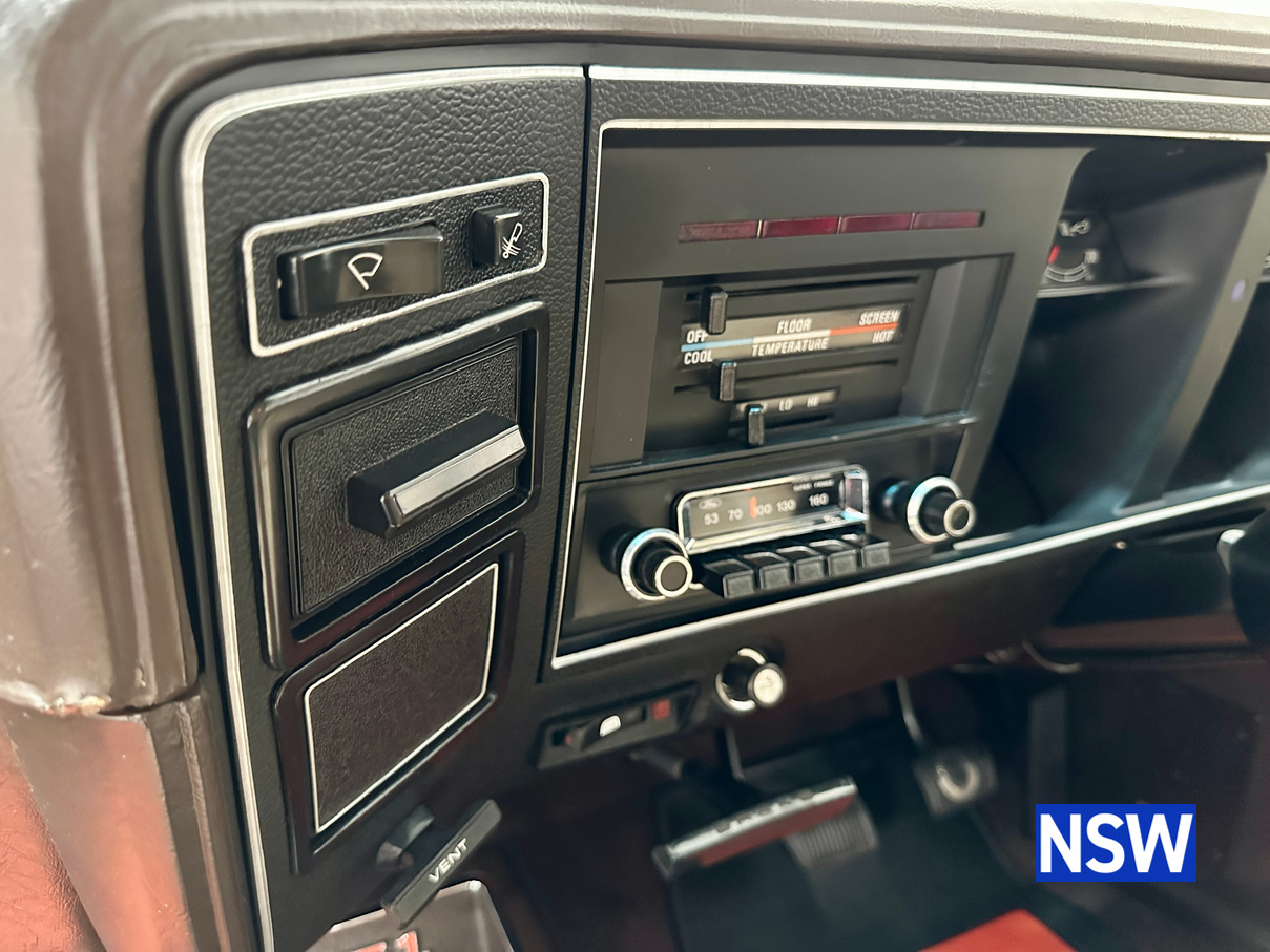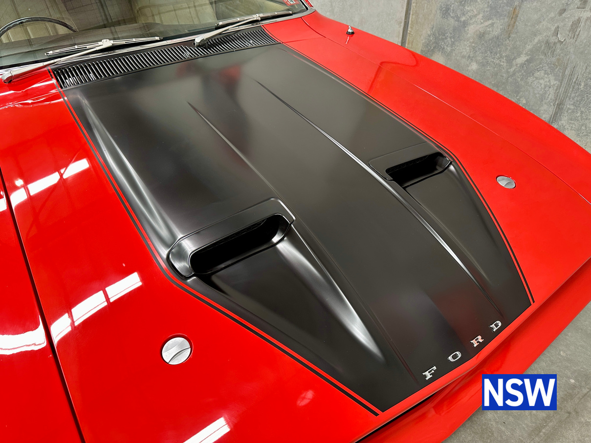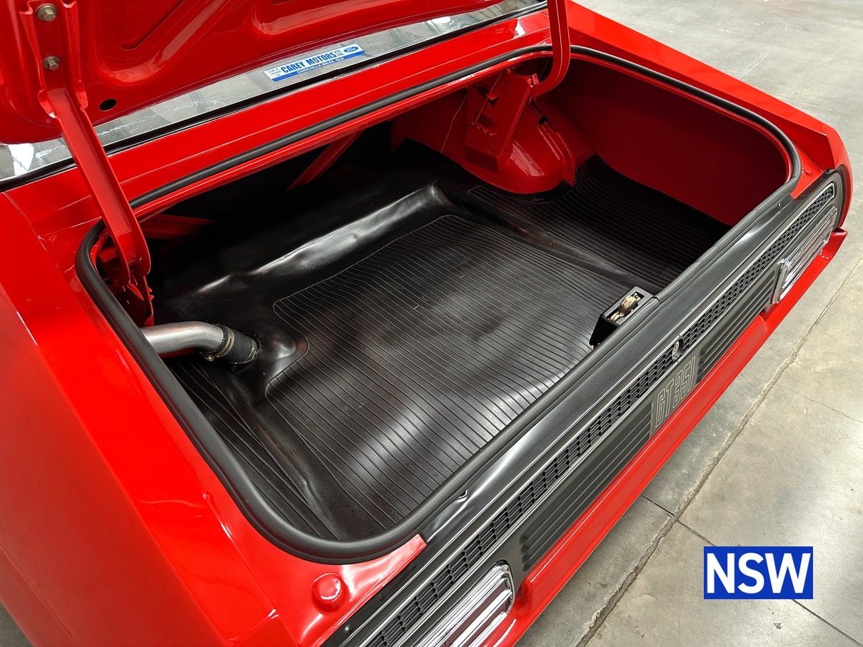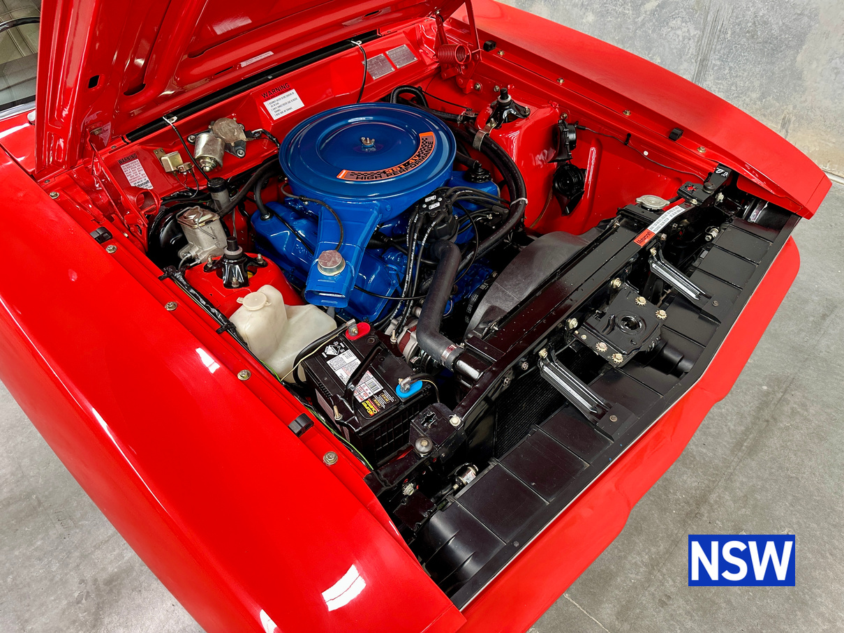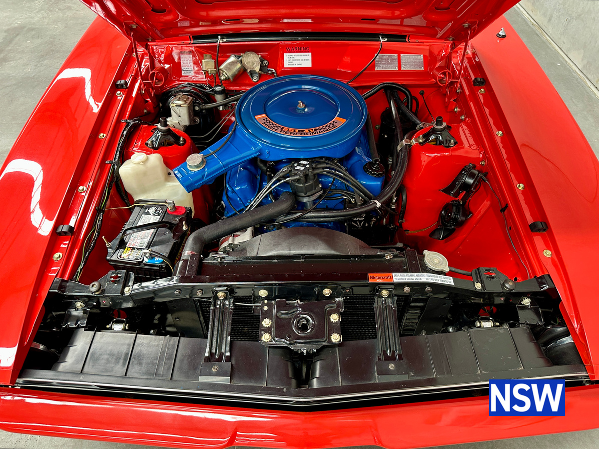 The original matching numbers engine is supplied with the car while the engine currently fitted is a Clevland XE pillow block 351 V8 with Std 351 Crank and Rods with ARP bolts, 0.020 oversized pistons, Comp cams HR290 Roller cam (230@0.050, .578″ lift), Comp cams Evolution tie bar lifters, Trend custom length Chrome moly pushrods and Manley guides. Crow stainless roller rockers, 302 Closed chamber heads, 4V valves, port matched, Unleaded valve seats and bronze guides, Edelbrock Performer dual plane manifold, 680 Quickfuel Vacuum secondary carburetor and ICE Ignition. Engine has done approximately 2000km’s.