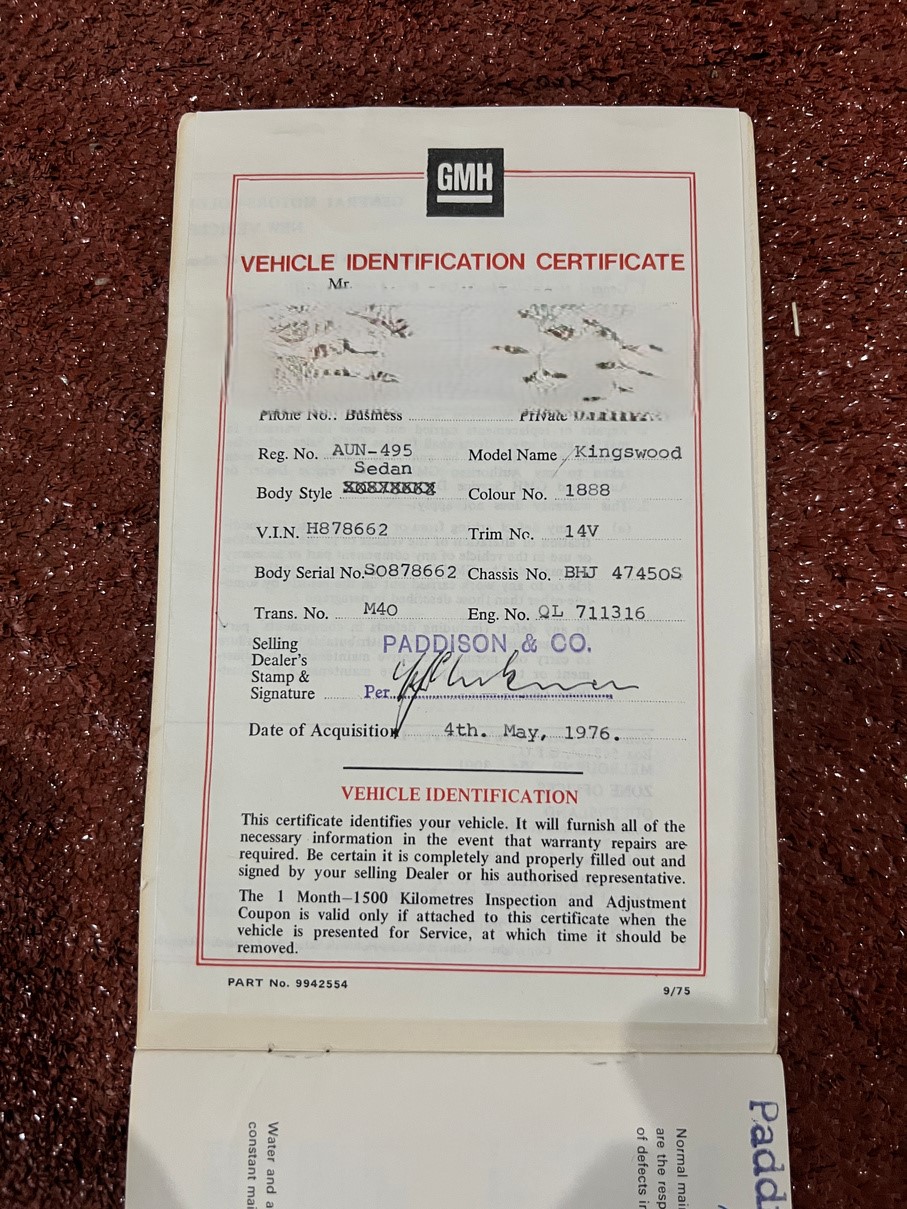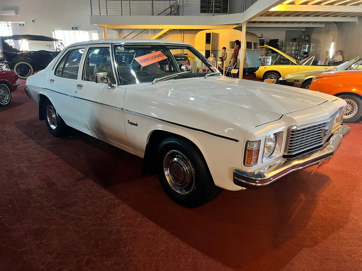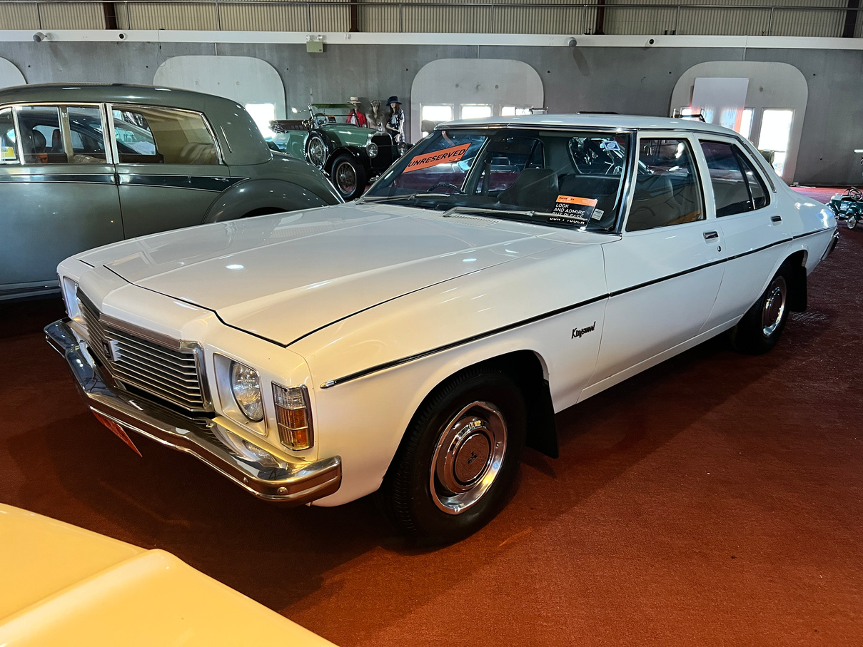 Being offered UNRESERVED. Part of the McFeeters motor museum since its opening, this 1976 Holden HJ Kingswood was sold new by Paddison Holden of Forbes on the 4/5/1976 to Mr and Mrs L Jones. The car remained under their ownership for many years, after Mr Jones passed away Mrs Jones continued driving the car and when it came time for it to be sold she approached the McFeeters, it was sold to the museum and has been on display since. Complete with the original books and service & warranty guide this is a fantastic example of one of the nations most recognisable and iconic models. Very original example, no attempt to start, museum advises it was lat running approximately 10 years ago.