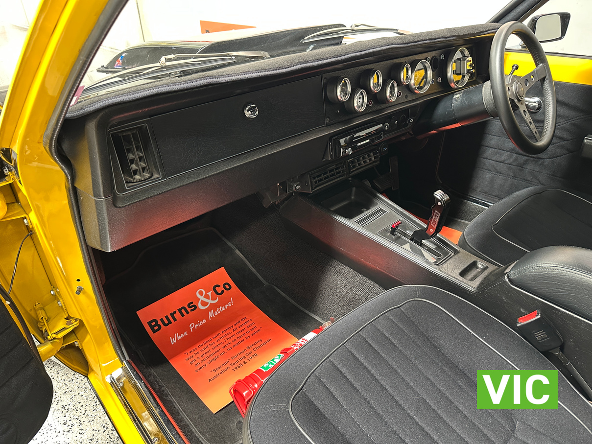 Iconic Aussie muscle car in its finest form! No expense spared build, fitted with a 355 stroker V8 paired to a fully manualised stage 3 turbo 400 fully rebuilt with a 4 grand torque converter. The 355 has been fitted with roller cams, roller rockers and has been fully tuned. The interior is spot on with the B & M shifter having been built into the original console giving a premium custom look. A full competition stereo is also fitted so you can listen to your tunes in excellent quality and volume. Brand new drop tank has also been fitted completing the true SLR 5000 look. A terrific example all round perfectly suited to the Holden enthusiast.