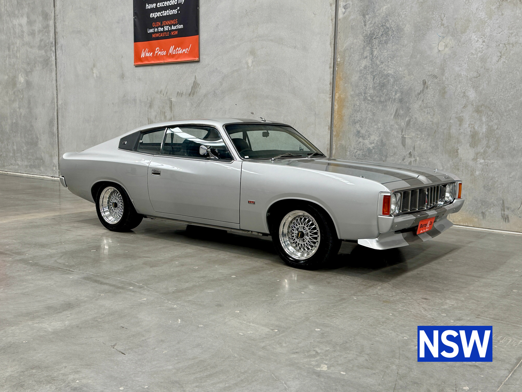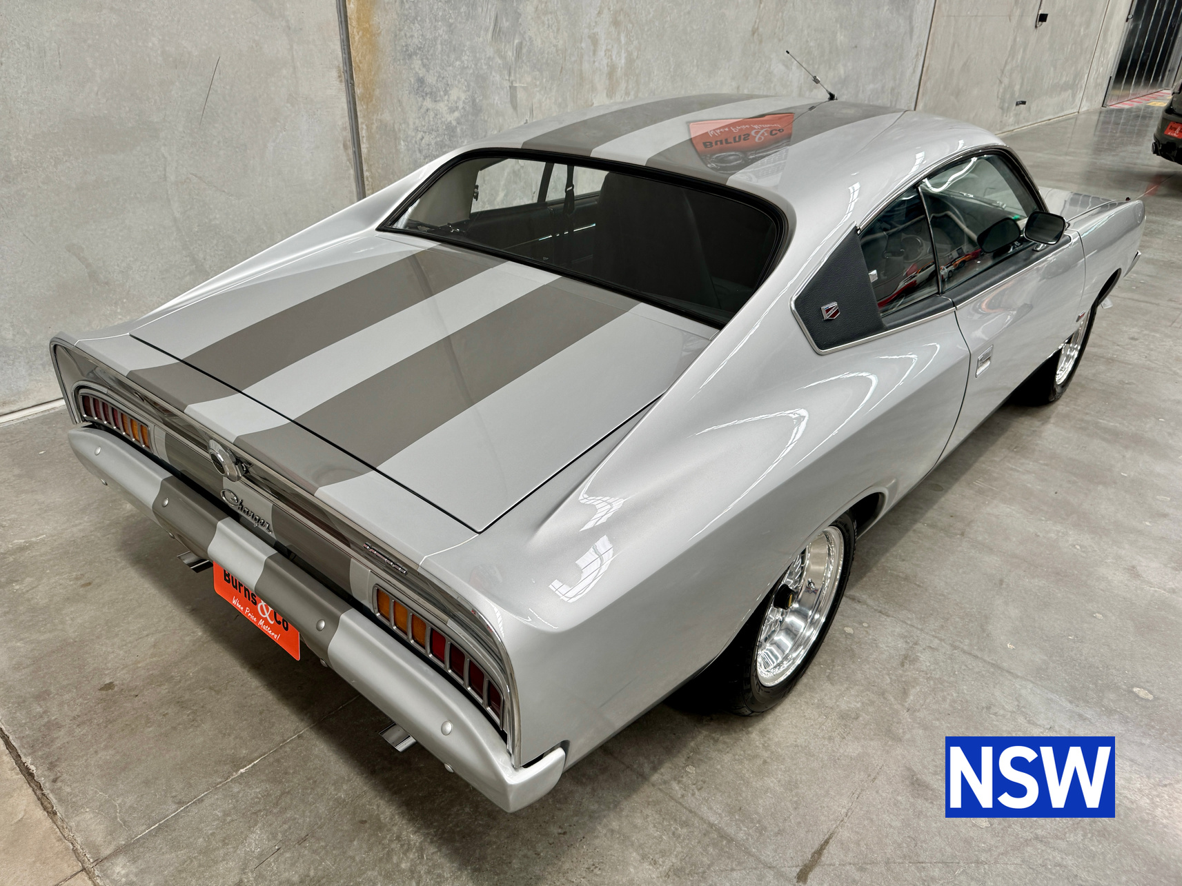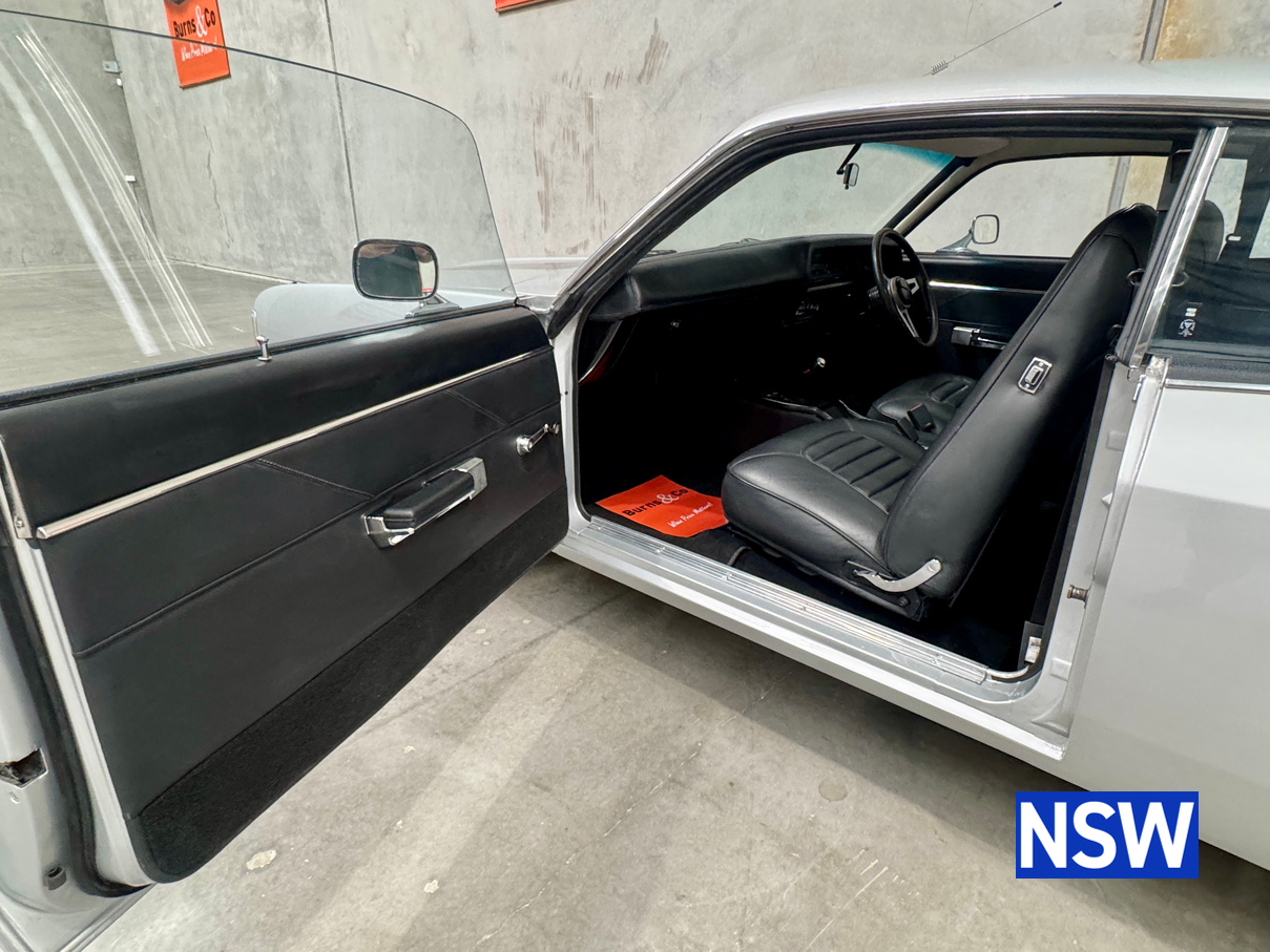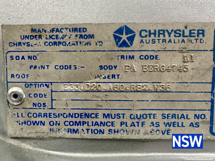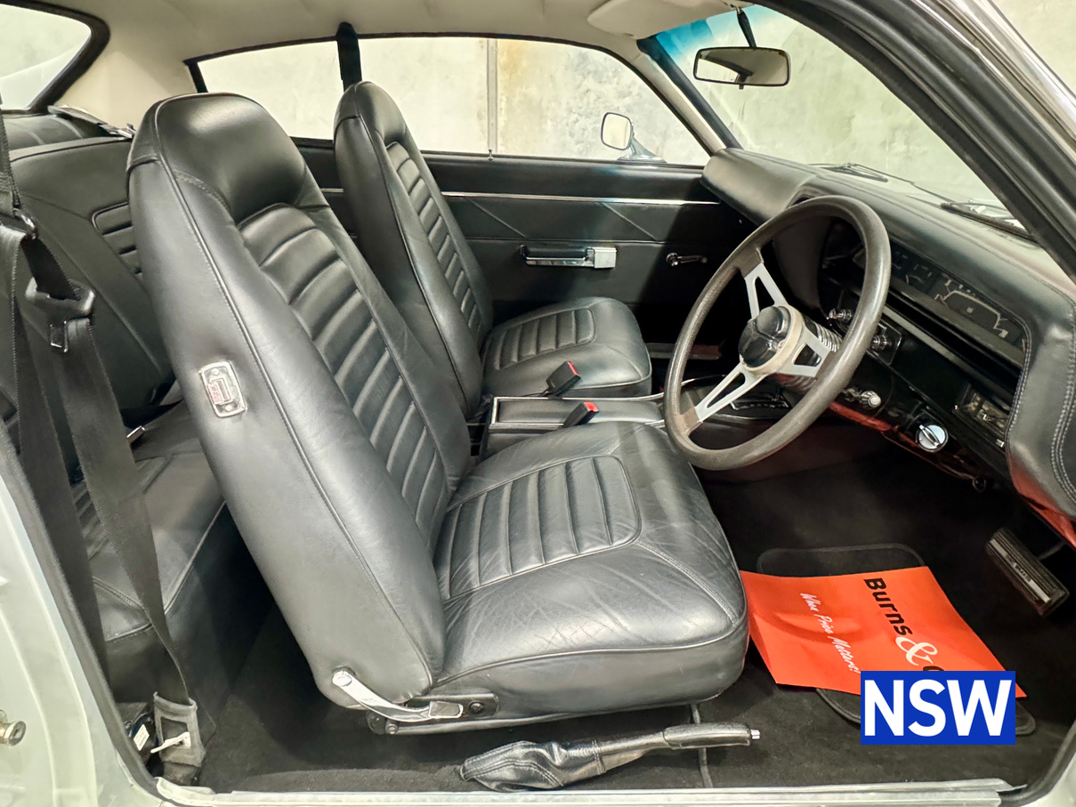Very well presented 1976 VK Charger, underwent an extensive restoration over 7 years ago by well respected Newcastle body shop Dave’s paint and Panel. No expense spared in the build, its currently running a 360 V8 fitted with a cam and is paired to a 770 transmission. On the inside, it has been fully retrimmed in period black with the off-white roof lining, comes with retro fitted A.C & power steering. This car was factory ordered with the following options, Styled Wheels, Radio, 265 Engine with 2 BBL-Carburetor, 4 Speed Manual Transmission with Floor Gearshift, A/C and Sports Stripe.