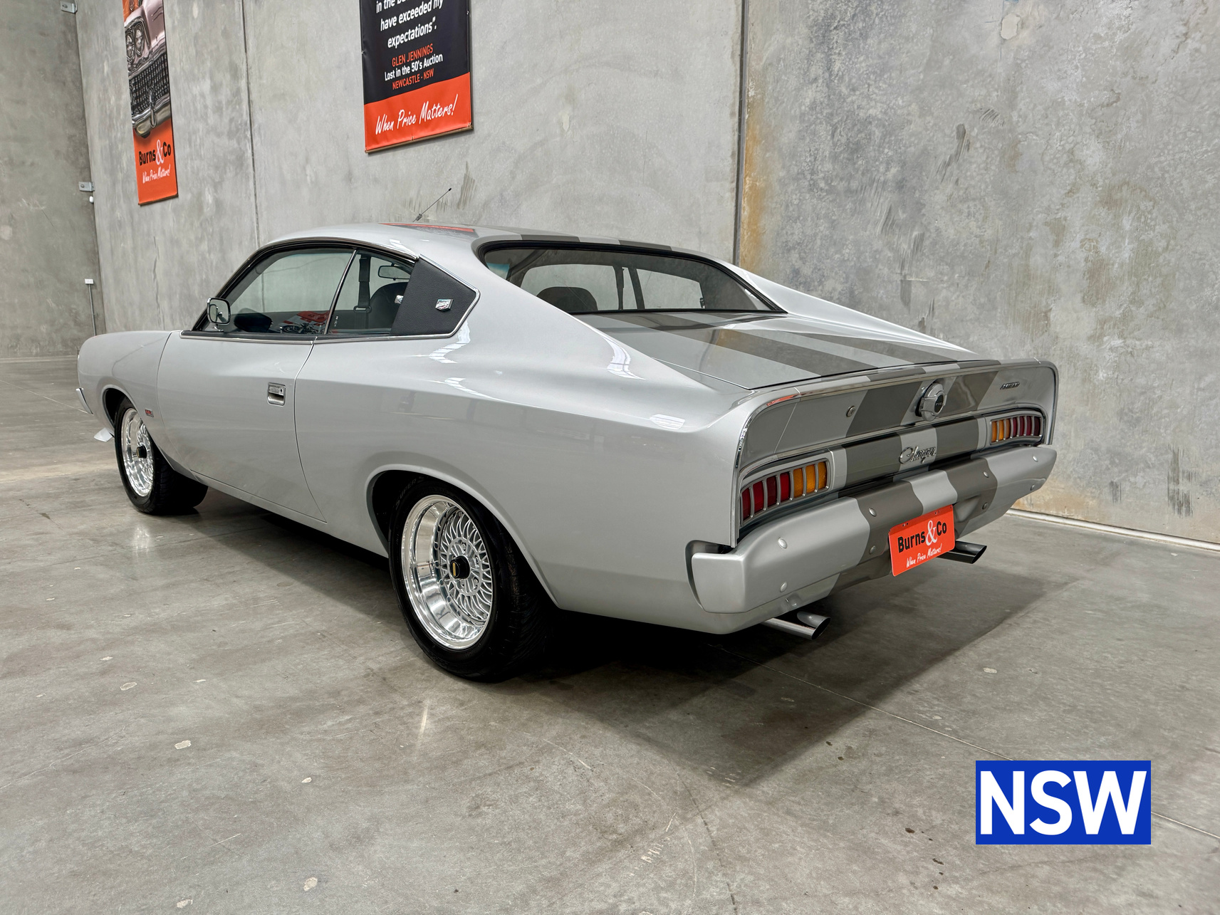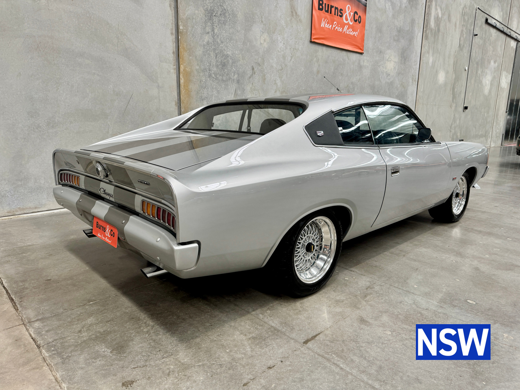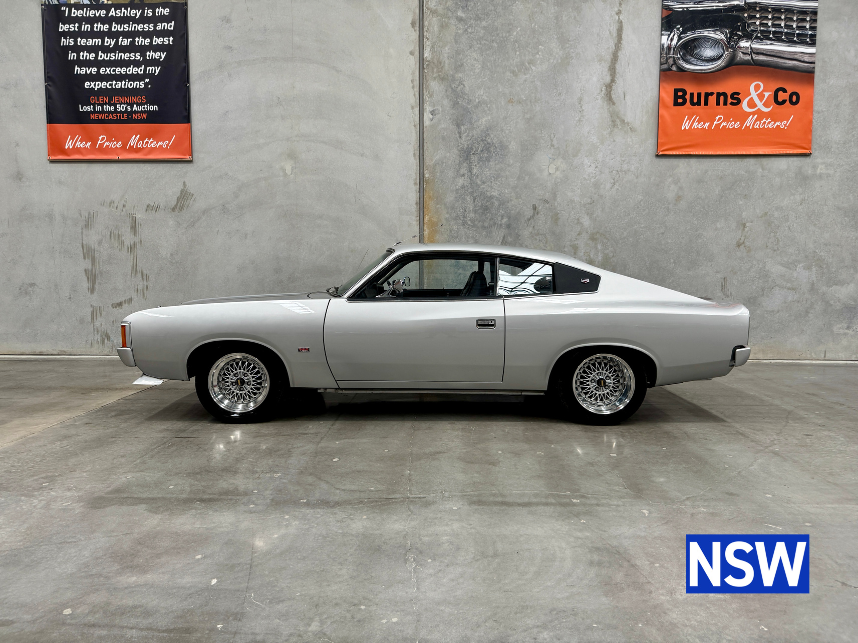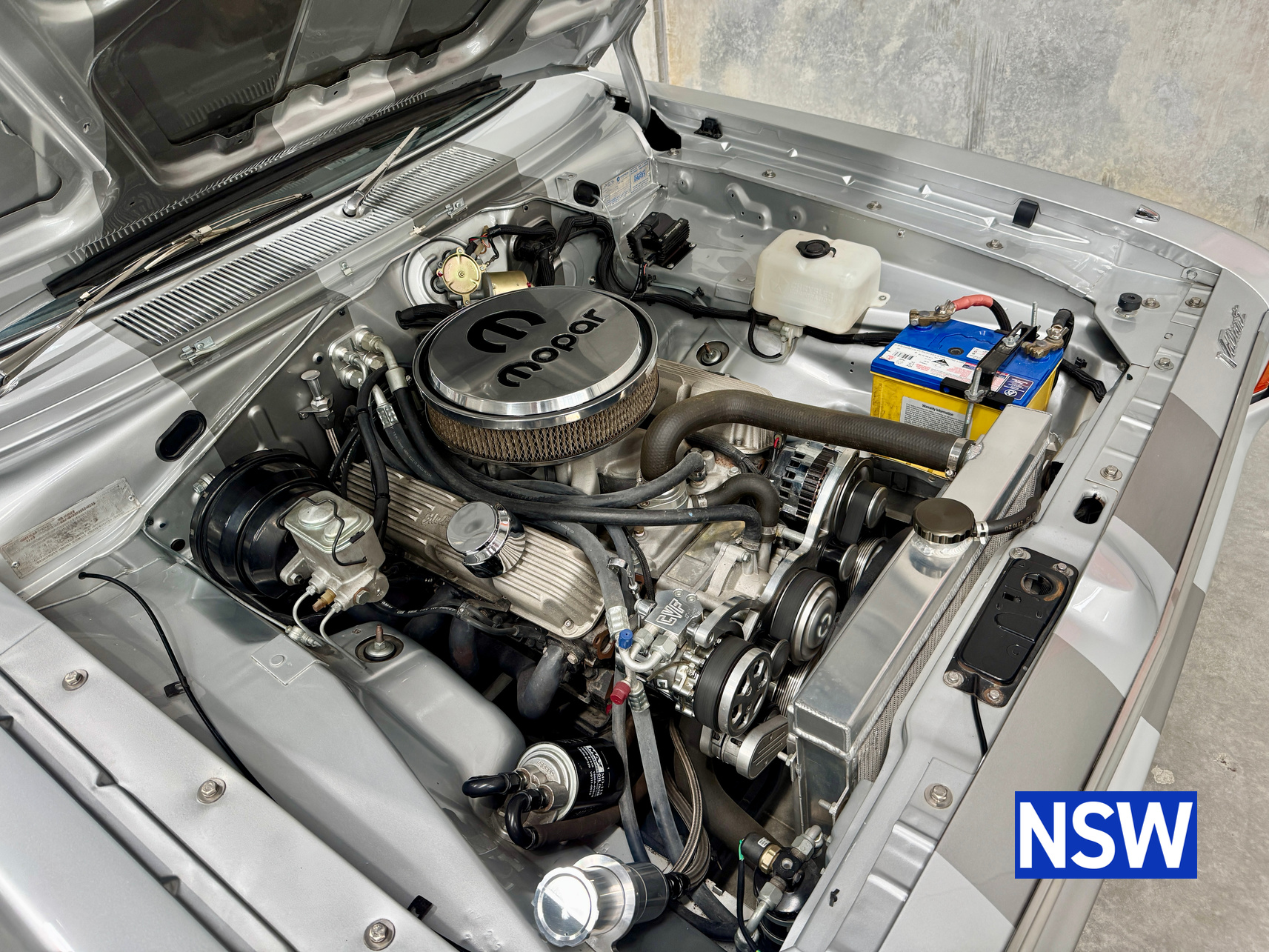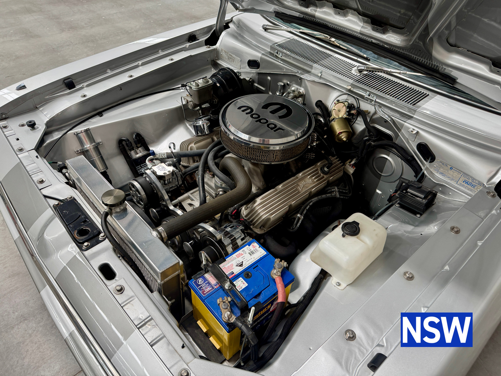 Very well presented 1976 VK Charger, underwent an extensive restoration over 7 years ago by well respected Newcastle body shop Dave’s paint and Panel. No expense spared in the build, its currently running a 360 V8 fitted with a cam and is paired to a 770 transmission. On the inside, it has been fully retrimmed in period black with the off-white roof lining, comes with retro fitted A.C & power steering. This car was factory ordered with the following options, Styled Wheels, Radio, 265 Engine with 2 BBL-Carburetor, 4 Speed Manual Transmission with Floor Gearshift, A/C and Sports Stripe.