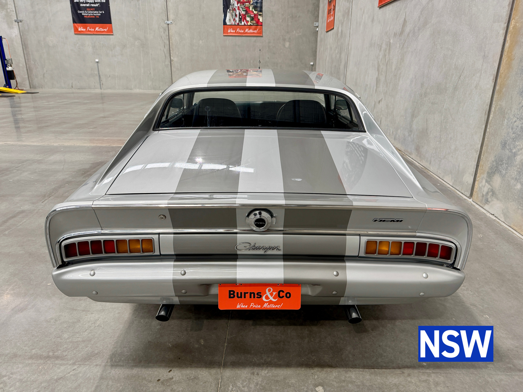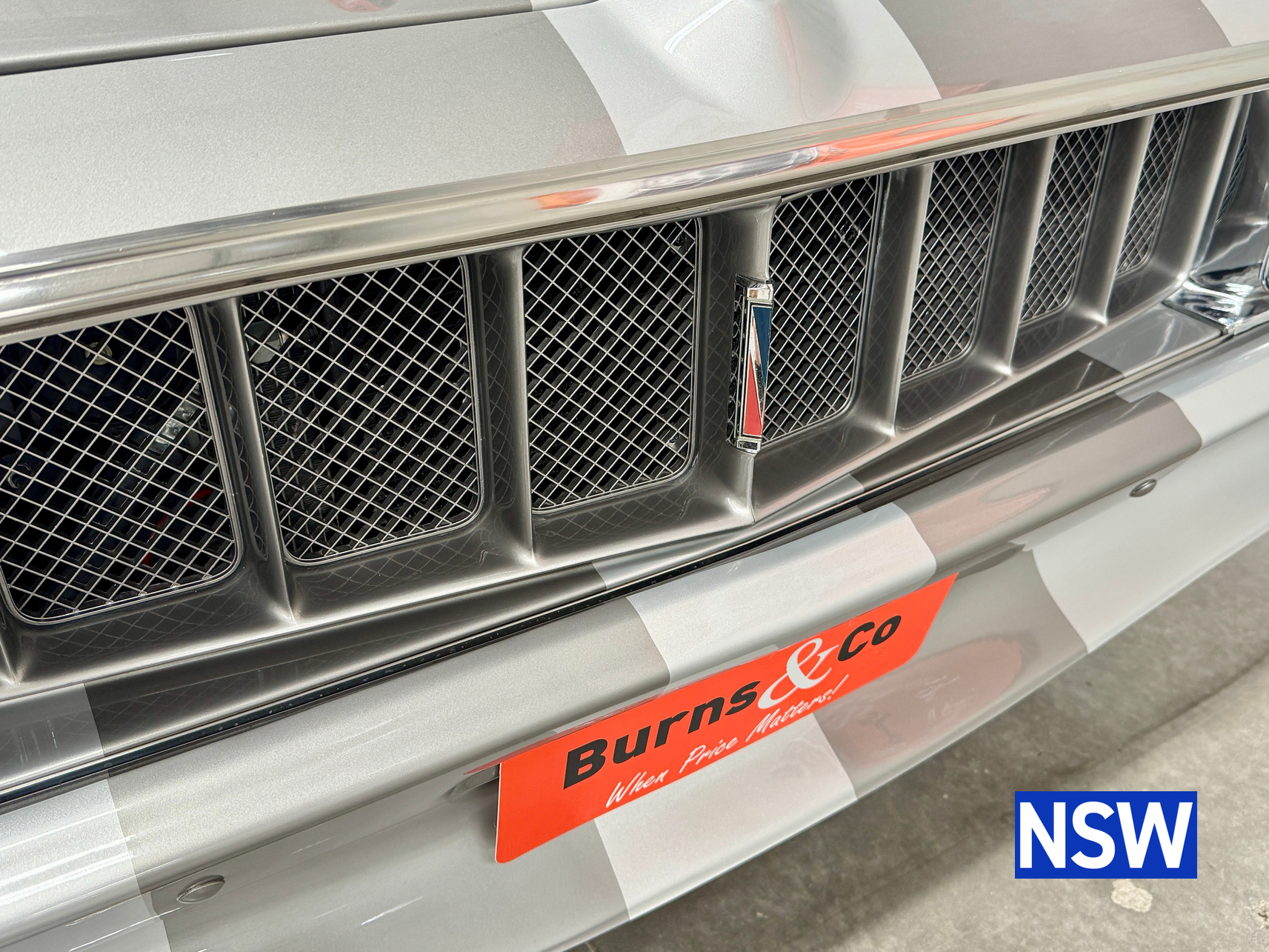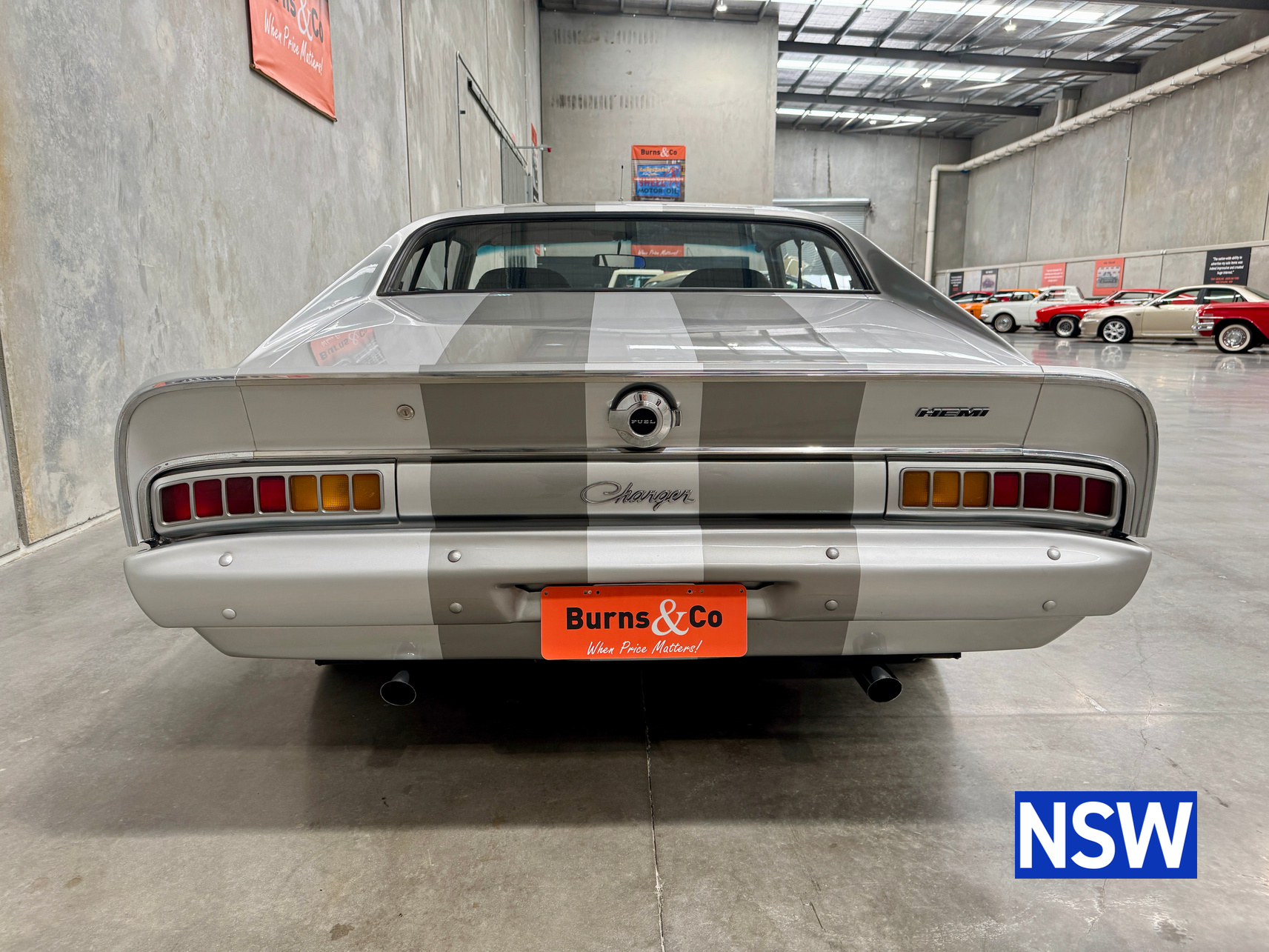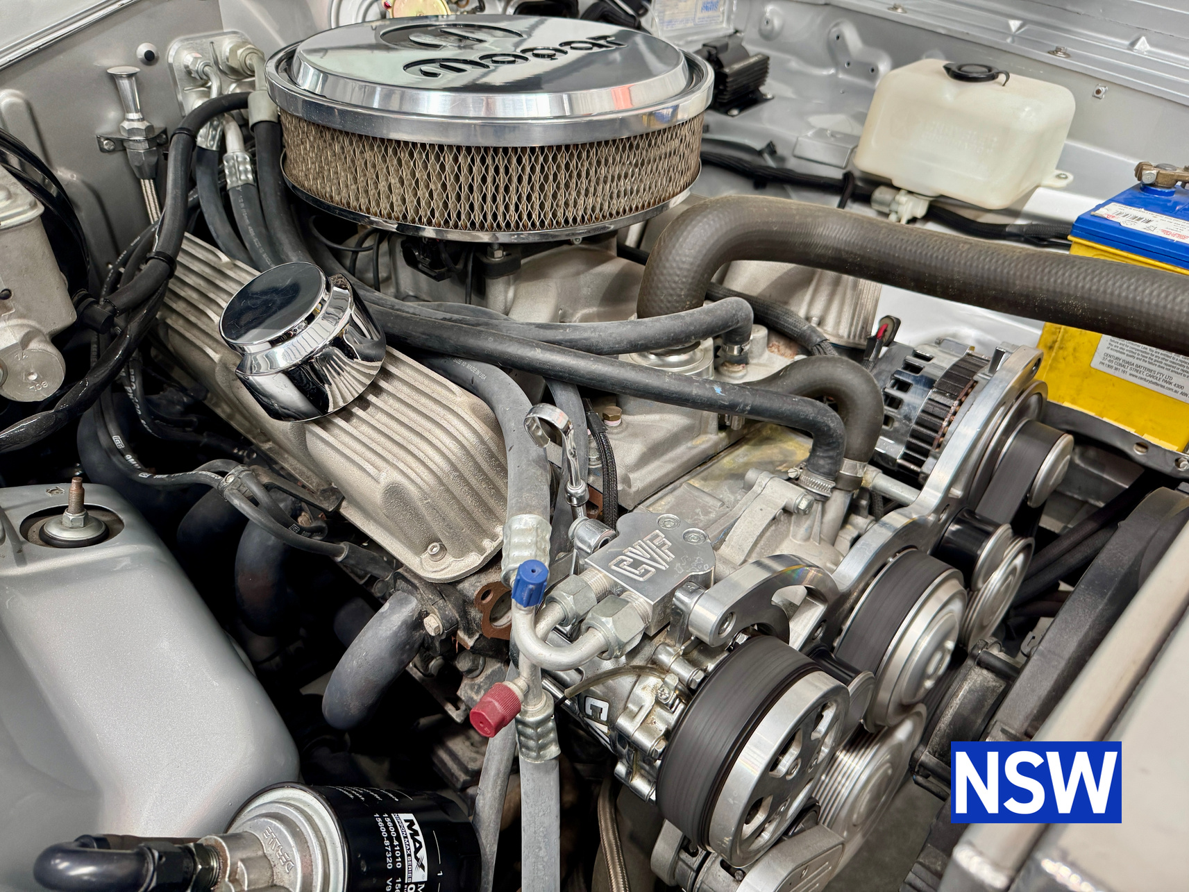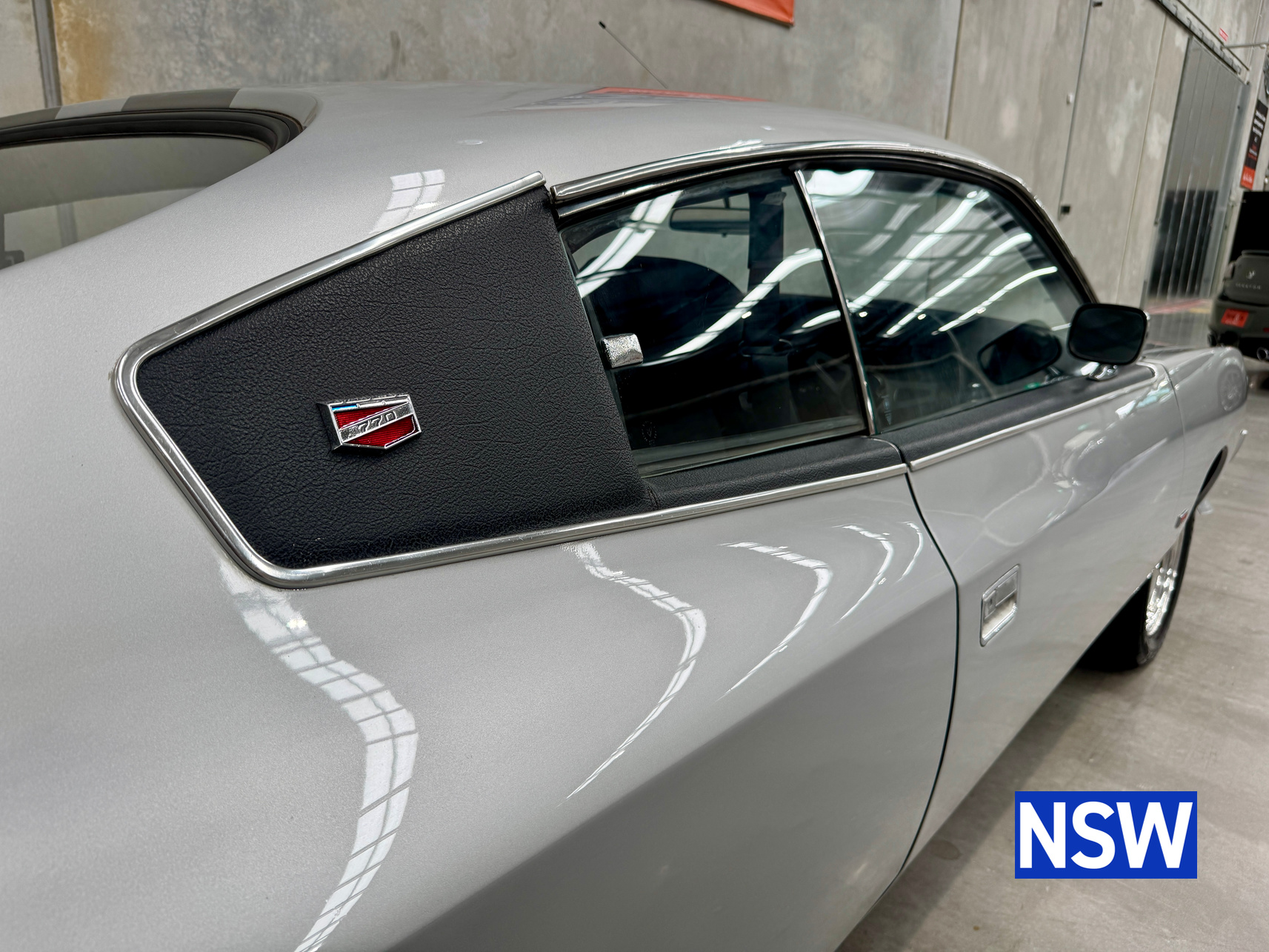 Very well presented 1976 VK Charger, underwent an extensive restoration over 7 years ago by well respected Newcastle body shop Dave’s paint and Panel. No expense spared in the build, its currently running a 360 V8 fitted with a cam and is paired to a 770 transmission. On the inside, it has been fully retrimmed in period black with the off-white roof lining, comes with retro fitted A.C & power steering. This car was factory ordered with the following options, Styled Wheels, Radio, 265 Engine with 2 BBL-Carburetor, 4 Speed Manual Transmission with Floor Gearshift, A/C and Sports Stripe.