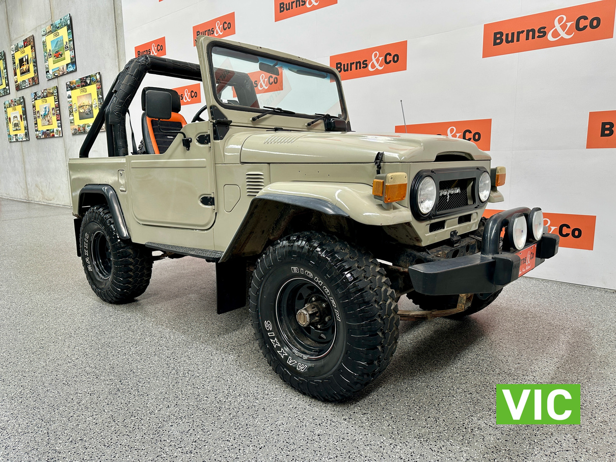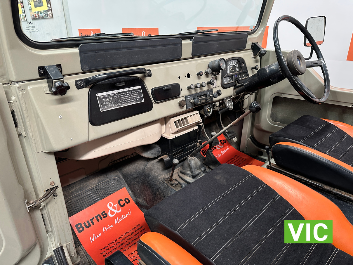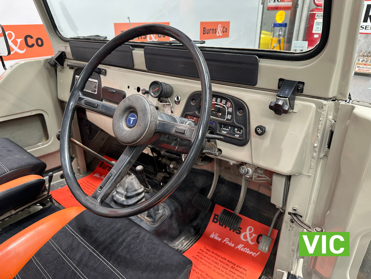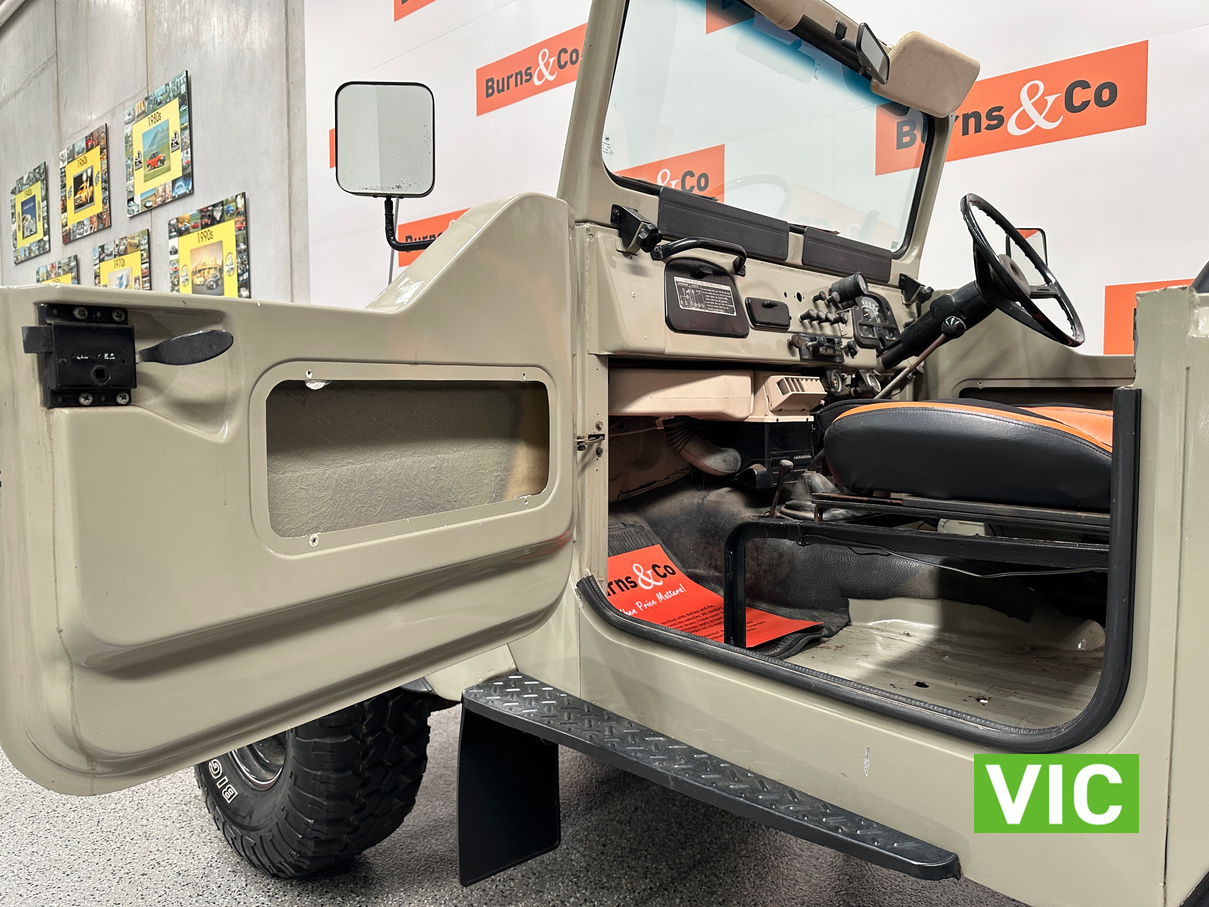 Driven into our Bayswater showroom on full Victorian registration (sold unregistered). This 1977 FJ40 Landcruiser would be an excellent club car to attend the next classic 4WD event. Registered with Vicroads as a V8 the long term vendor maintained and used the car keeping it in good condition. Fitted with recaro bucket seats for comfort while the small block Chev V8 is paired to a manual gearbox giving it plenty of get up and go.