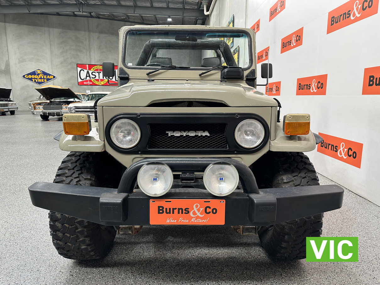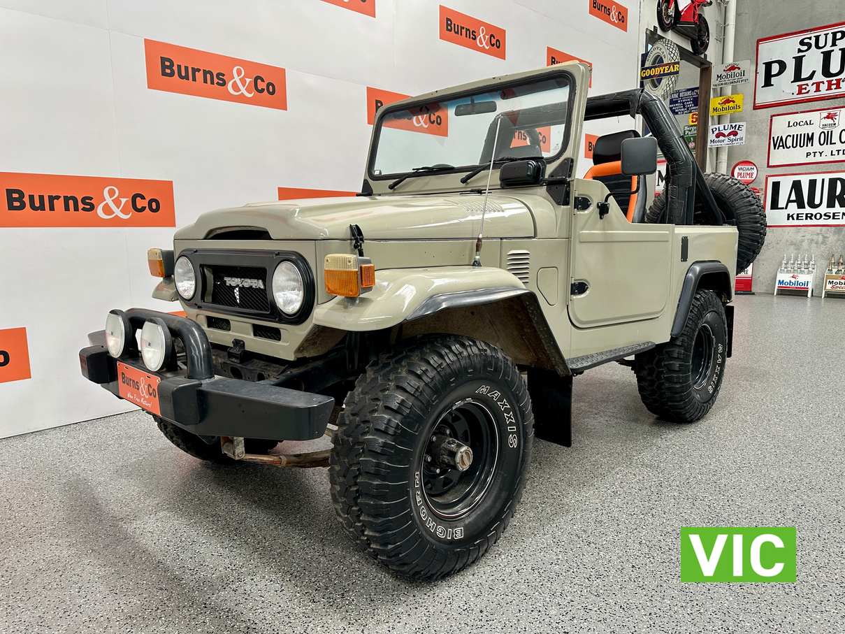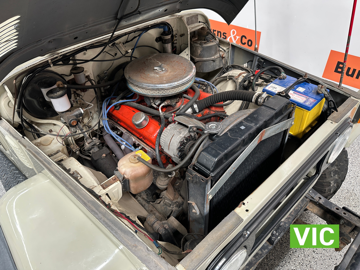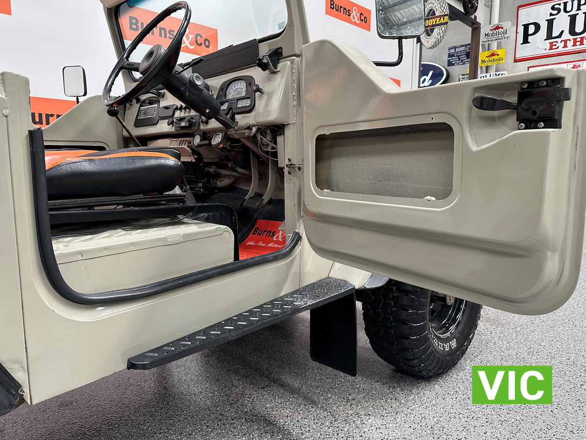 Driven into our Bayswater showroom on full Victorian registration (sold unregistered). This 1977 FJ40 Landcruiser would be an excellent club car to attend the next classic 4WD event. Registered with Vicroads as a V8 the long term vendor maintained and used the car keeping it in good condition. Fitted with recaro bucket seats for comfort while the small block Chev V8 is paired to a manual gearbox giving it plenty of get up and go.