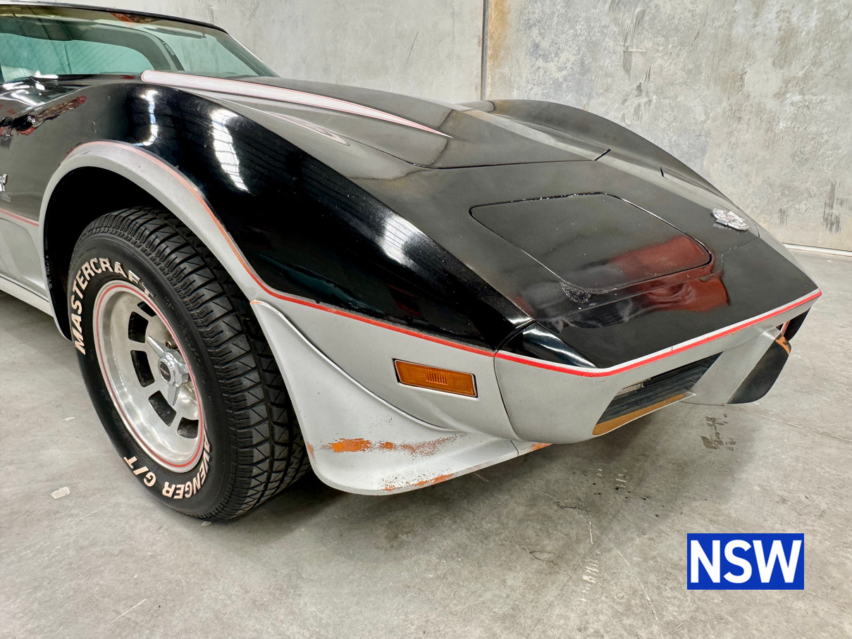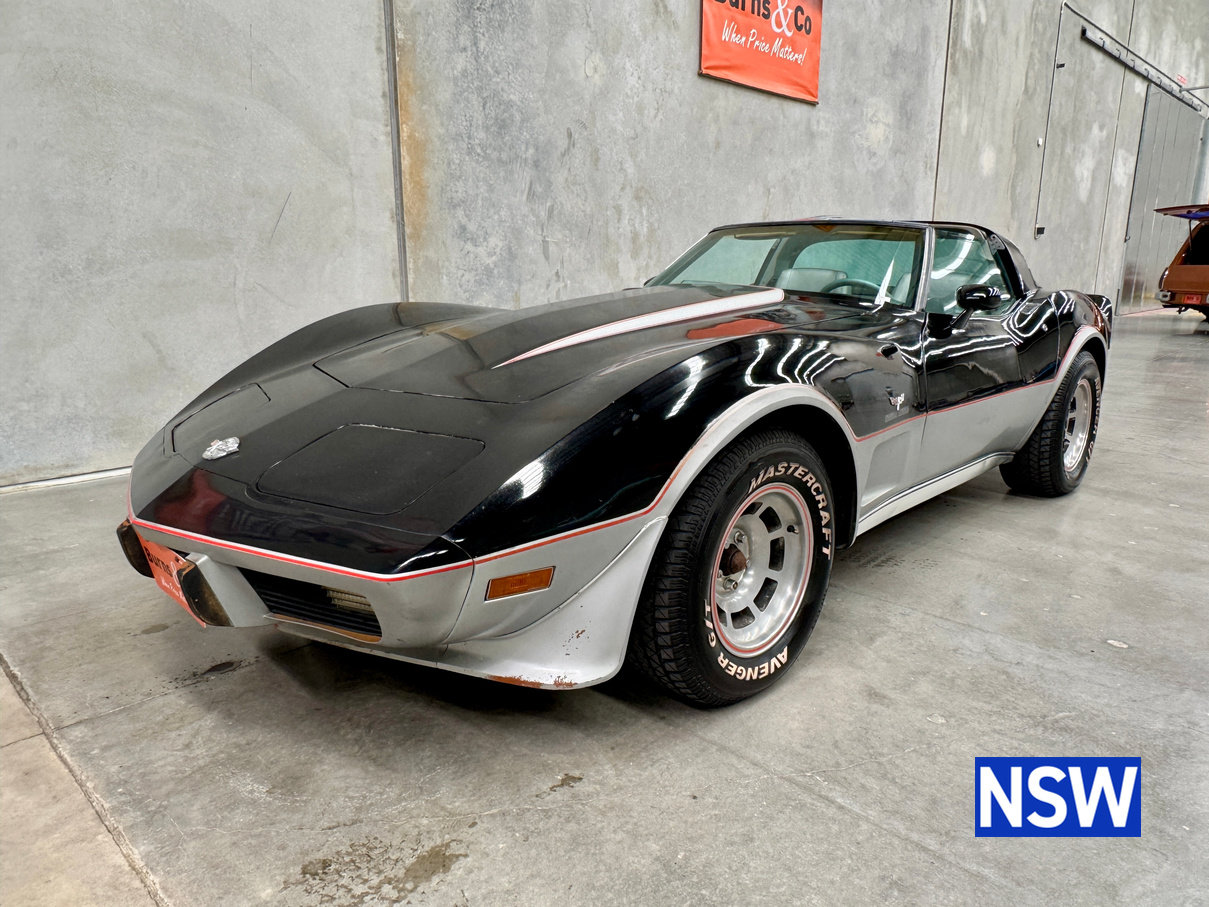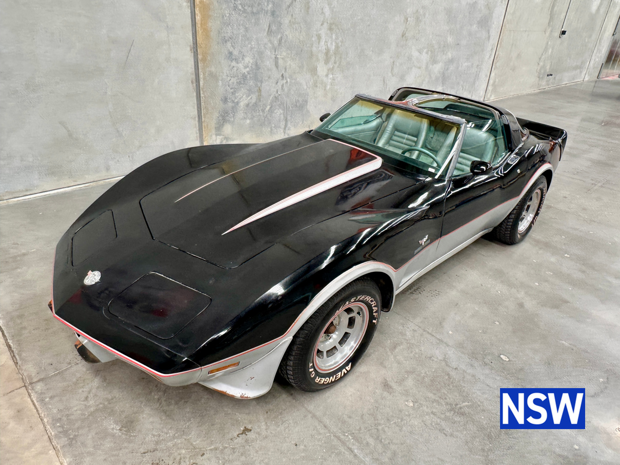 Driven into our Beresfield showroom from rural Queensland, this 1978 C3 Corvette 25th anniversary pace car edition built for as the official pace car for the Indianapolis 500 is a blank canvas ready for either a restoration or enjoy the patina and drive it as is.