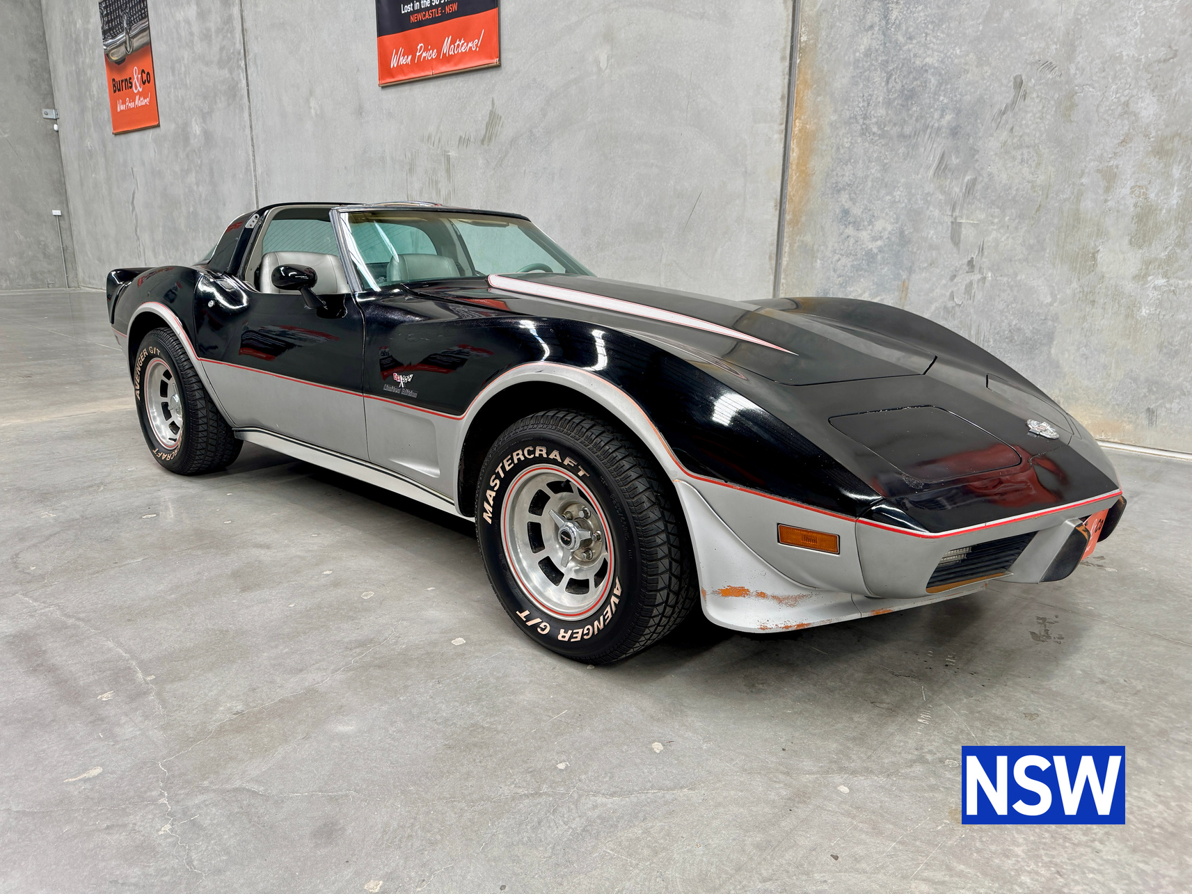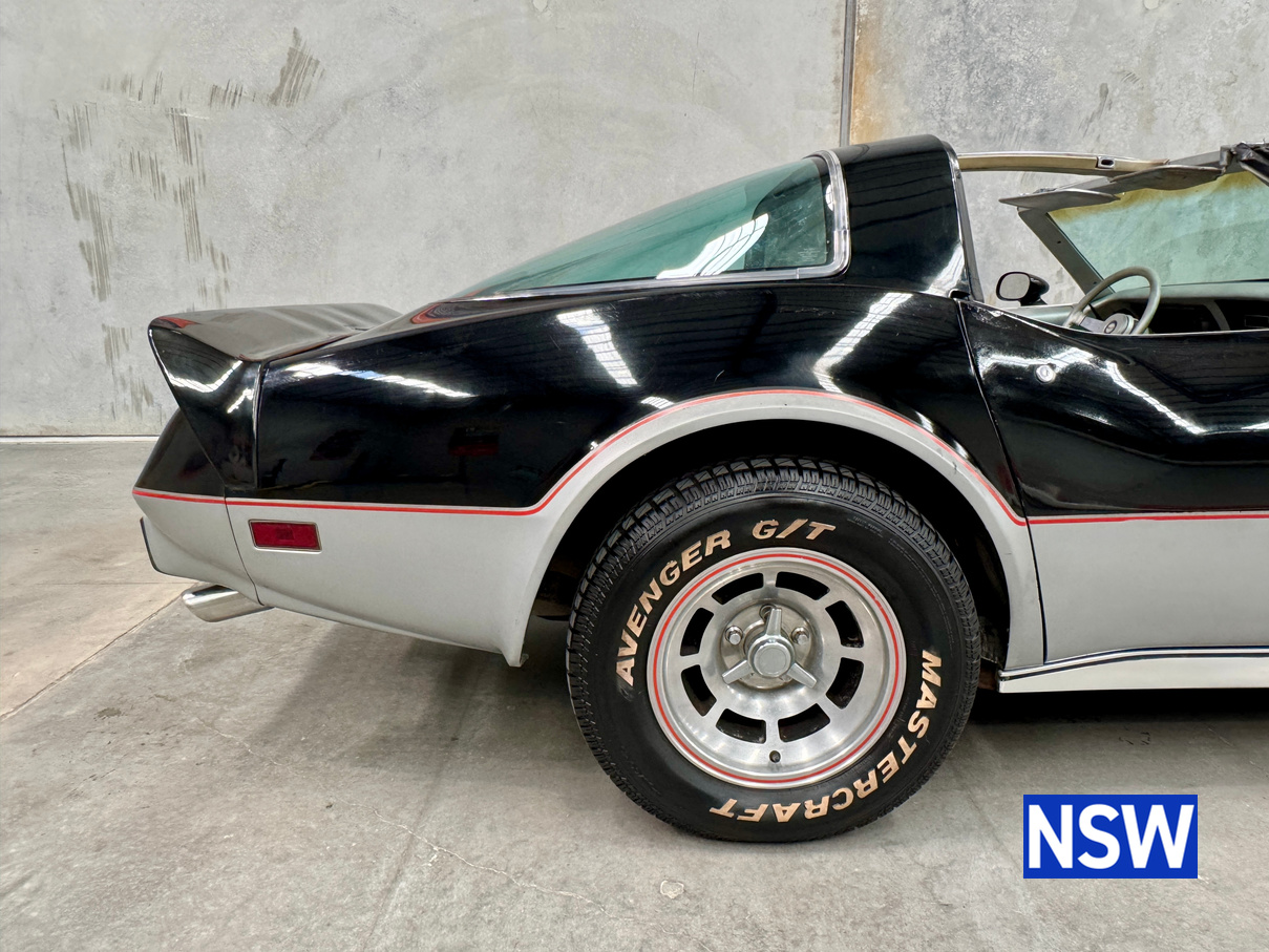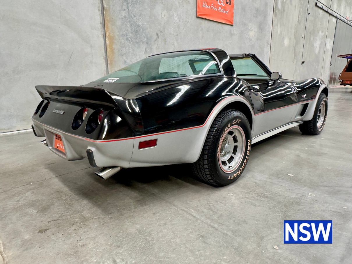 Driven into our Beresfield showroom from rural Queensland, this 1978 C3 Corvette 25th anniversary pace car edition built for as the official pace car for the Indianapolis 500 is a blank canvas ready for either a restoration or enjoy the patina and drive it as is.