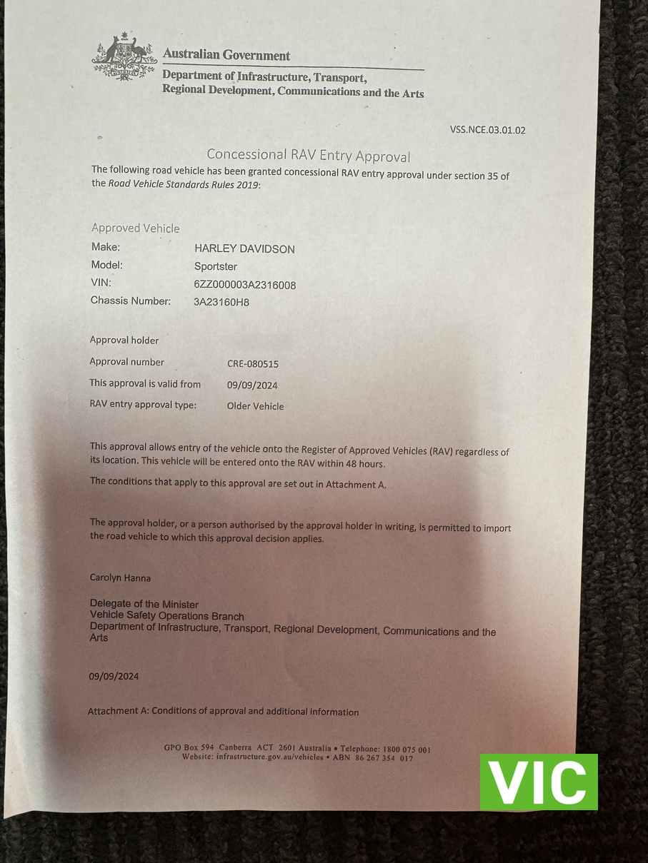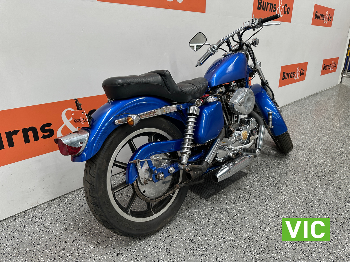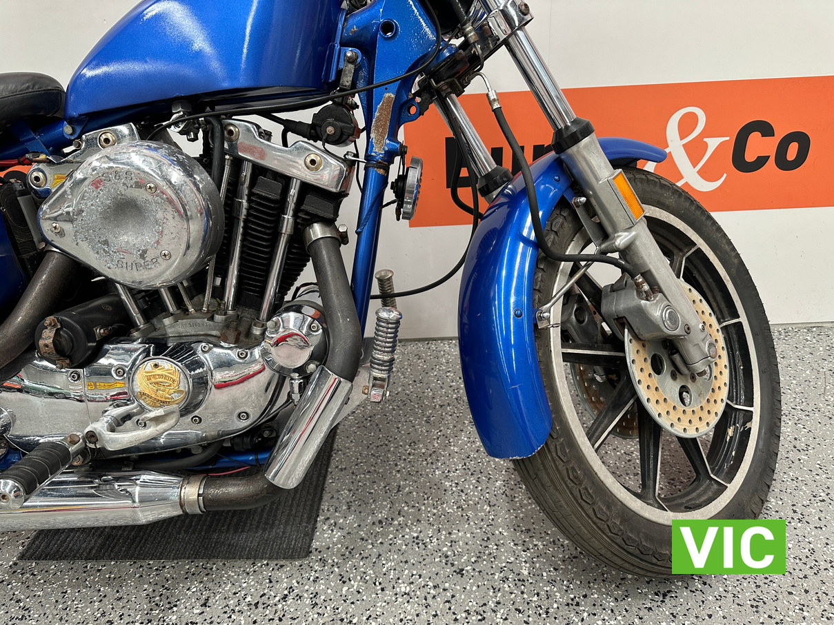 The 1978 Harley-Davidson Sportster is a 75th-anniversary, “Ironhead” V-twin motorcycle produced during the American Machine and Foundry (AMF) era, known for its classic styling, 997cc engine, and left-side shifting. It was available primarily as the electric-start XLH or kick-start XLCH, with a special café racer variant (XLCR) also produced. This one is a matching numbers example, 1978 Harley Davidson Sportster. Motor Turns over but no attempt to start, import approval supplied with the motorcycle dated 9/24.