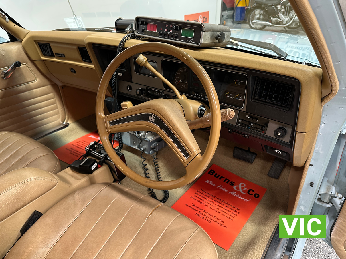 Factory V8 Automatic in factory Police Blue (4500). A meticulously kept example, is a guaranteed head turner and of Museum quality. Has original Police options still fitted, Police speedo, Police 3 gauge cluster, dual tone twin horns, heavy duty radiator, upgraded heavy duty alternator, map reading light, power steering, dual exhaust system and Police suspension package. Inspections will not disappoint.