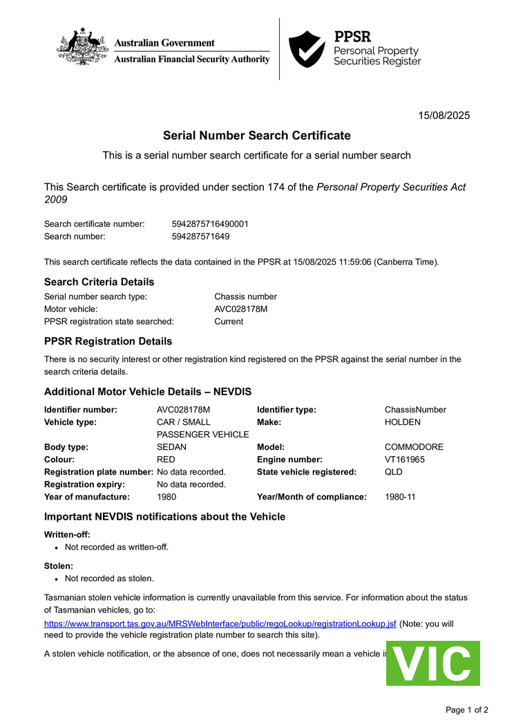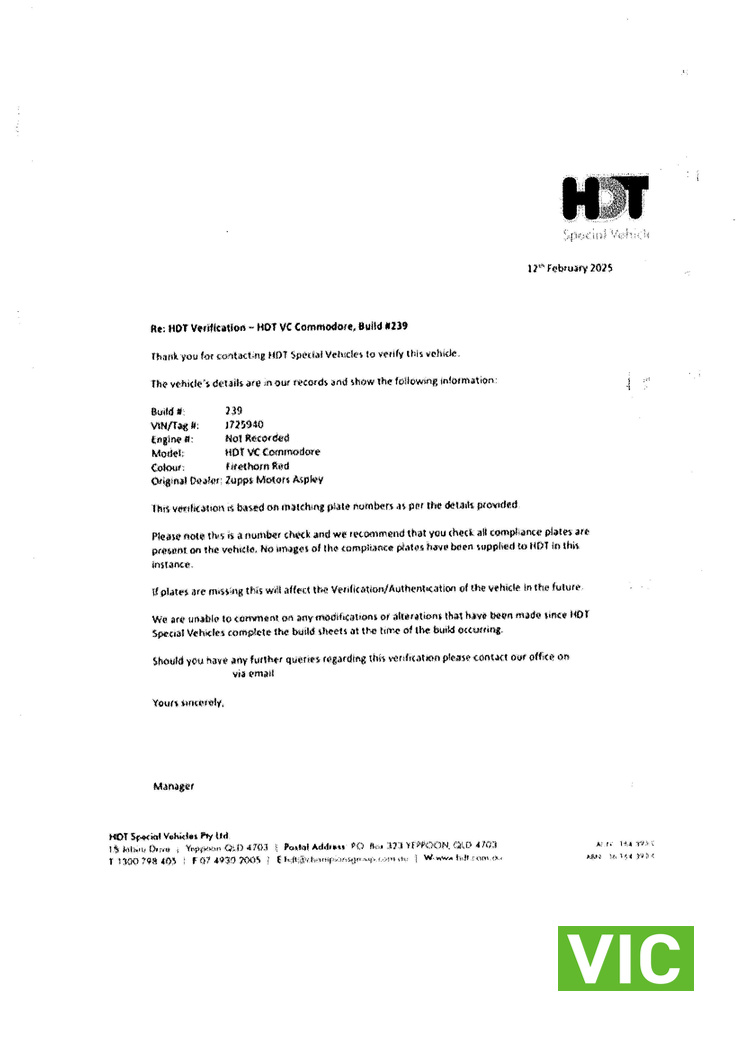 Build 239 is a genuine HDT car, as per the attached HDT letter of authenticity, built 11/1980. Very attractive example inside and out, in popular Firethorn red and Carmine interior, M21 Manual 4 Speed, L31 5Lt V8.