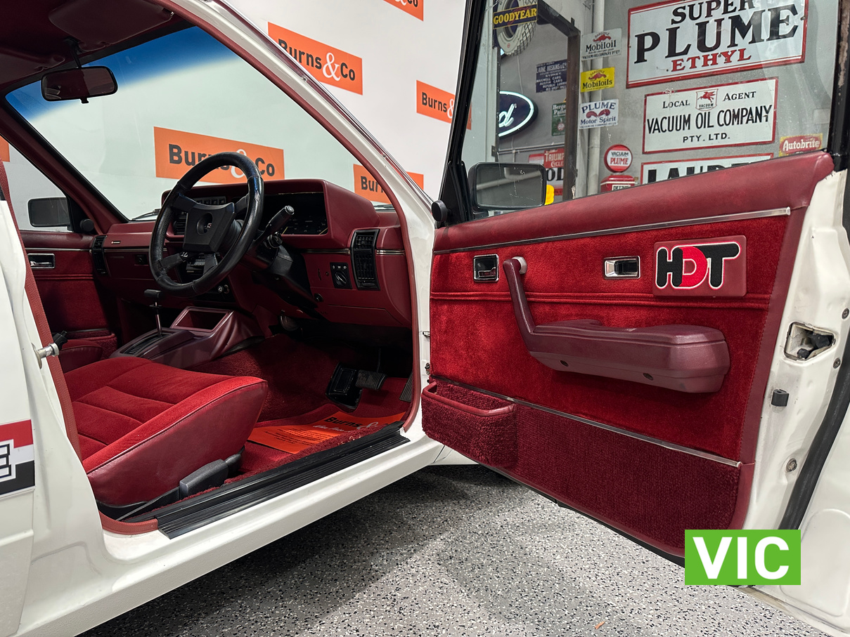 Presents well, complete with the HDT compendium. Delivered new by Alan Mance Holden in Footscray Vic in 1981, the HDT pre-delivery paperwork indicates that Peter Brock himself road tested the vehicle prior to be sent to the dealer. Body presents well with the paint in reasonable condition for its age. The interior is in good shape and still fitted with the Eurovox AM/FM radio cassette. The 5 original Imscher wheels have been restored, the vendor advises that the brake booster has been refurbished as well as new brakes, new radiator hoses, new brake fluid and recently serviced. All round good usable example that is sure to attract the Holden HDT collectors.
