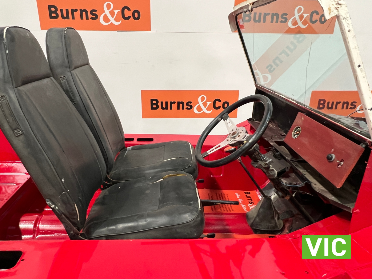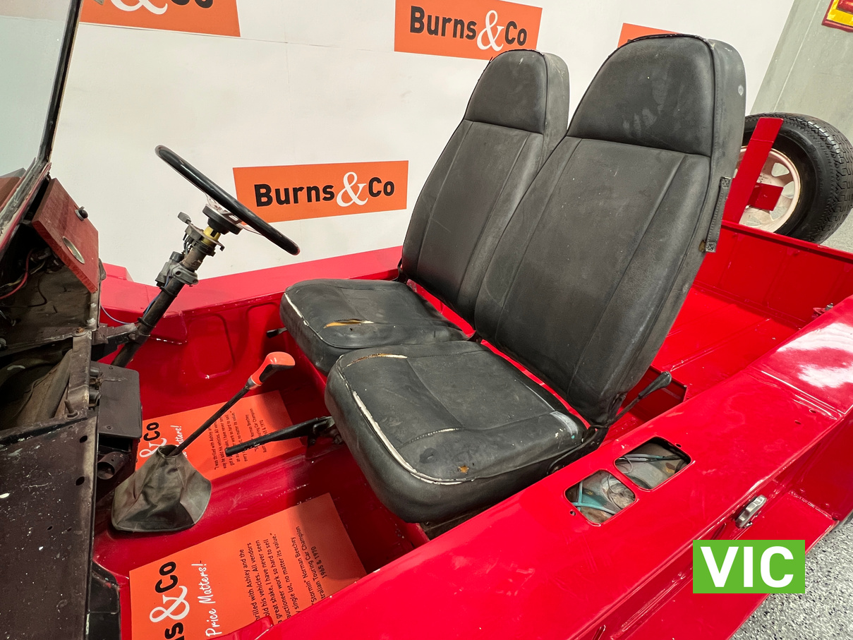 Here’s one you could get ready for next summer! 1980 Leyland Moke, finished in striking red, this would be perfect for a summer run around car or club car. No attempt has been made to start and please note the rear wheels are locked on. Great opportunity for an easy project.