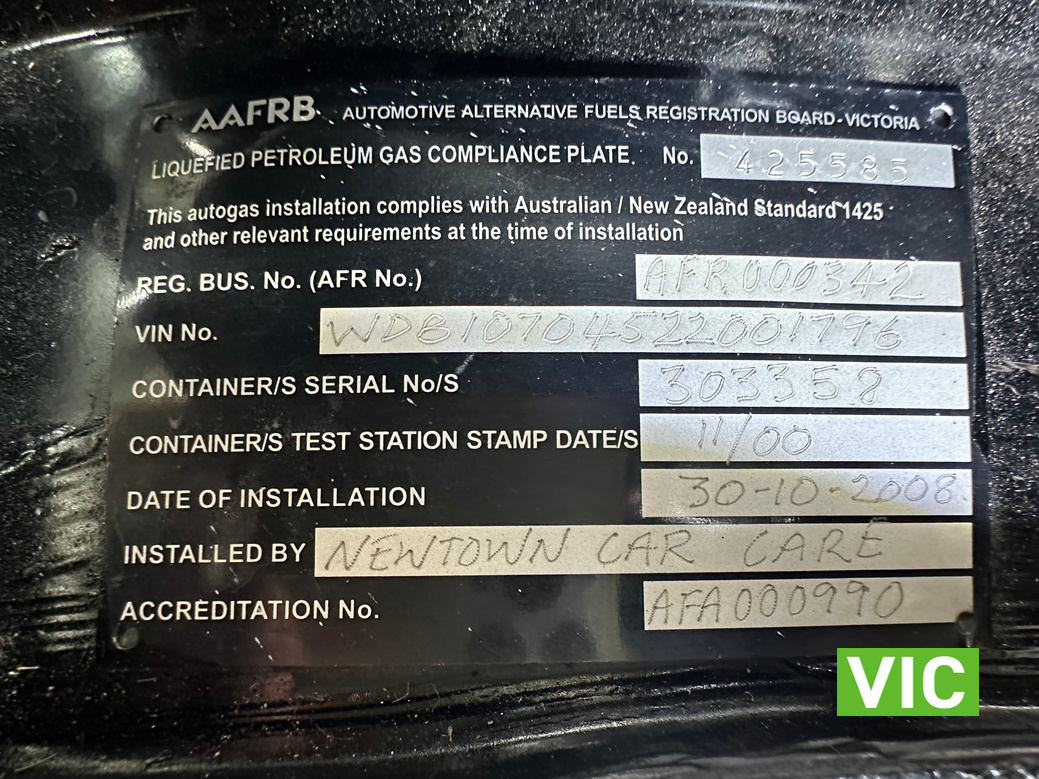 VIN / Chassis No: WDB10704522001796