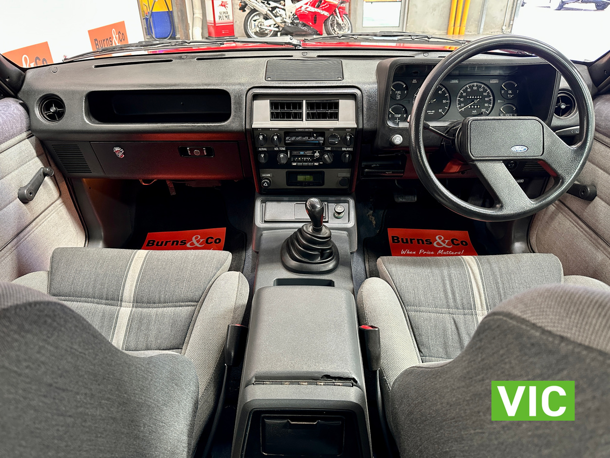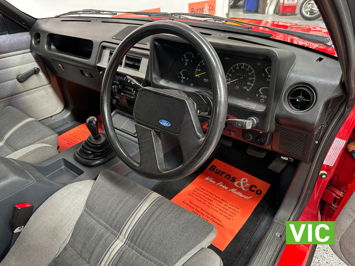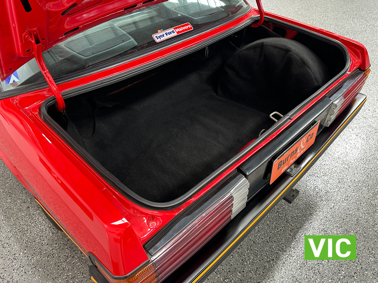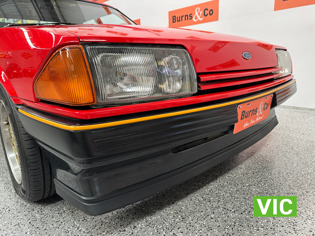 Top notch example, long term owner 5+ years, always serviced and maintained to a very high standard. Believed to be 1 of 100 in Monza red with a 4.9L manual fitted. The vendor advises it has been fitted with a 2 ½ inch exhaust with extractors. Fitted with Power steering and air conditioning which the vendor states both work. Supplied with the car is the original owner’s manual, service handbook and Ford verification letter. Sold new on the 28/1/1983 to John F Taylor of Niddrie by Syer Ford of Malvern, this is the pinnacle of 80s Fords and this example is ideally suited to a collector as it would make a valued addition to any Ford collection. Inspections will not disappoint.