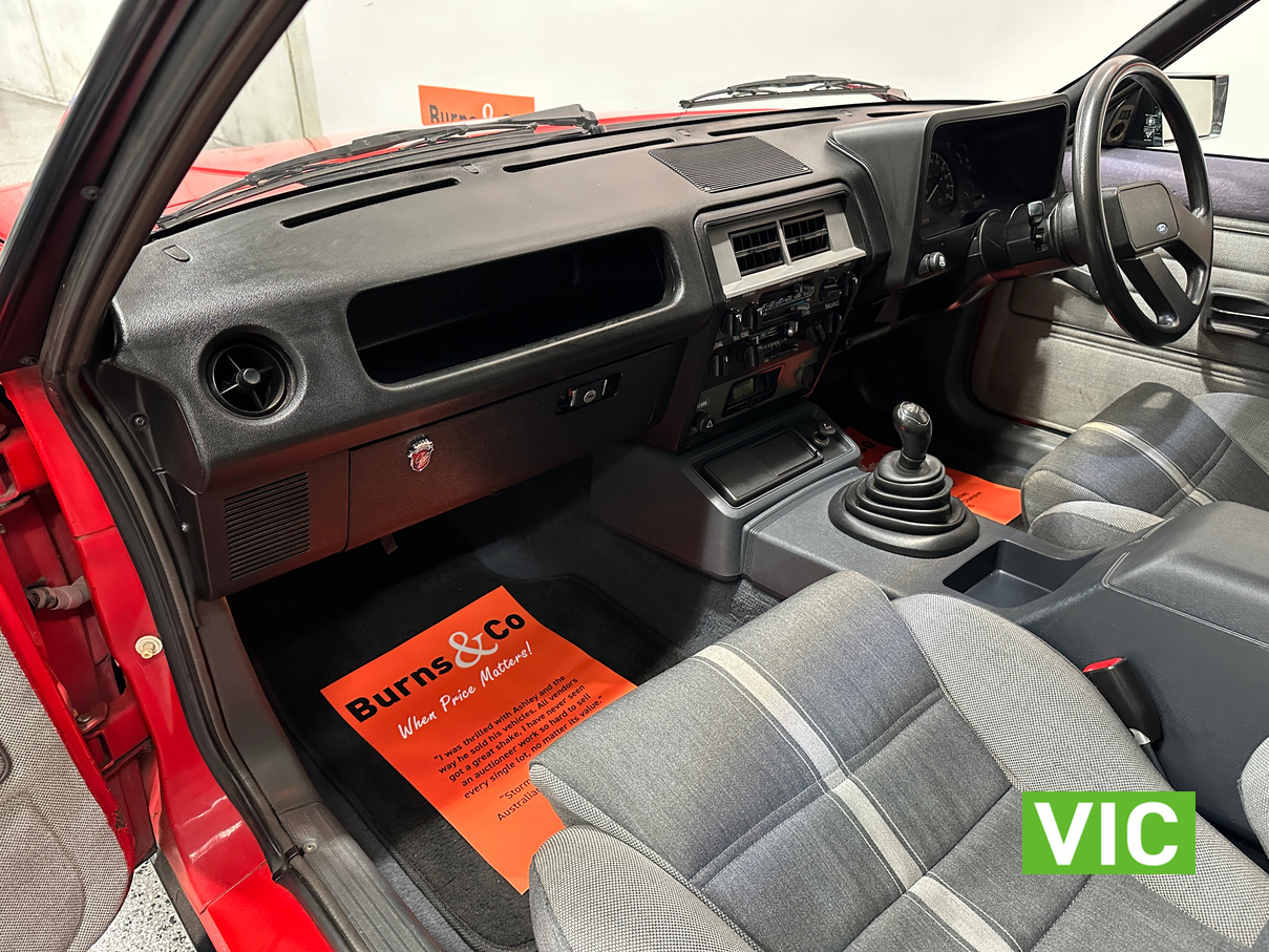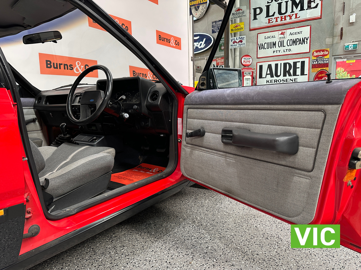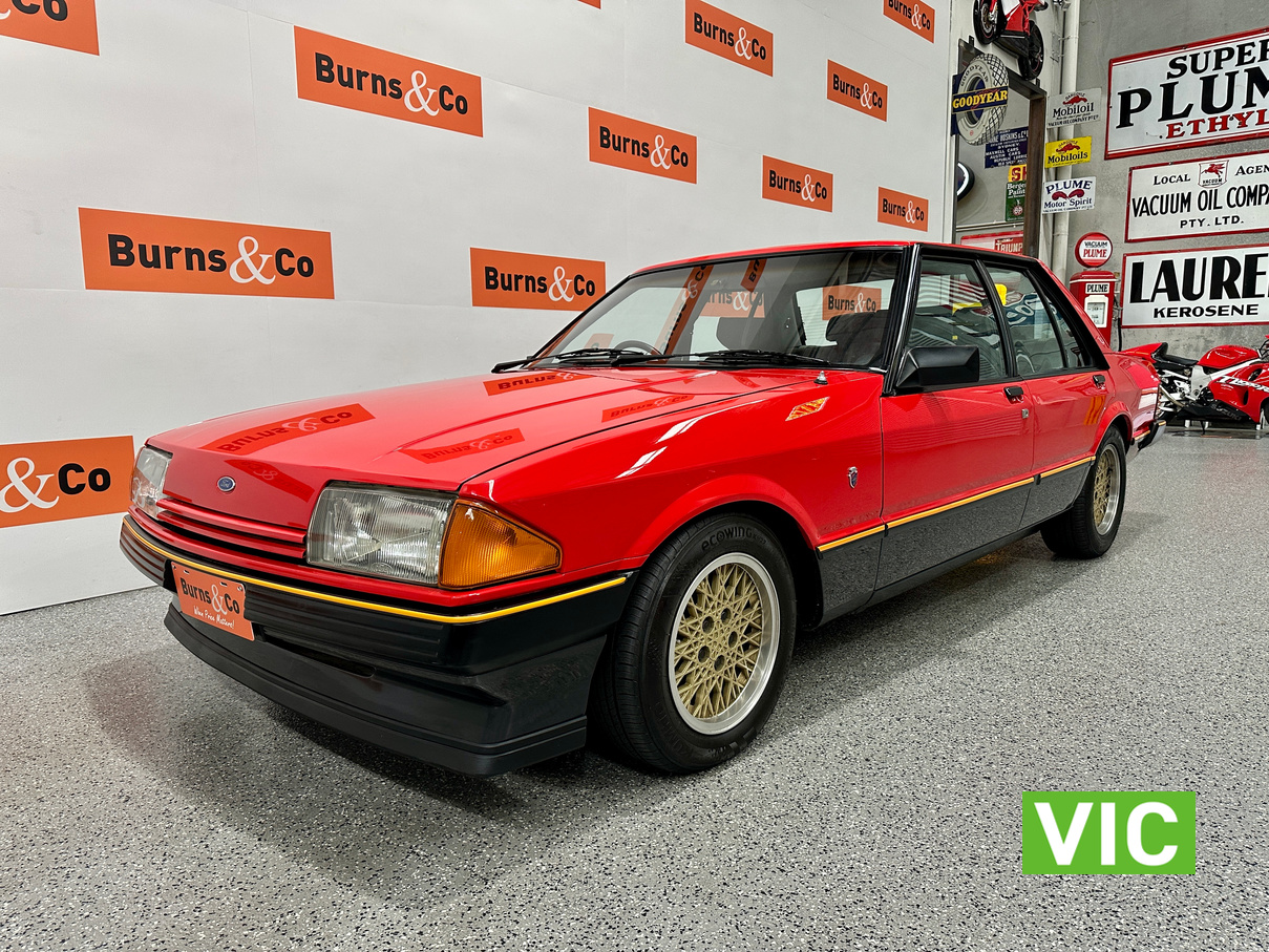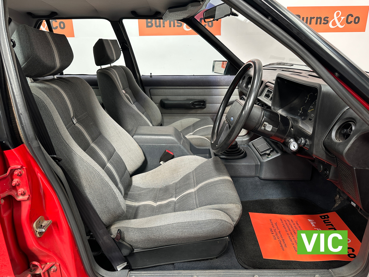 Top notch example, long term owner 5+ years, always serviced and maintained to a very high standard. Believed to be 1 of 100 in Monza red with a 4.9L manual fitted. The vendor advises it has been fitted with a 2 ½ inch exhaust with extractors. Fitted with Power steering and air conditioning which the vendor states both work. Supplied with the car is the original owner’s manual, service handbook and Ford verification letter. Sold new on the 28/1/1983 to John F Taylor of Niddrie by Syer Ford of Malvern, this is the pinnacle of 80s Fords and this example is ideally suited to a collector as it would make a valued addition to any Ford collection. Inspections will not disappoint.
