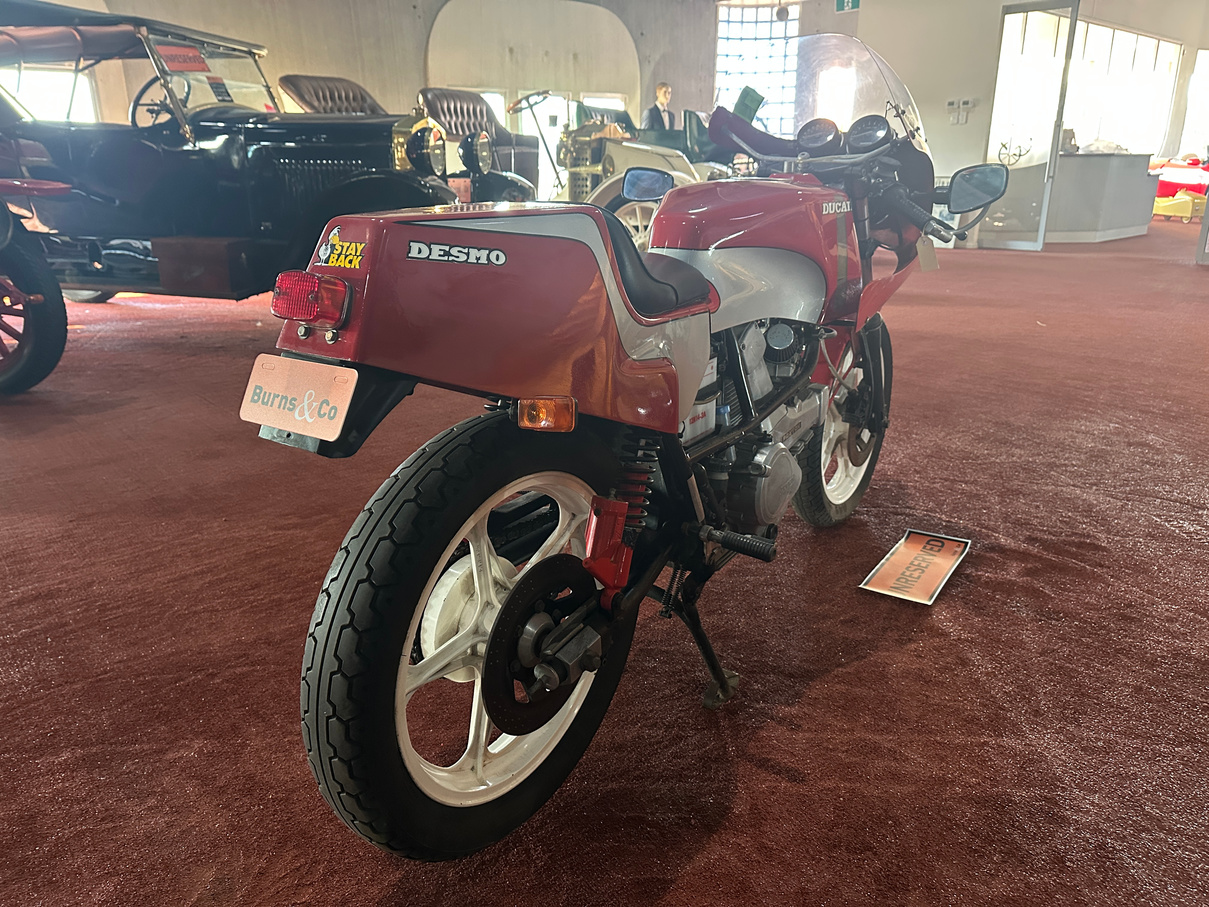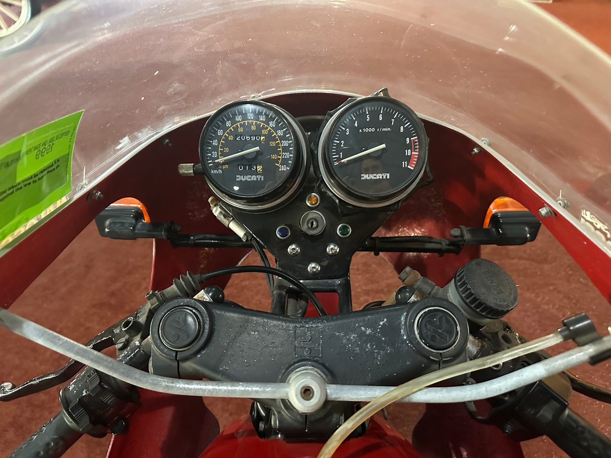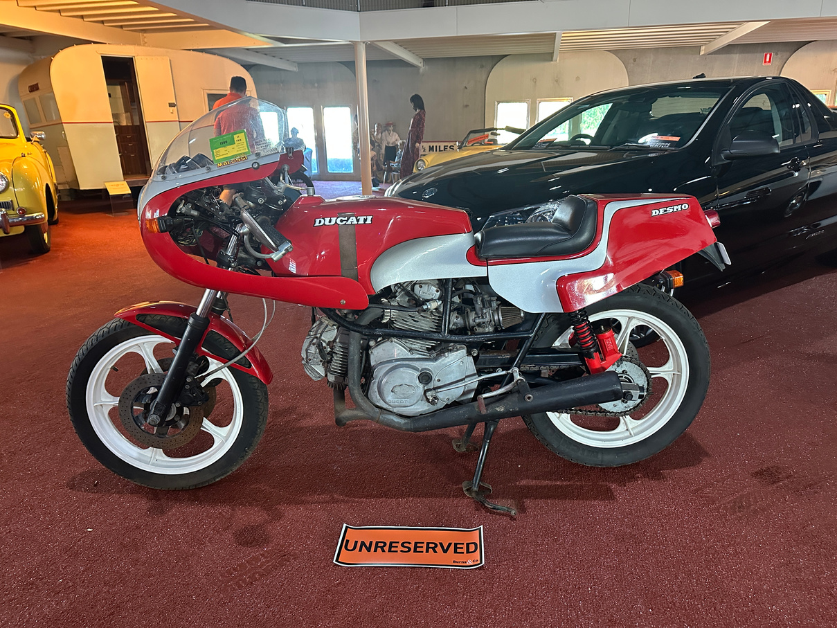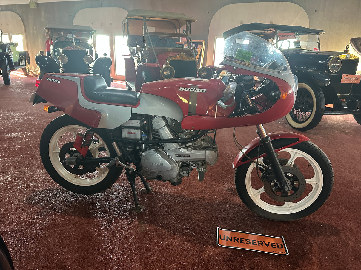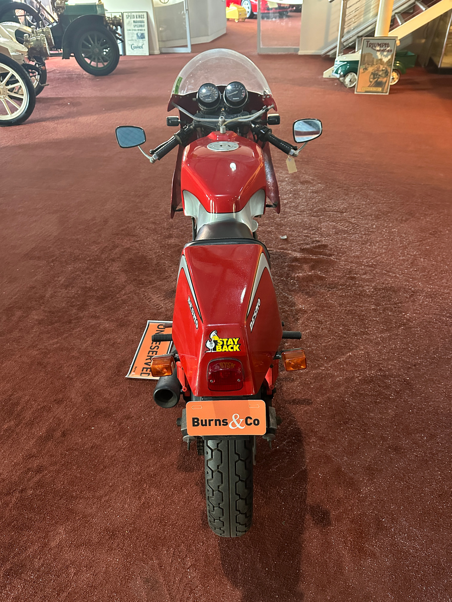 1984 Ducati 600cc Desmo motorcycle. Has been on display in the McFeeters museum for some years. No attempt to start and no keys. Appears original.
