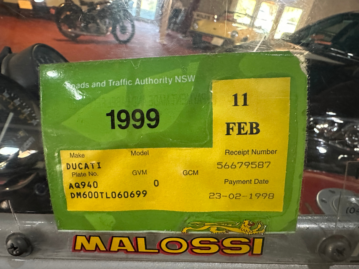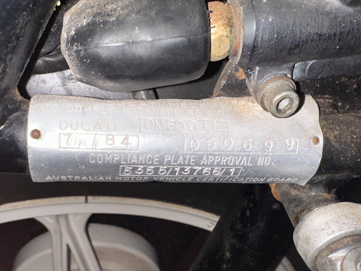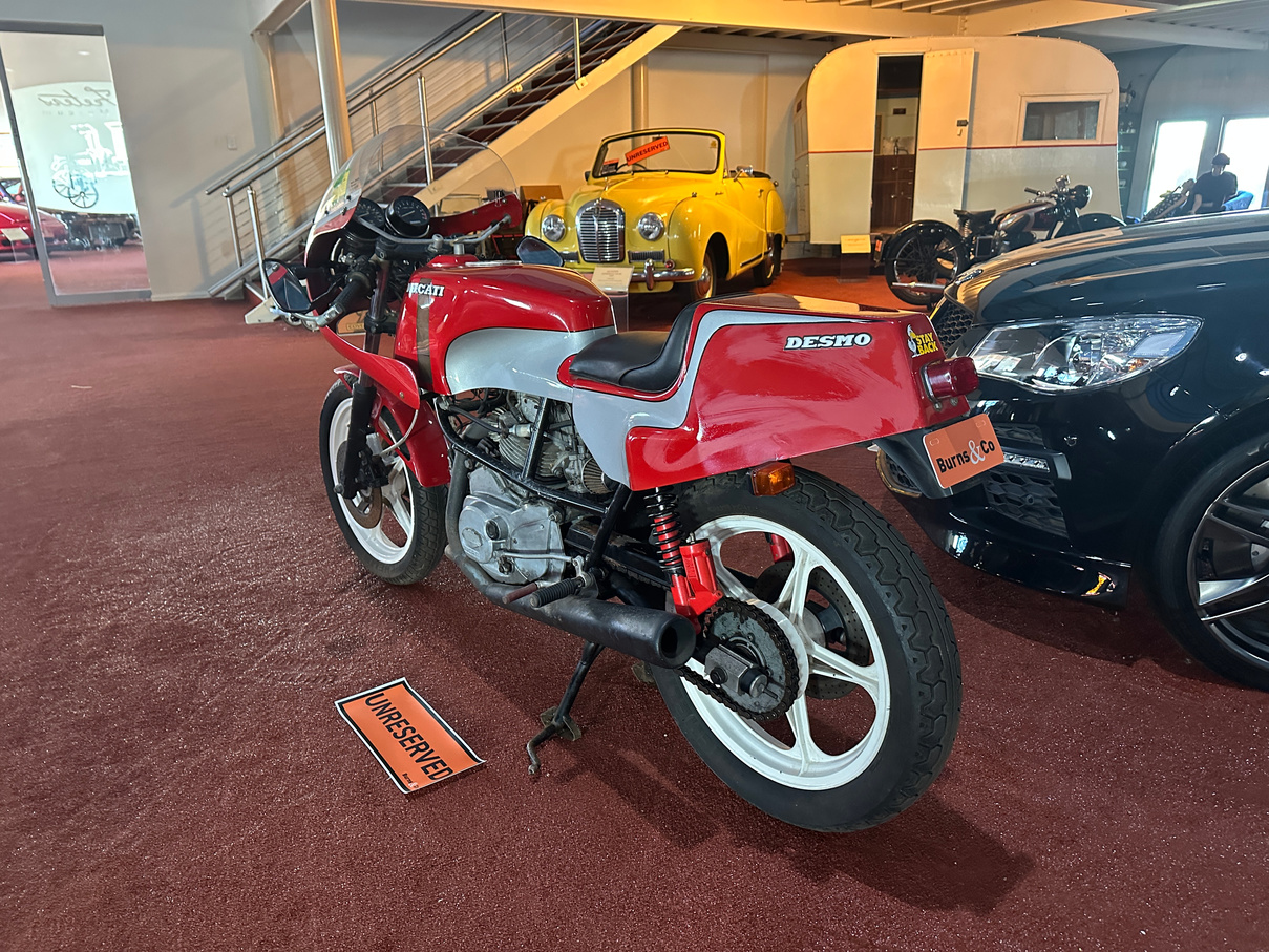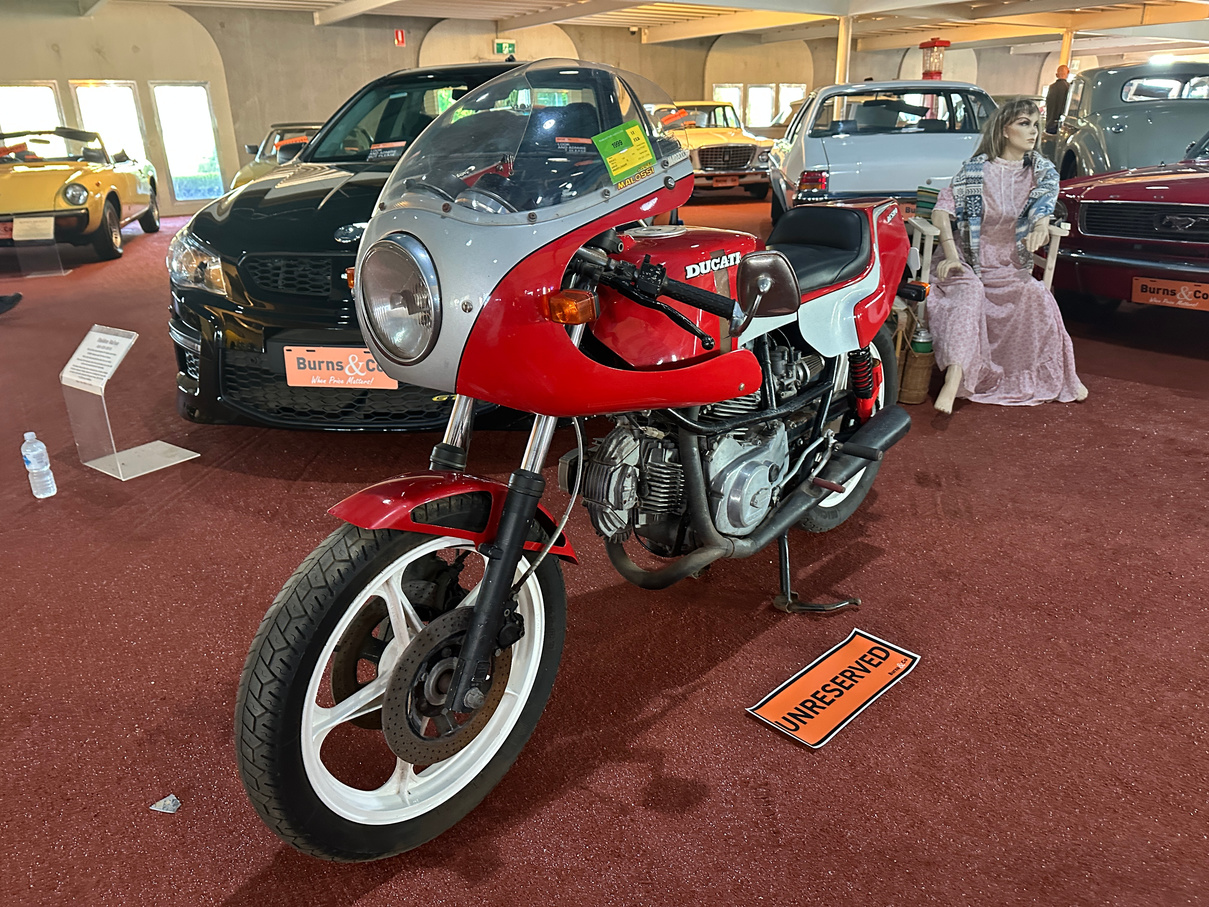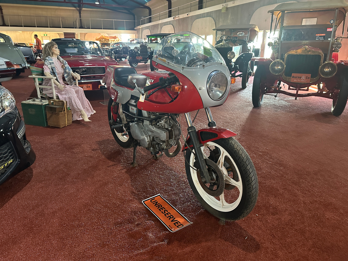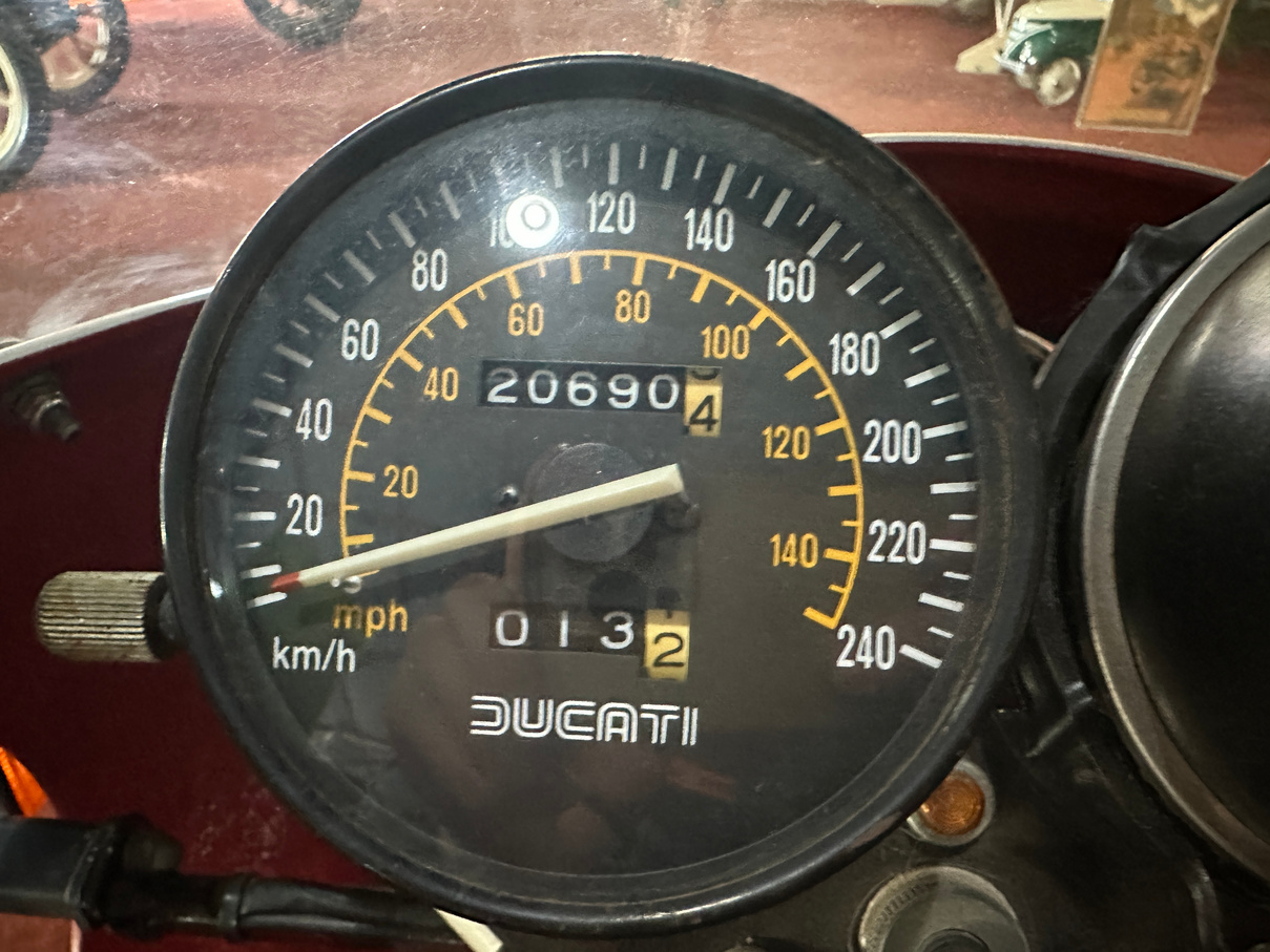 1984 Ducati 600cc Desmo motorcycle. Has been on display in the McFeeters museum for some years. No attempt to start and no keys. Appears original.