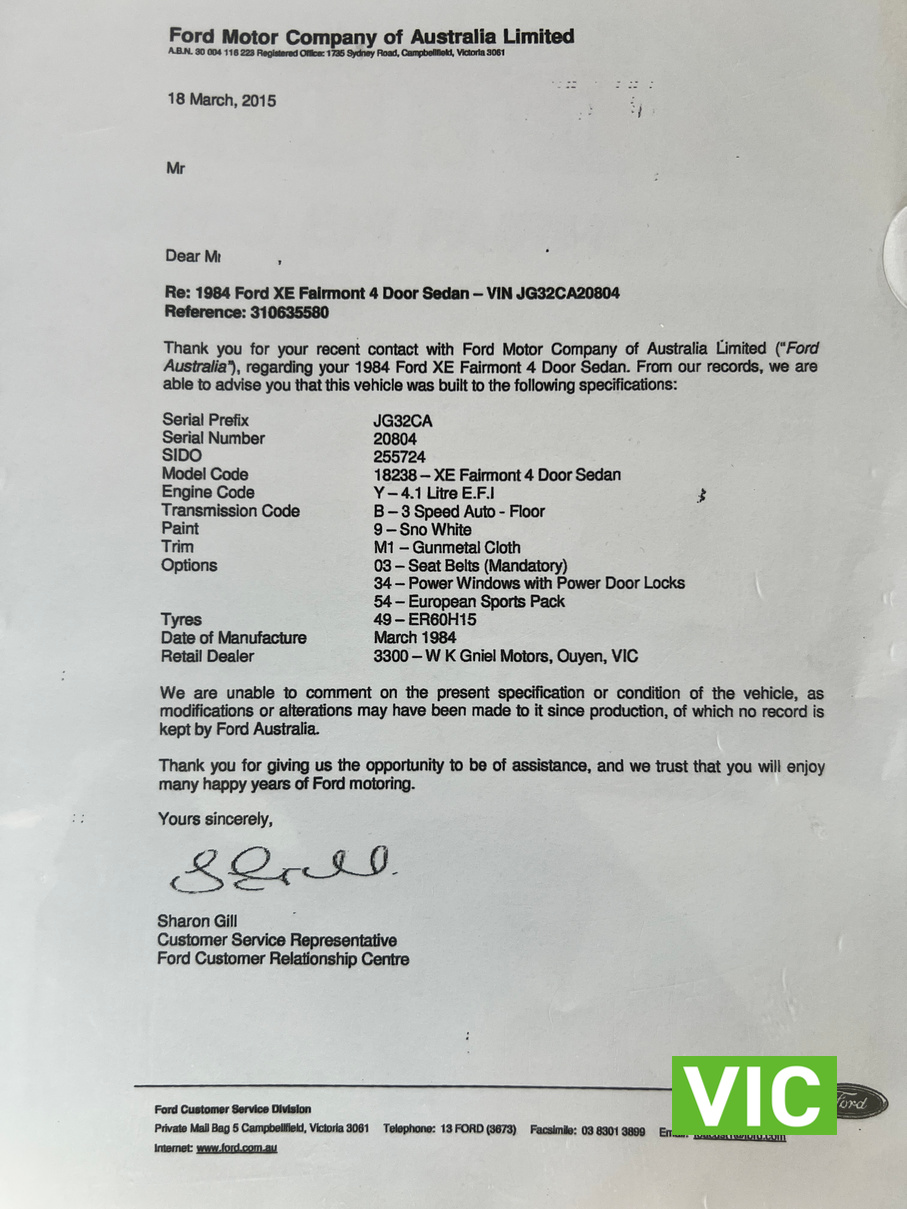 Recent work includes: Car was stripped down back in 2019 and had a full rotisserie/ undercarriage paint job carried out in 2020. The Engine, transmission, Turbo, nut and bolts underwent a full Refurbishment. Lots of the original parts were also refurbed and put back into the car. This Car has a $4950 genuine Ford Dealer Option /AIT Turbo Conversion from New as Per the 3rd AIT TURBO ADR Mod plate in the engine bay which has the car/s Vin # and Compliance date. The car is approximately 1/15 Genuine Optioned Fairmont Ghia Esp’s in the country and most likely 1/5 left in existence.