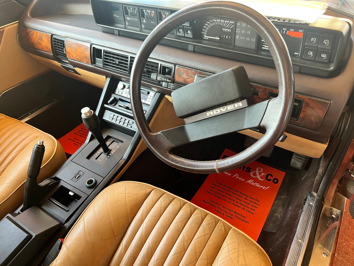 Being offered UNRESERVED. Part of the McFeeters motor museum for many years, this 1985 Rover 3500SE Vanden Plas has been done up as a tribute SD1 “Sopher Racing” car. Vehicle is complete with all its original books and introduction cassette tape. Has been on display for some years and we have made no attempt to start.