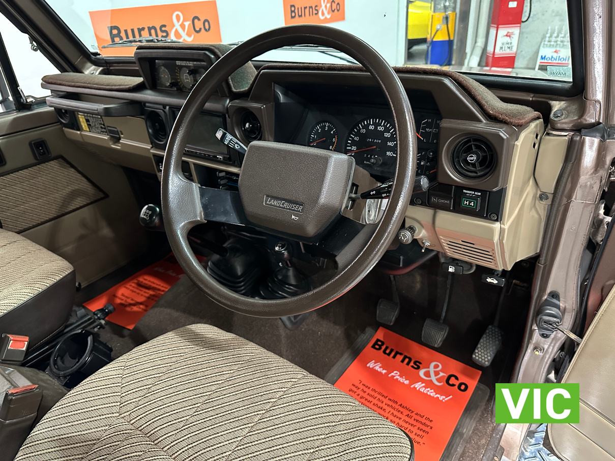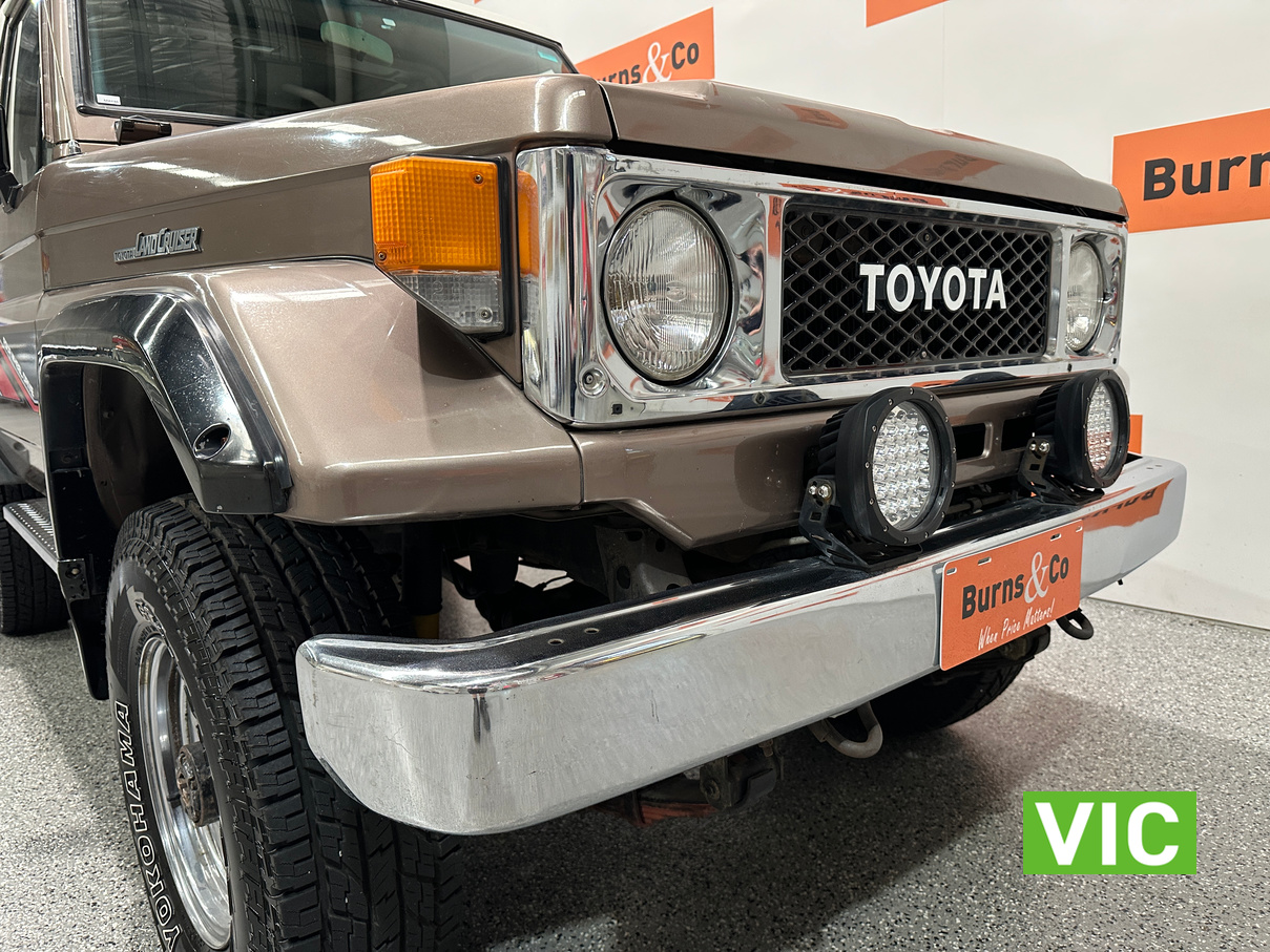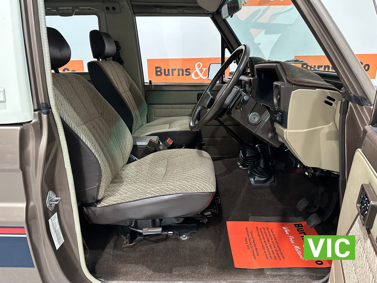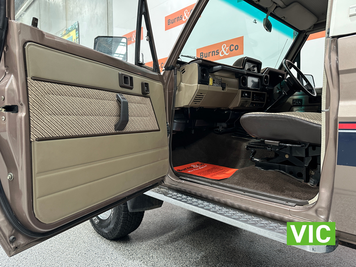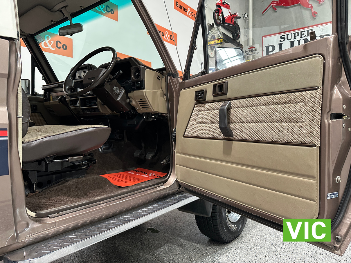 Driven into our Bayswater showroom on full Victorian registration (sold unregistered). This 1985 FJ73 Landcruiser is in terrific condition all round and would be an excellent club car to attend the next classic 4WD event. The original colour Beige mellitic has stood up well as has the original tan interior. Fitted with the well respected 3F engine paired to the manual gearbox. Supplied with the vehicle is the original owner’s manual and maintenance guide. Great example of a hard to find model.