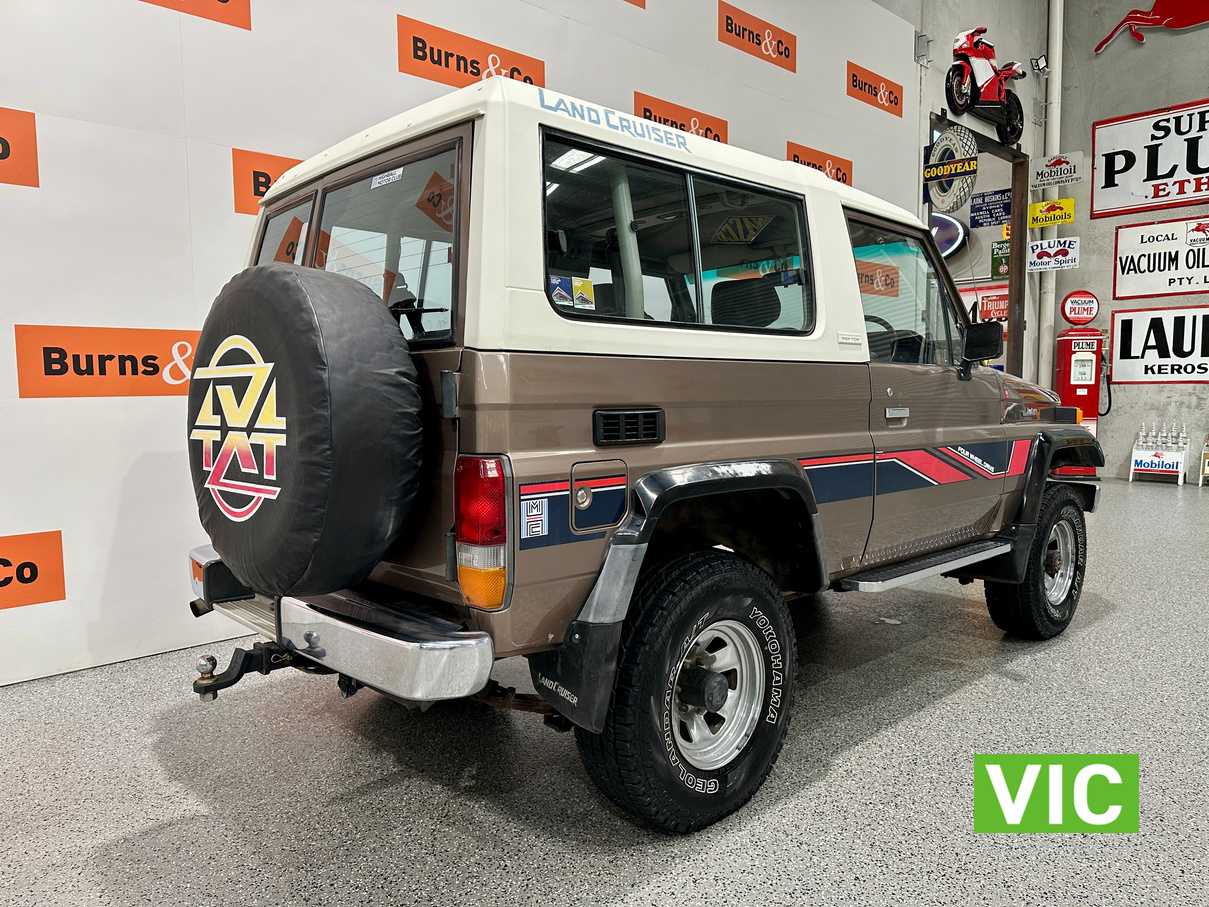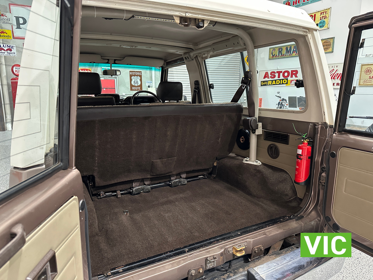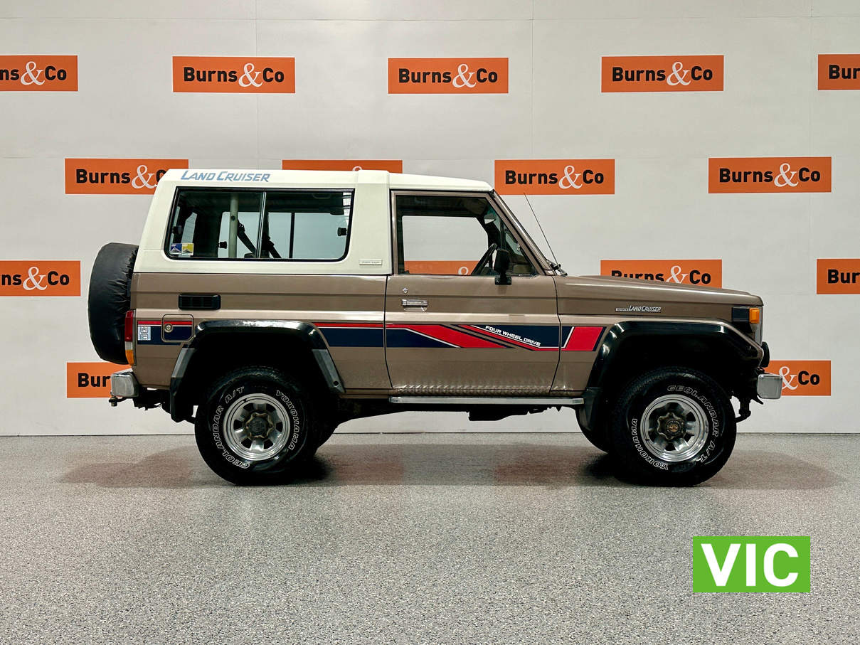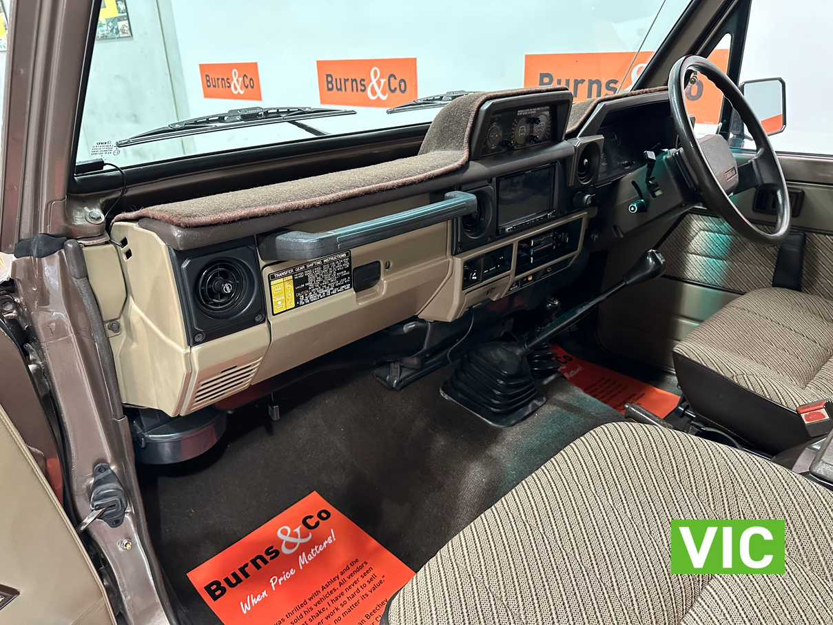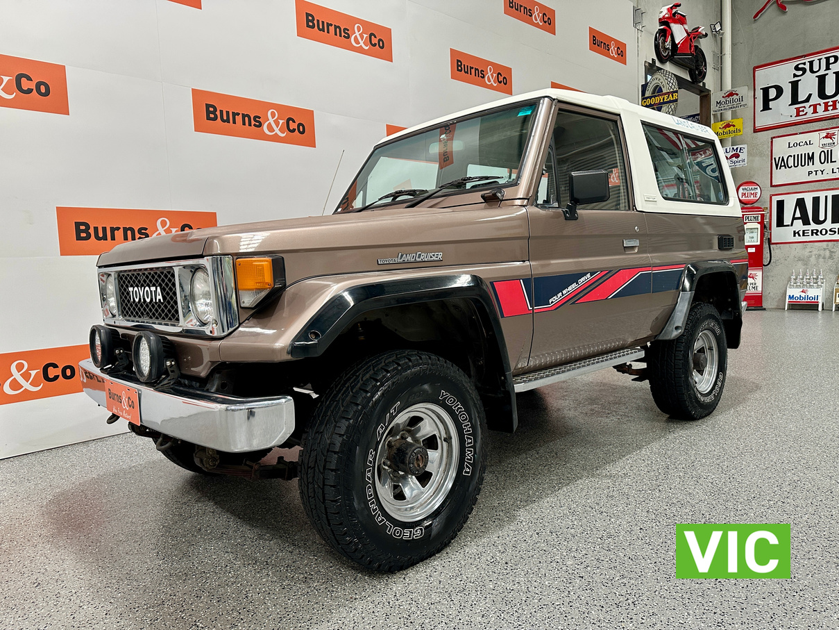 Driven into our Bayswater showroom on full Victorian registration (sold unregistered). This 1985 FJ73 Landcruiser is in terrific condition all round and would be an excellent club car to attend the next classic 4WD event. The original colour Beige mellitic has stood up well as has the original tan interior. Fitted with the well respected 3F engine paired to the manual gearbox. Supplied with the vehicle is the original owner’s manual and maintenance guide. Great example of a hard to find model.