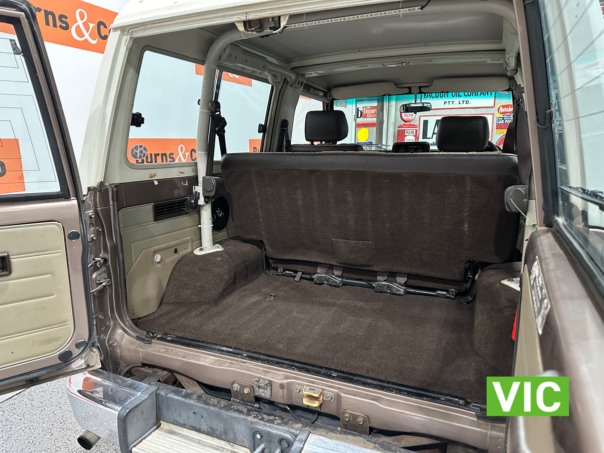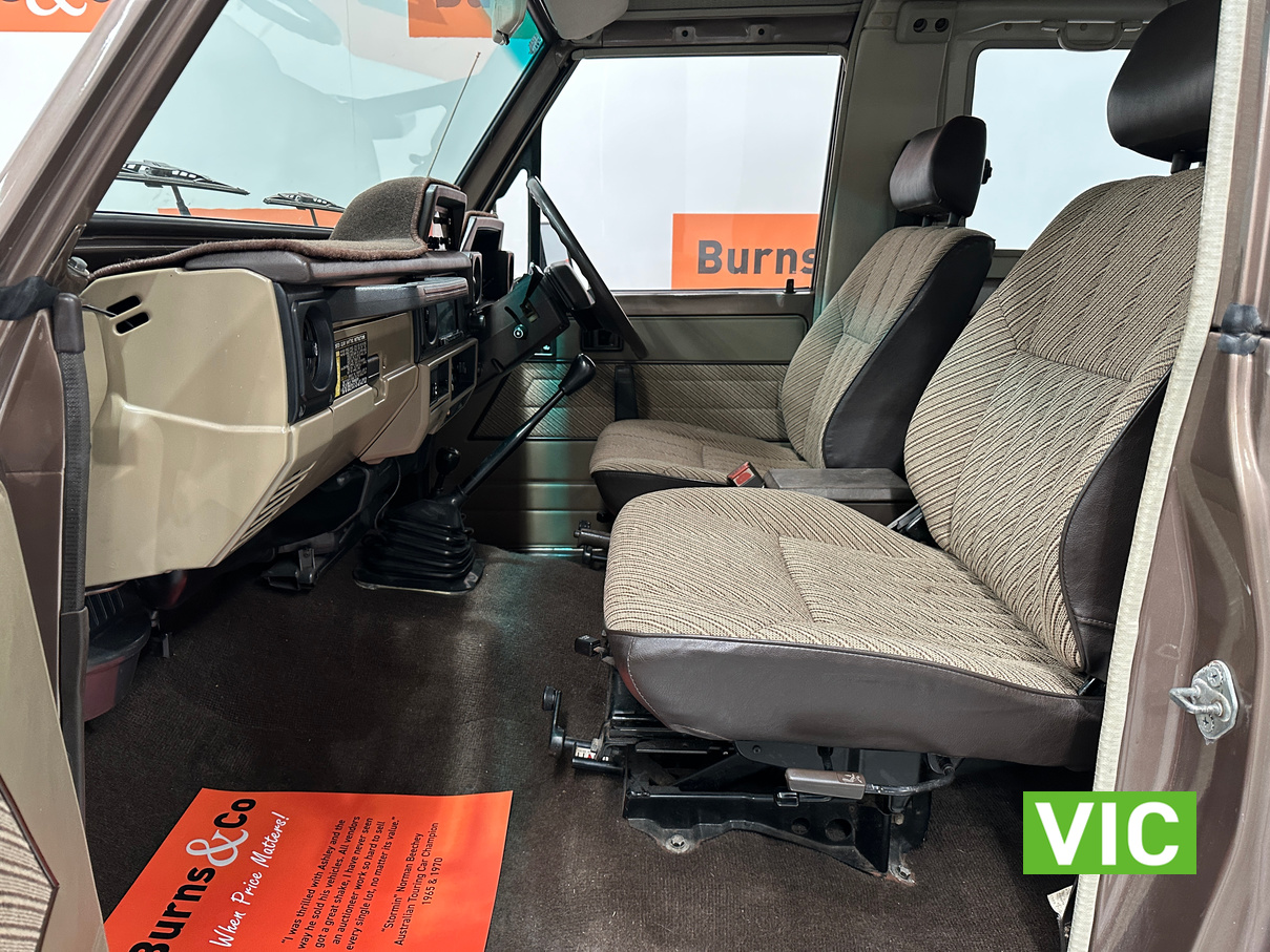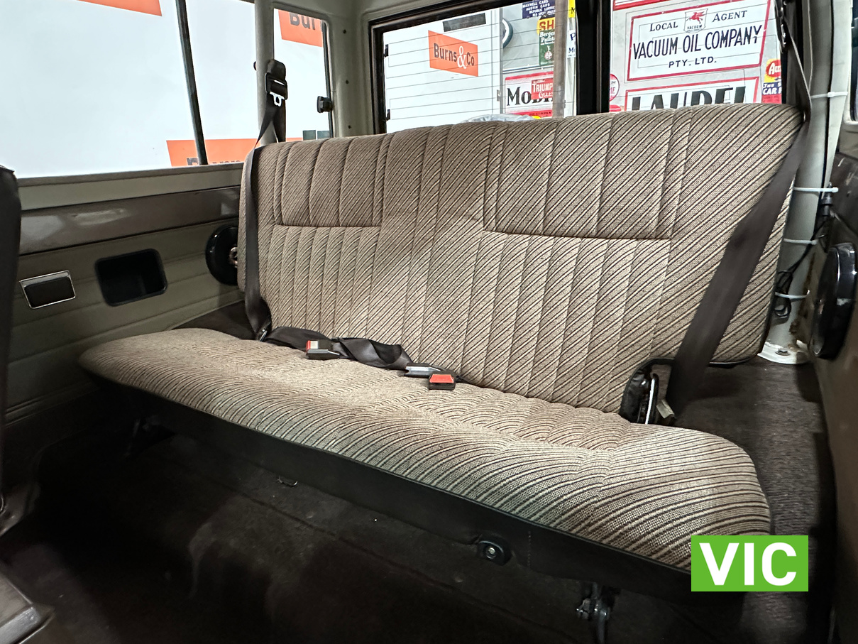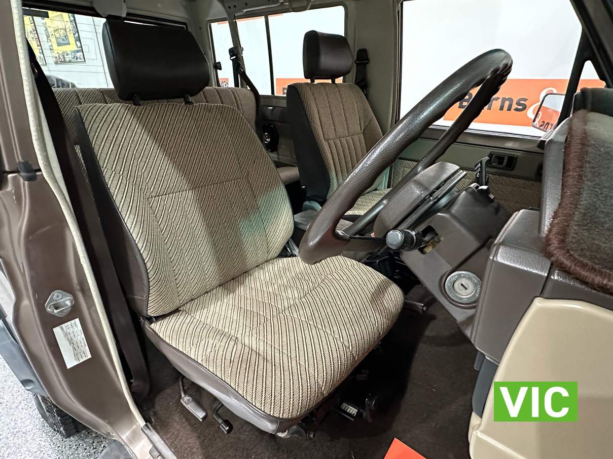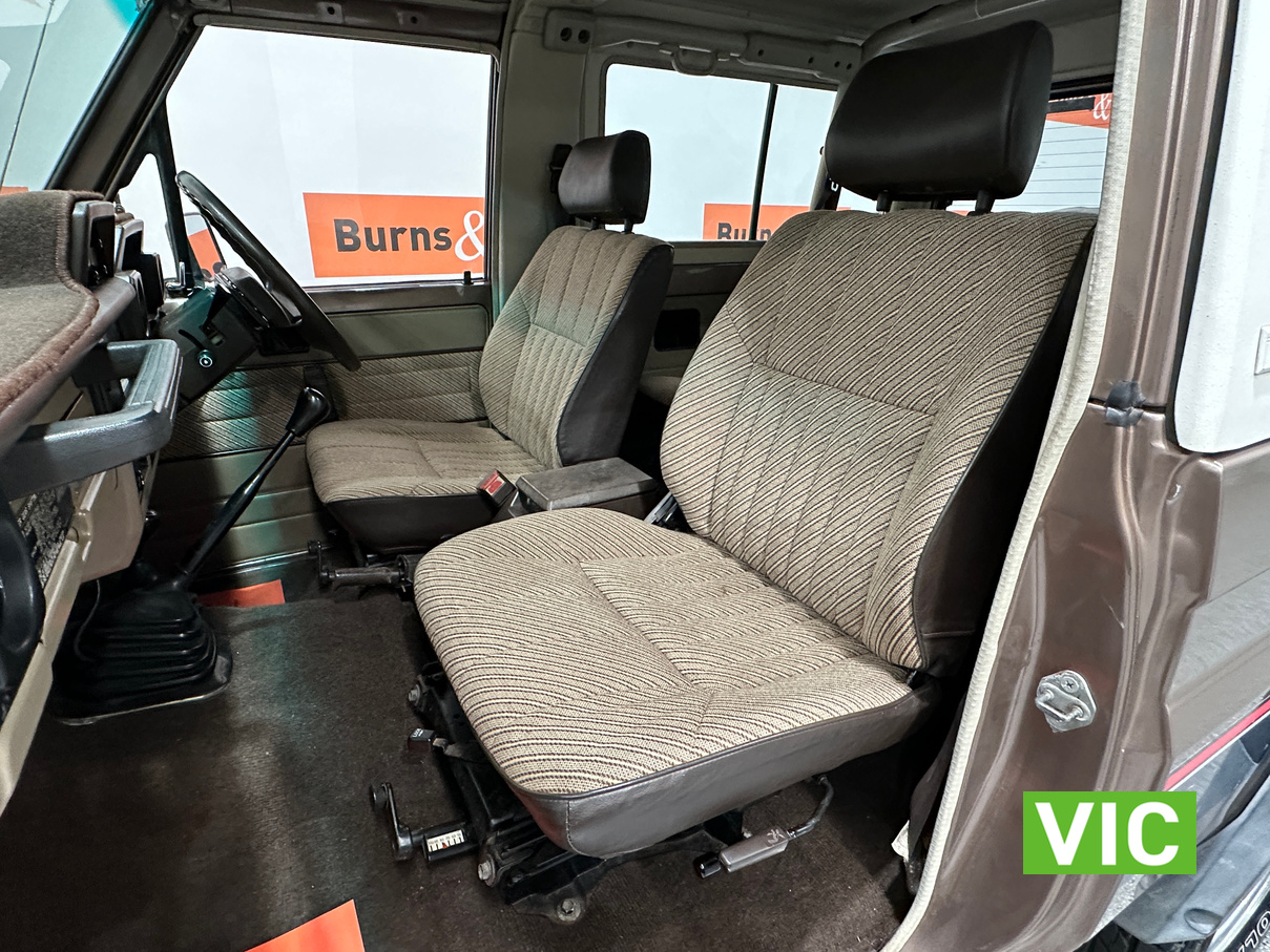 Driven into our Bayswater showroom on full Victorian registration (sold unregistered). This 1985 FJ73 Landcruiser is in terrific condition all round and would be an excellent club car to attend the next classic 4WD event. The original colour Beige mellitic has stood up well as has the original tan interior. Fitted with the well respected 3F engine paired to the manual gearbox. Supplied with the vehicle is the original owner’s manual and maintenance guide. Great example of a hard to find model.